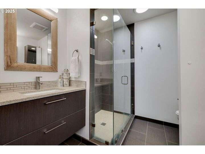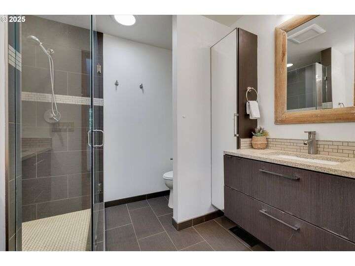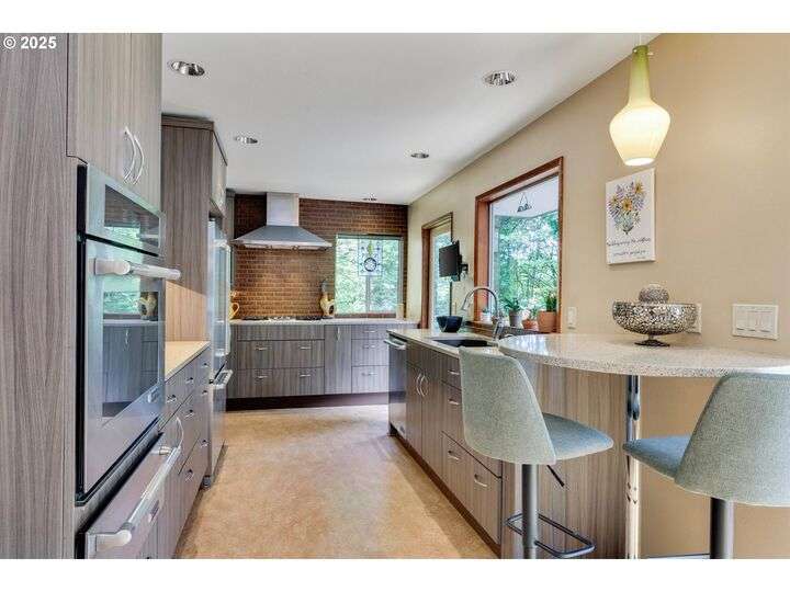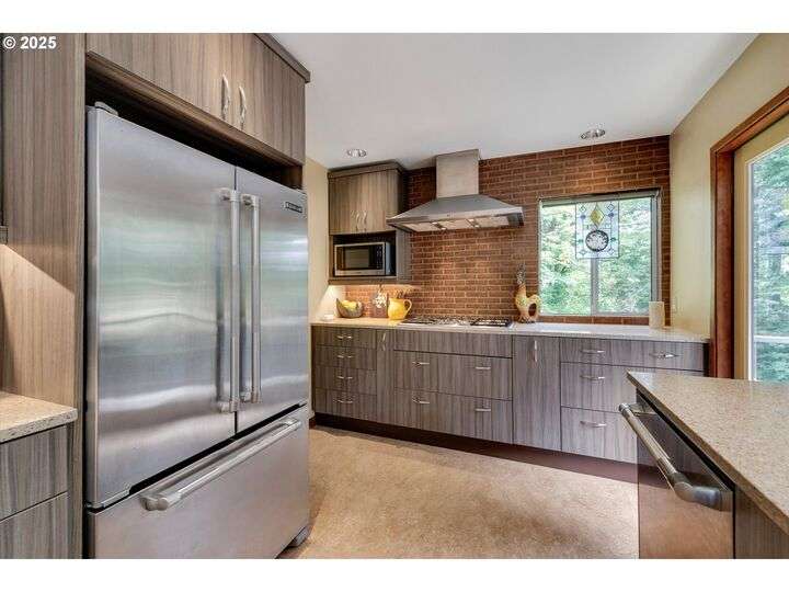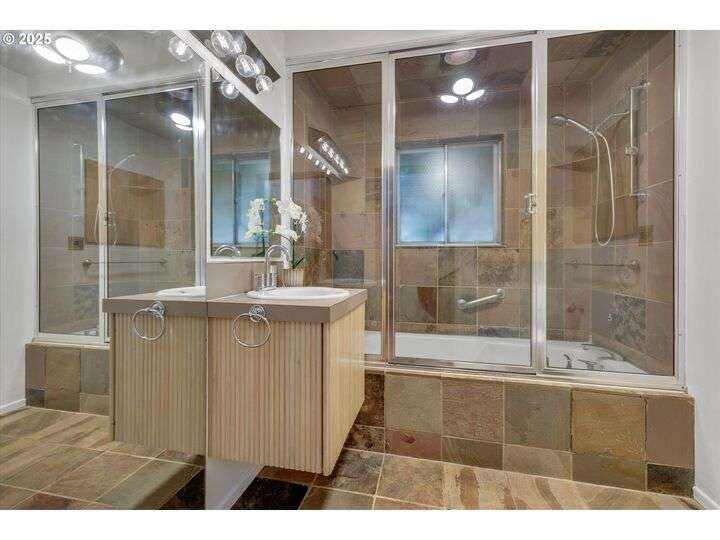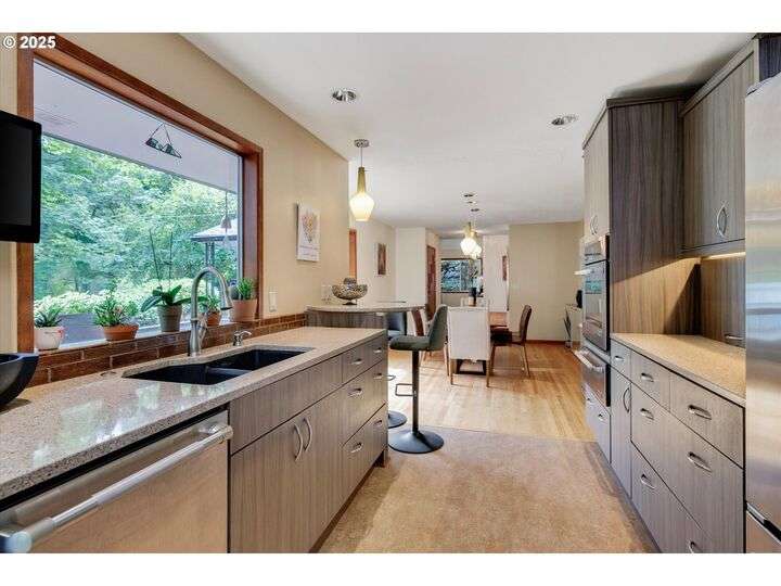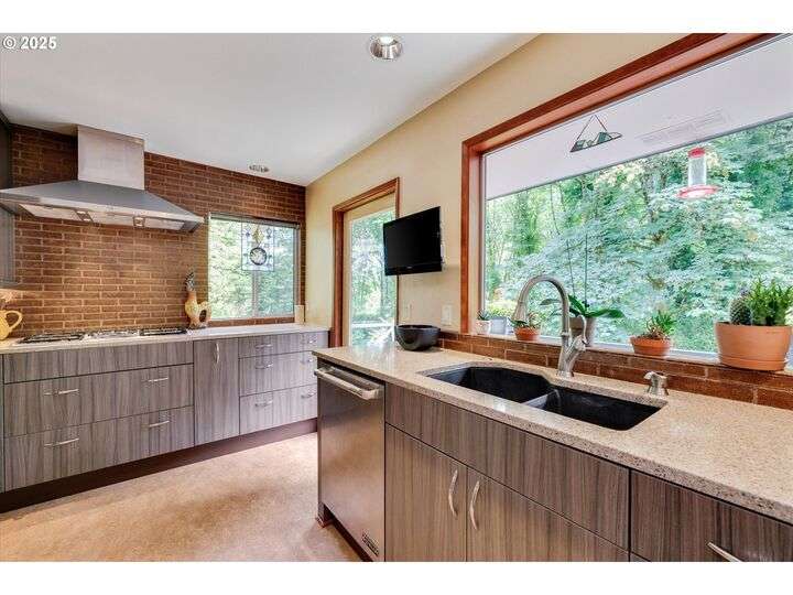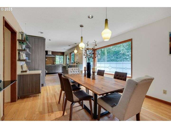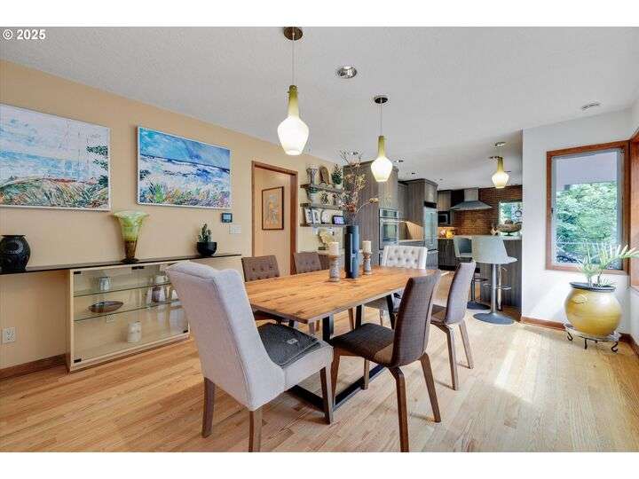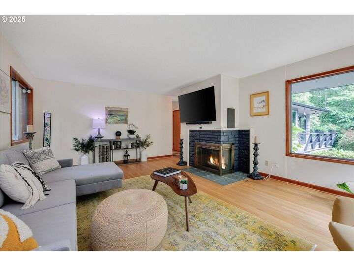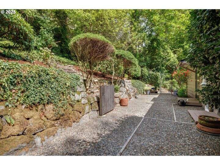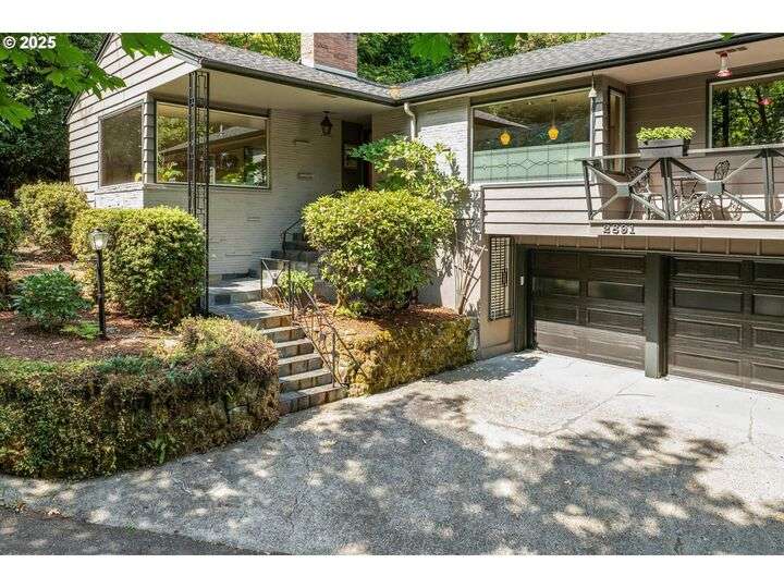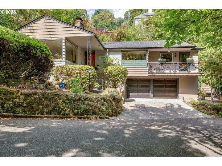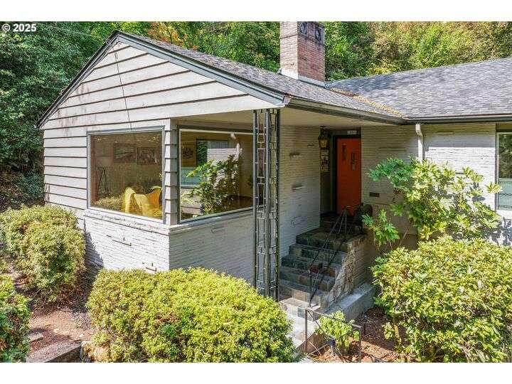 This stunning mid-century modern home, nestled in the heart of NW Portland, seamlessly blends timeless design with modern living. Set against a backdrop of lush greenery and mature trees, the home features clean lines, large windows, and an open-concept layout that invites natural light to flood every room. A spacious living area with vaulted ceilings and a striking fireplace creates a warm, inviting atmosphere, perfect for both relaxation and entertaining. Located in one of Portland’s most sought-after neighborhoods, this home offers both the tranquility of nature and easy access to the city’s vibrant culture, dining, and just moments to Washington Park and Forest Park trails. It’s a perfect balance of classic style and contemporary comfort. New roof, radon mitigation system and plantation shutters in 2024. The seller is a licensed broker in OR. [Home Energy Score = 3. HES Report at https://rpt.greenbuildingregistry.com/hes/OR10215054]