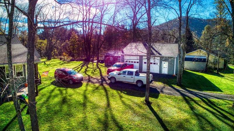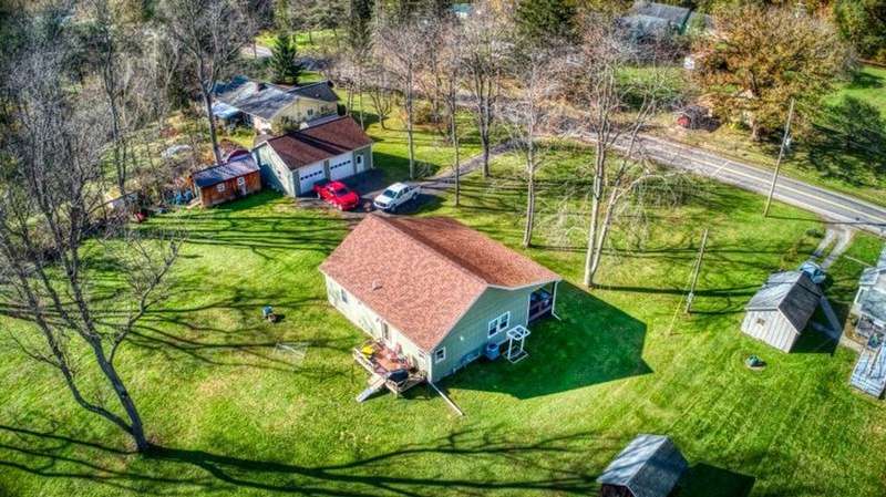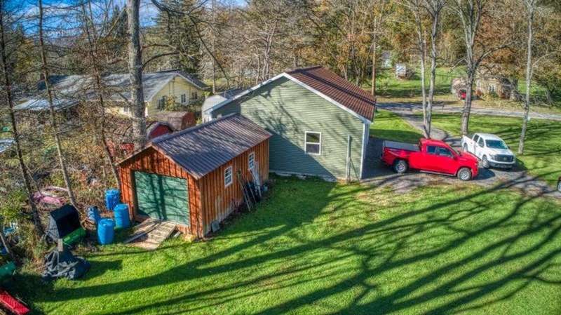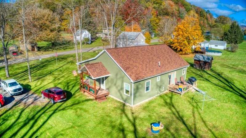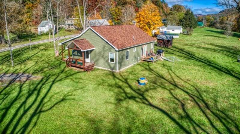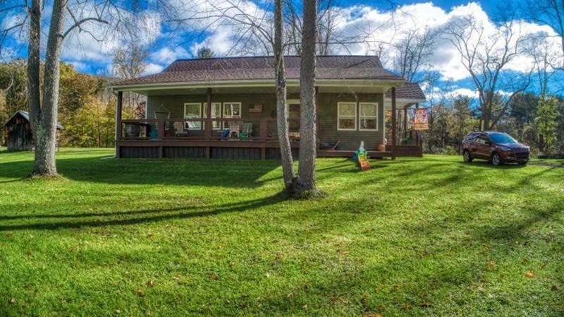 This charming home is a perfect forever home or a great cabin retreat. Two covered porches access to hiking trails and State Land in your back yard. The open kitchen/dining/living room is great for family gatherings. Designed for easily adding on for addition space if needed. Room for a pool or a garden. Space to store mower or ATV's There is a stream behind the house but property is not in flood plain
