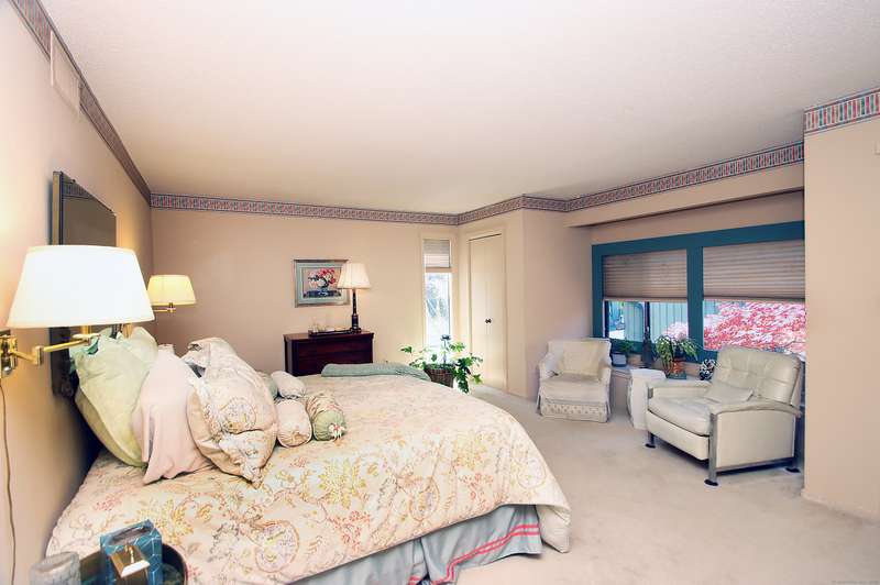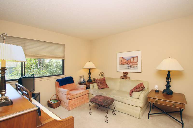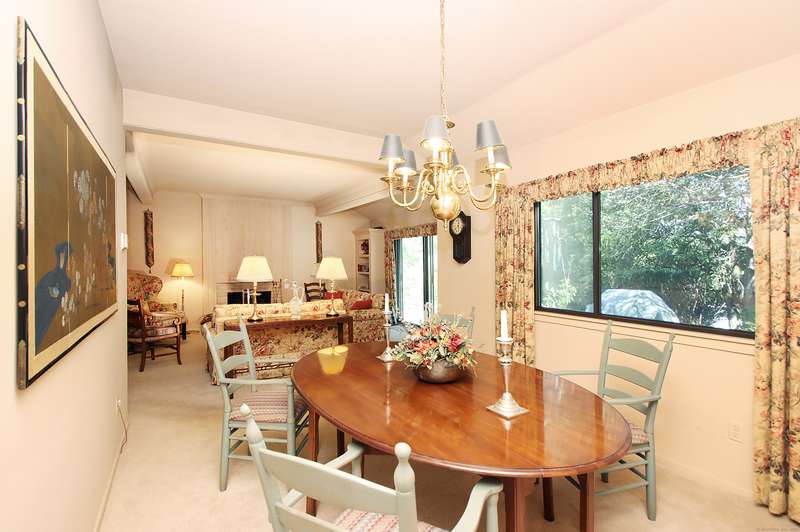 Beautiful 3-bedroom unit in Heritage Village with a corner end garage so nearby it almost seems attached. Pull your car into the garage and walk just 25 ft (all flat) to your front door. Living room overlooks private patio and formal dining room to the right. The primary bedroom has its own private dressing area adjacent to the primary bathroom, both ensuite. Please come take a look.The HOA fee includes a Spectrum package. All buyers pay a one-time equity fee of $5,000 to the Heritage Village Foundation at closing.