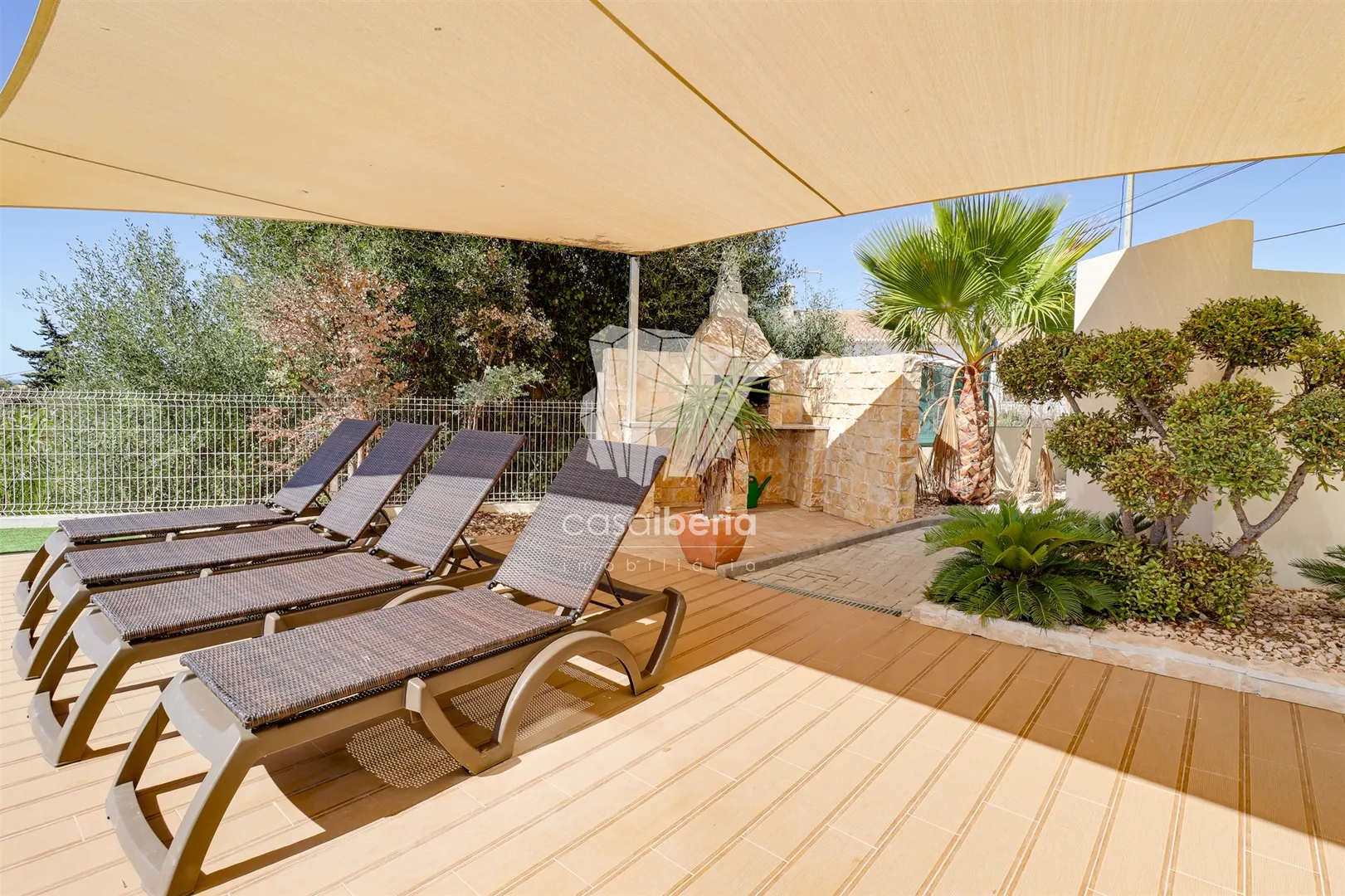 The villa has two levels and as it is built on the hillside to maximise the views. The lower level comprises of a spacious lounge and TV corner, featuring a small separation into which the log burning stove has been built, functioning from two sides. There are three bedrooms on this level, of which two have en suite shower rooms and a further separate shower room. Large patio doors open up to a covered terrace which flows into the pool terrace with hot tub (accessed by 4 steps down from pool) and barbecue corner, all enjoying the beautiful view.