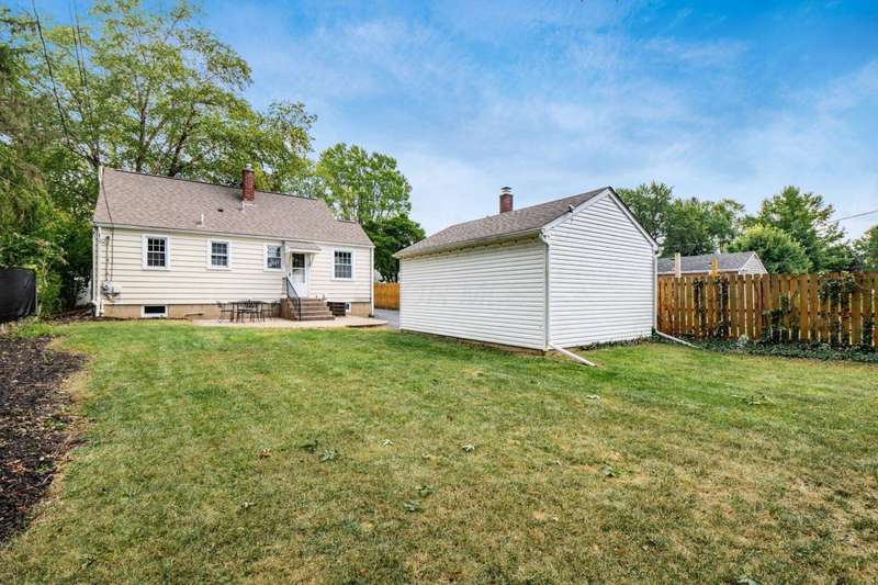 You'll find this beckoning Colonial Hills cape cod nestled among mature trees and close to two Community Parks! Property has updates to kitchen and bath, including new white 3x12 tile backsplash, new white quartz countertops, sink & faucet, new microwave and newer stove. Brand new tile shower, new vanity and mirror. Beautiful hardwood floors! Spacious 3rd BR upstairs with dual closets. Garage built in 2020. Windows and roof new in 2016. Potential for a 4th bedroom in lower level with egress window. Main waterline from street to house replaced in 2024. North wall of basement braced and a new sump pump installed in 2024. Water tank new 2021. 200 AMP electric. Brand new landscaping along the front of house and refreshed backyard landscaping beds. Worthington Schools. Perfect blend of value & charm!