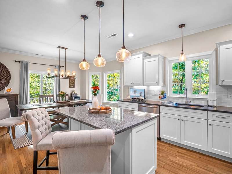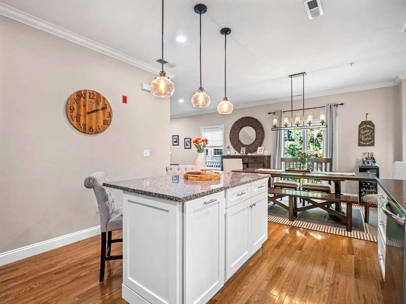 Welcome home to this beautifully maintained END UNIT townhome! This is a perfect blend of comfort, style, and convenience. From the moment you step inside, you ll be greeted by an inviting open floor plan filled with natural light & gleaming hardwood floors.The spacious kitchen features modern cabinetry, GRANITE countertops, and a breakfast area that flows seamlessly into the dining and living space ideal for entertaining or quiet evenings at home. The family room with gas FIREPLACE provides the perfect spot to relax after a long day. Upstairs, you ll find 3 bedrooms, including a serene primary suite with a walk-in closet, private bath & laundry. The finished lower level adds valuable living space, possible 4TH BEDROOM, perfect for a home office, gym or media room. Outside, enjoy a private deck overlooking landscaped grounds, offering a peaceful retreat for outdoor dining and gatherings. Additional features include: attached GARAGE, central air, and plenty of storage!