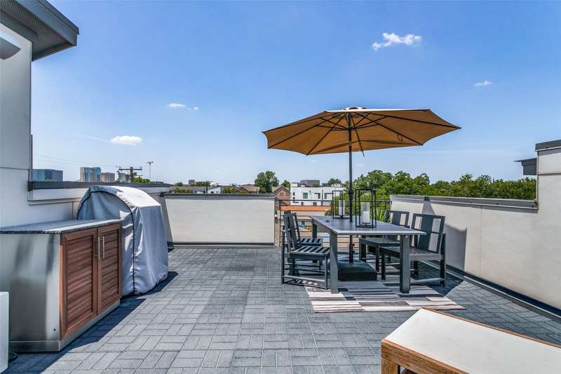 Contemporary 4 Story Townhome near Downtown Dallas and Uptown. The home features a private fenced & turfed yard and a fabulous rooftop patio. The main living area is light and bright with energy-efficient large windows, custom lighting, and architectural design. The kitchen has a large quartz kitchen island, stainless steel appliances, a Fisher and Paykel gas oven + range, a microwave, and a walk-in pantry. The Primary Bedroom has an En-Suite bathroom with marble tile, a glass shower, and a walk-in closet. The rooftop patio has 360-degree views of Downtown Dallas. Enjoy the convenience of a tankless water heater and 2-car garage. The flexible first-floor bedroom currently serves as an office. Come and see this gem and make it your own! GREAT Dallas location with easy access to Downtown, Uptown, Deep Elum, restaurants & shopping.The washer & Dryer unit remains. ** Water-Sewer-Trash Services Included **