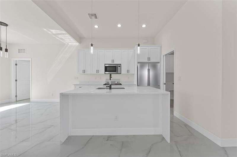 Discover this stunning, newly constructed home in the sought-after NW Cape Coral neighborhood, available for immediate move-in! This spacious corner lot residence offers 3 bedrooms plus a versatile den, and 2 beautifully designed bathrooms. Step into an open, airy living space filled with natural light, perfect for relaxing or entertaining. The heart of the home leads to a screened patio where you can enjoy the Florida lifestyle year-round, complete with a private pool-ideal for unwinding or hosting gatherings. With modern finishes throughout, stainless steel appliances, and thoughtfully designed spaces, this home is built to impress. Close to schools, shopping, and dining, it's an incredible opportunity for those seeking comfort, style, and convenience in Cape Coral.
