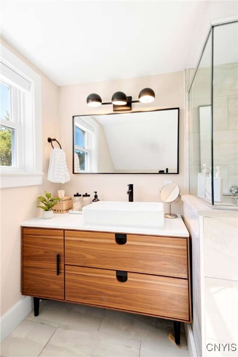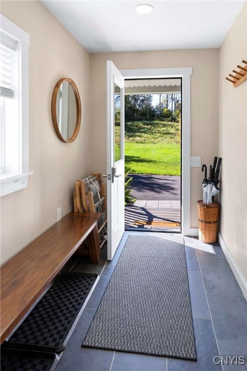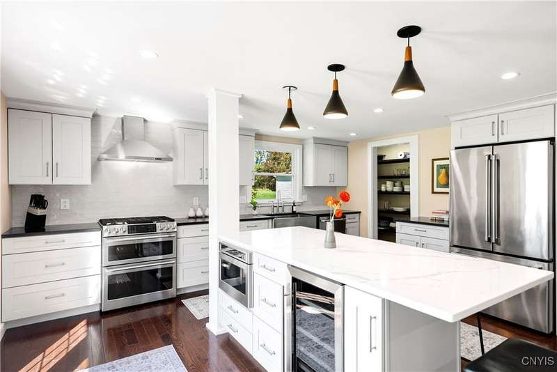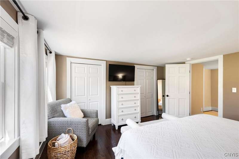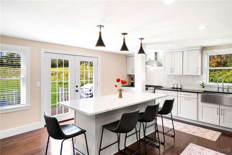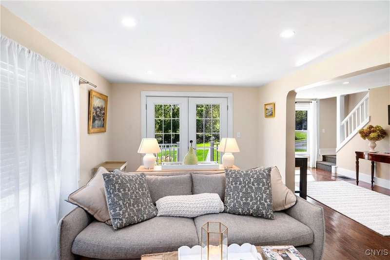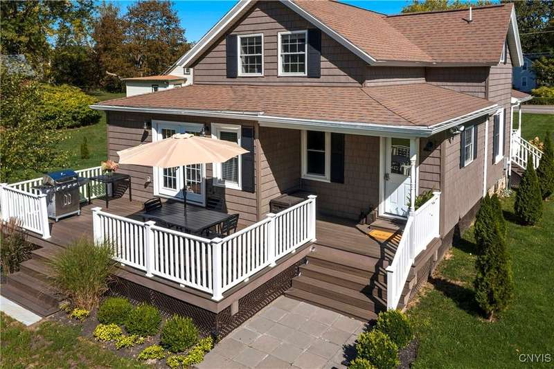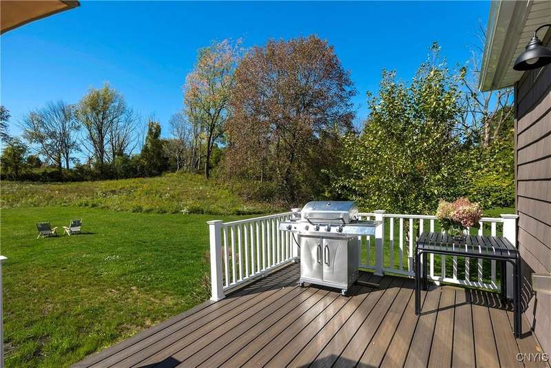 This stunning, fully furnished, three-bedroom, two-bath home on two pristine acres in the highly sought-after Skaneateles School District underwent a comprehensive frame-up renovation in 2022, transforming it into a turnkey retreat complete with beautiful, stylish furnishings and decor. Recently operated as a successful Airbnb, the thoughtfully reconfigured floor plan showcases a chef's dream kitchen outfitted with premium GE Cafe Series stainless steel appliances, including a double oven gas range, flush-mount microwave drawer, and undercounter wine cooler, all complemented by custom cabinetry, granite countertops, a spacious island, and a walk-in pantry with a hidden pocket door. Here you will find new hardwood flooring, luxurious bathrooms featuring marble, ceramic tiles, a walk-in glass shower, and a convenient first-floor laundry room. The property's exceptional outdoor features include Skaneateles Creek waterfront access perfect for trout fishing, a park-like backyard with breathtaking views, premium cedar shake-style vinyl siding, composite deck patios, extensive professional landscaping, and a freshly paved driveway, plus an approved permit to build a garage. Located near the prestigious Sinclair wedding venue, this meticulously maintained home offers the perfect blend of luxury, convenience, and natural beauty?an excellent opportunity to own a move-in-ready property where every detail has been perfected for your own use or to continue to run as a short-term rental investment property.