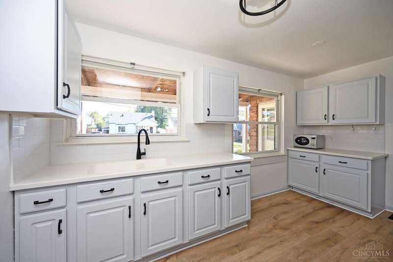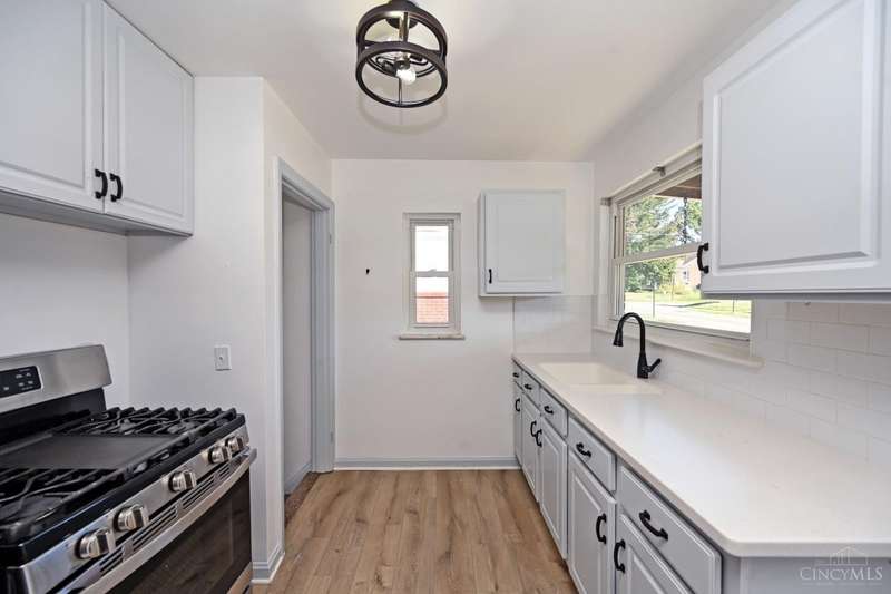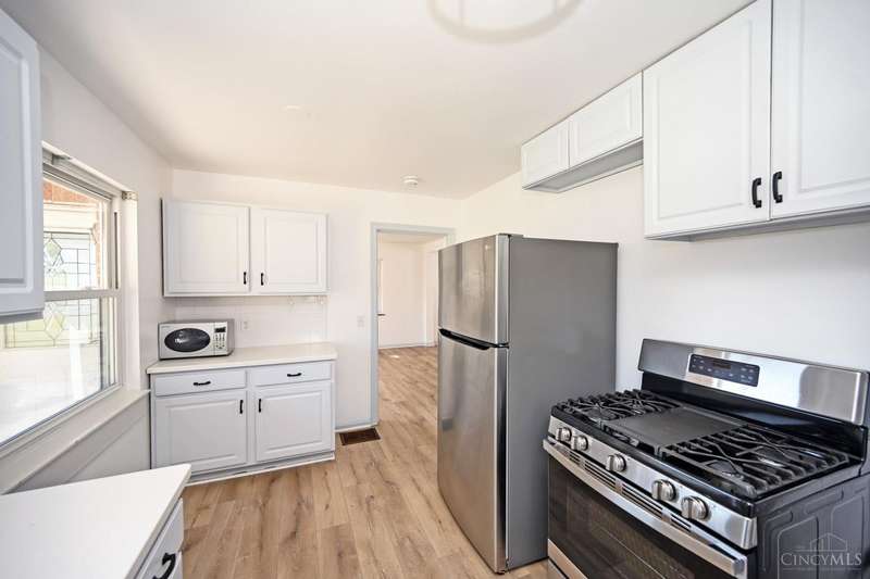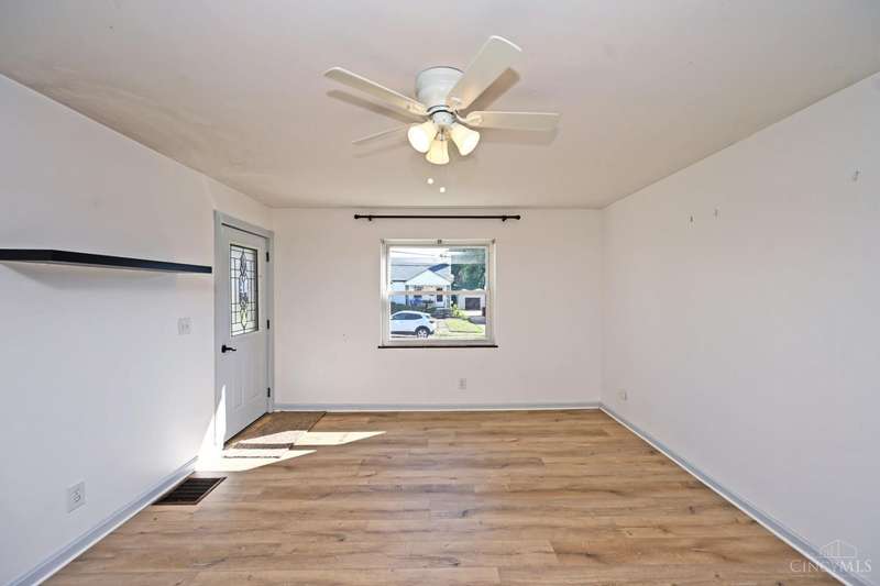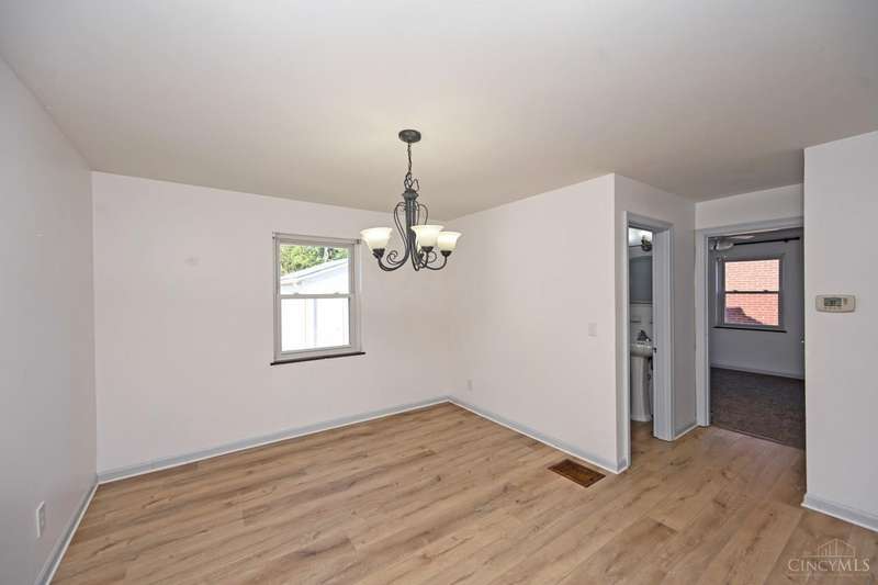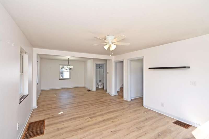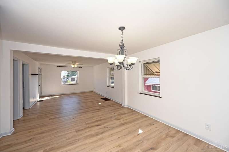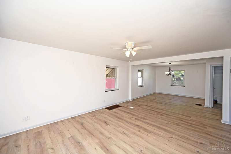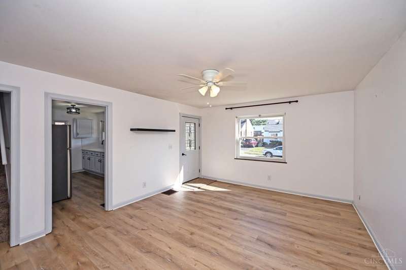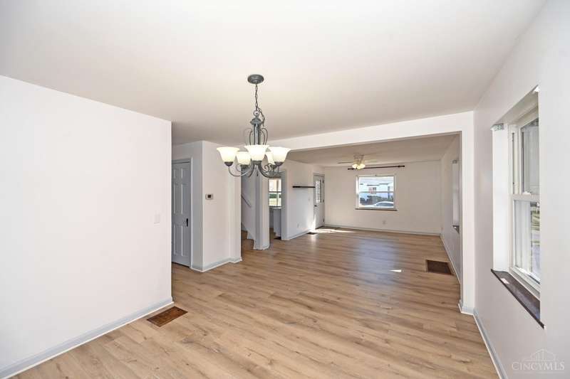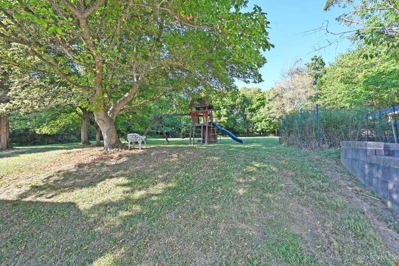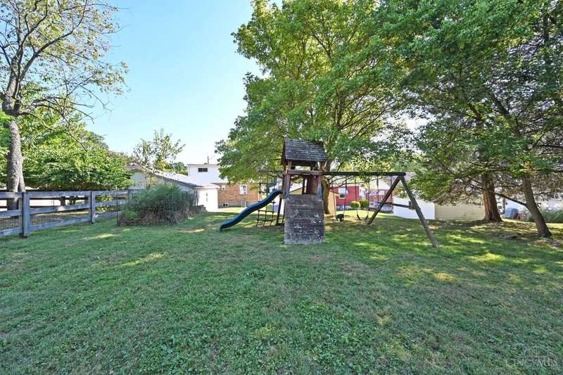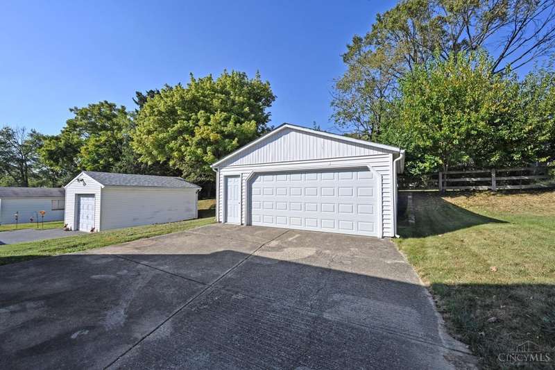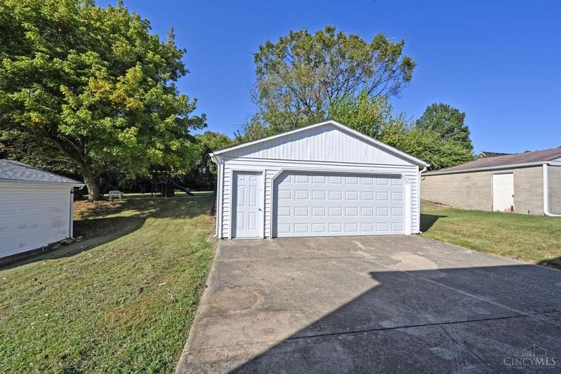 The main level welcomes you with a bright, open living & dining room, along with a convenient first-floor primary bedroom. The partially finished lower level has been professionally waterproofed & adds valuable living space, featuring a large family room, an updated full bath, & abundant storage. The family room offers flexible space for game nights, movie marathons (TV included with sale), or hosting overnight guests. Upstairs, you'll find two additional bedrooms in a classic shotgun'' style layout. Outdoors, this rare three-parcel property is a true highlight. The expansive, level greenspace is perfect for play, gardening, or backyard gatherings, while the wooded backdrop along the rear property line provides natural privacy. An oversized two-car garage offers plenty of room for vehicles, recreational gear & lawn equipment. Tucked away on a quiet street yet just minutes from schools, parks, shopping, & dining, this home combines comfort, convenience, and space inside & out.