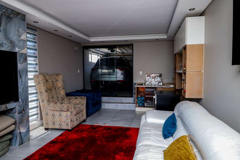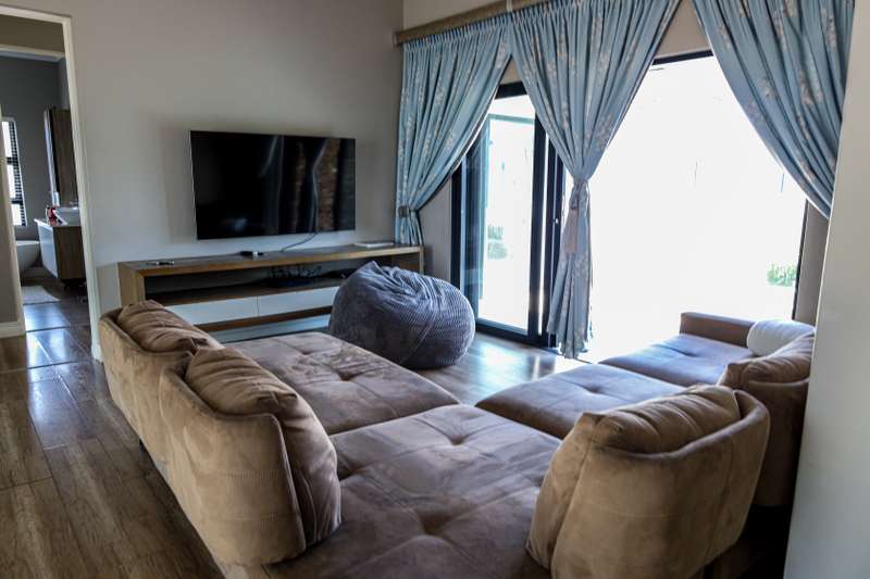 4 BEDROOM NATURAL DAY LIGHT MODERN DESIGNED HOUSE ON SALE IN MIDSTREAM RIDGE Natural day light I Modern design house features I Splendid night lighting I Entertainment area I Modern house I This modern designed house in corner stand is available for grab and will give you peace of mind during the day and comfort during the night. House features: Downstairs: Welcoming double volume area. Beautiful wooden stairs. Dining area, Lounge and TV area. Modern design kitchen, an island, multiple carboards and scullery. Ensuite guest bedroom. Ensuite staff quarter. Bar/Entertainment area. 4 Garages with storage carboards . Open space drive through with parking space Swimming pool surrounded by wooden deck connected to a boma area. Beautiful landscaping with automatic irrigation system Upstairs: Double volume Beautiful wooden stairs PJ lounge Spacious Study or Gym 2 Ensuite bedrooms A Huge ensuite main bedroom with walking closet and balcony For more information and appointment contact us today