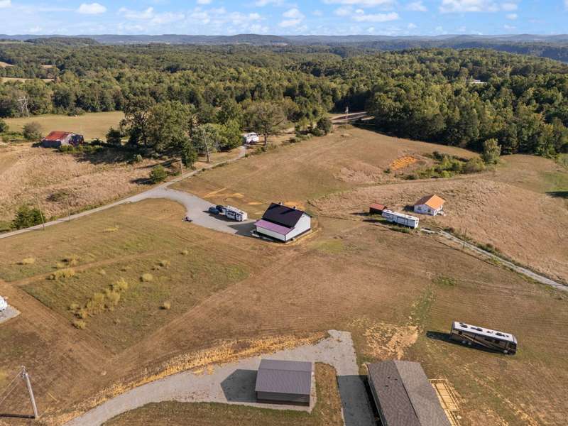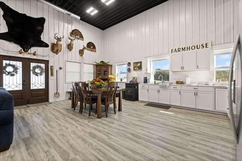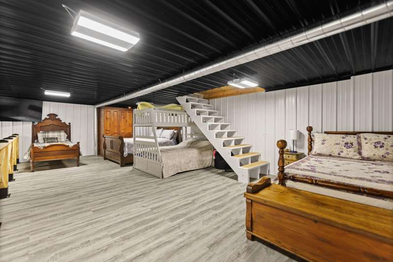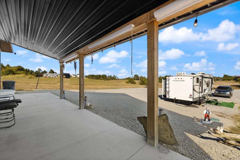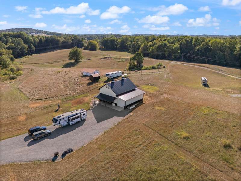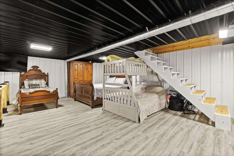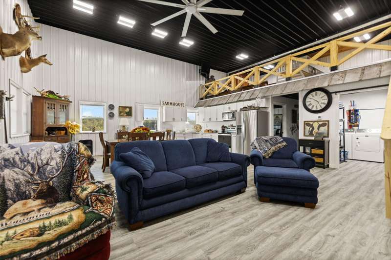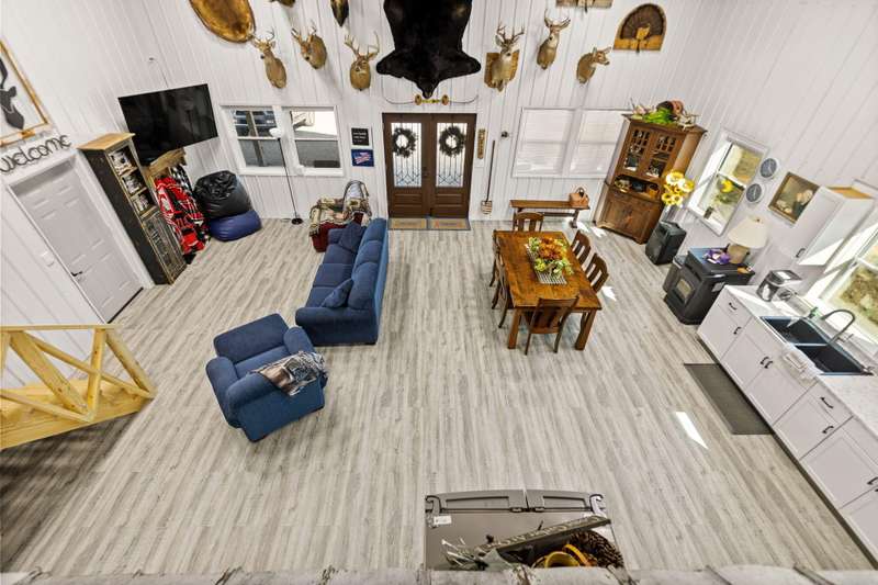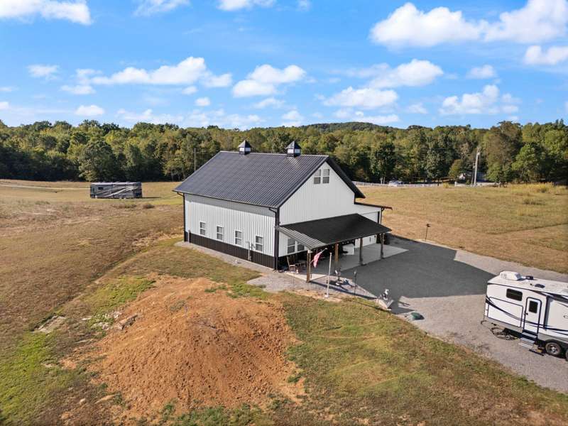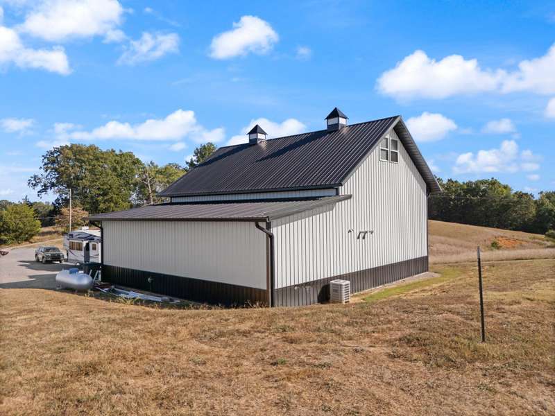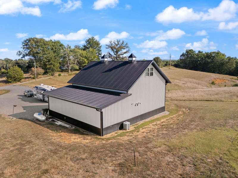 Custom barndominium built in 2022 featuring 1,680 sq. ft. of finished living space on a 0.67-acre lot. This home offers 2 bedrooms and 1 full bath with one bedroom on the main floor and a loft bedroom with space for multiple beds, accommodating up to 12 guests. The third floor is spray-foamed and partially floored, providing potential for an additional 480 sq. ft. of living space. The attached 14x40 garage is also spray-foamed for efficiency. Comfort is provided by a heat pump for cooling and a propane floor furnace with pellet stove backup. Most furnishings remain, along with kitchen appliances, washer, and dryer. Launch your boat just 3 miles away at the end of Park Forest Rd and enjoy quick access across the lake to Conley Bottom Marina. City water, septic tank, and excellent lake-area location approximately 10-12 miles to Wolf Creek Marina by car. A versatile property ideal as a primary home, lake retreat, or rental investment!