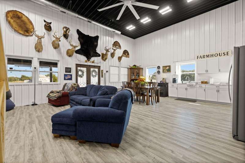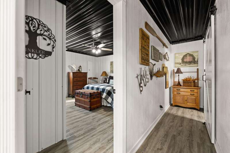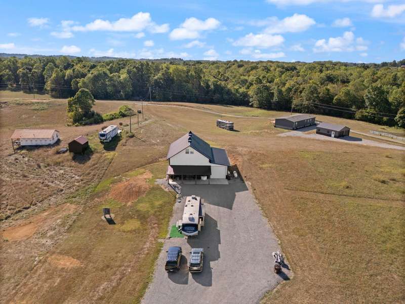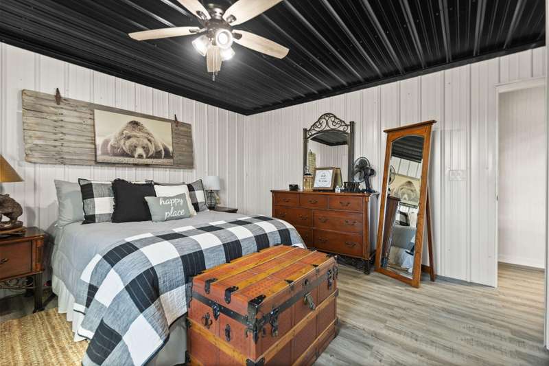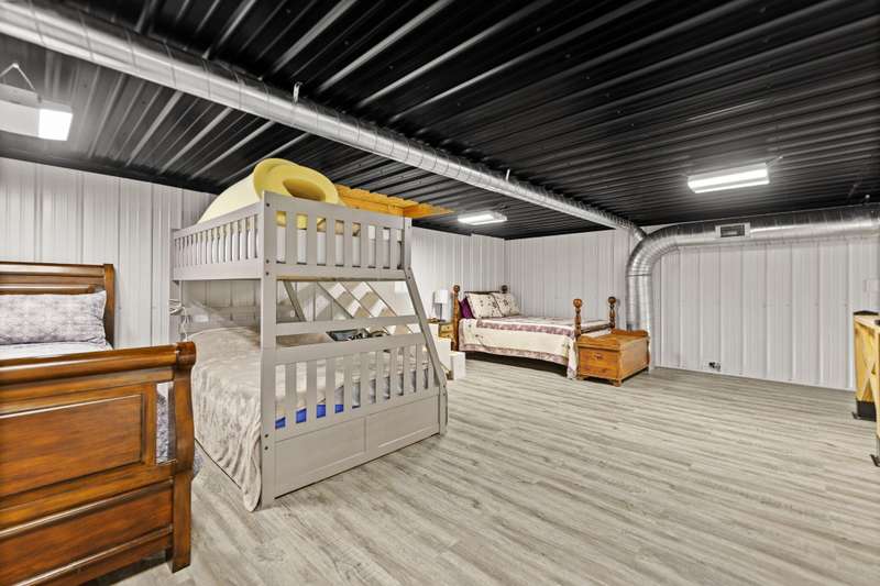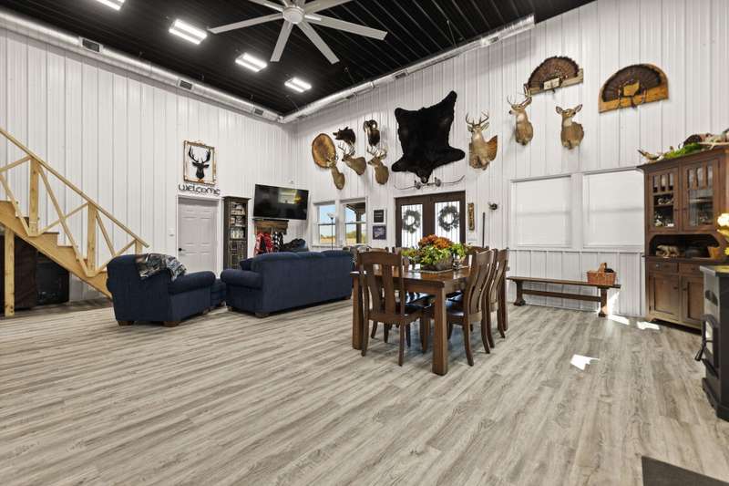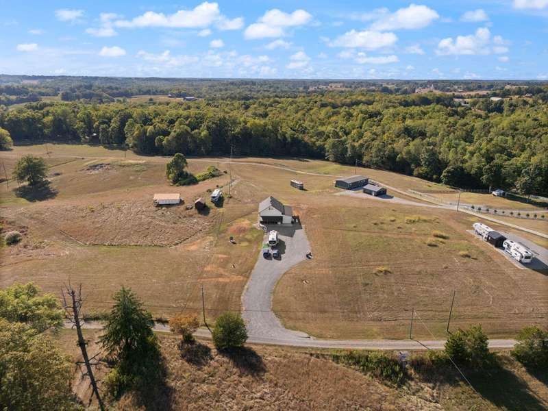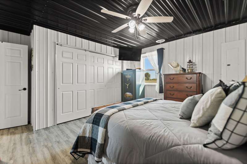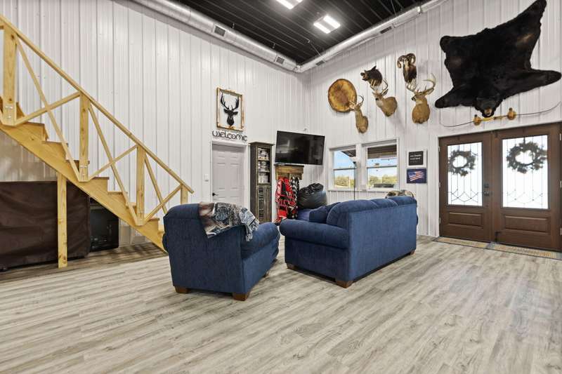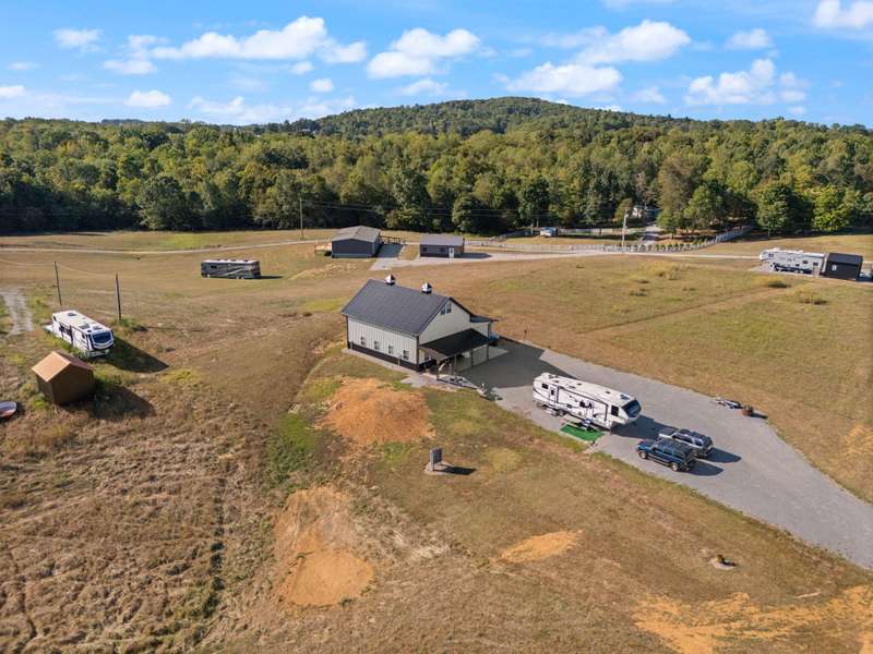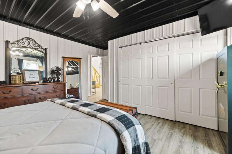 Custom barndominium built in 2022 featuring 1,680 sq. ft. of finished living space on a 0.67-acre lot. This home offers 2 bedrooms and 1 full bath with one bedroom on the main floor and a loft bedroom with space for multiple beds, accommodating up to 12 guests. The third floor is spray-foamed and partially floored, providing potential for an additional 480 sq. ft. of living space. The attached 14x40 garage is also spray-foamed for efficiency. Comfort is provided by a heat pump for cooling and a propane floor furnace with pellet stove backup. Most furnishings remain, along with kitchen appliances, washer, and dryer. Launch your boat just 3 miles away at the end of Park Forest Rd and enjoy quick access across the lake to Conley Bottom Marina. City water, septic tank, and excellent lake-area location approximately 10-12 miles to Wolf Creek Marina by car. A versatile property ideal as a primary home, lake retreat, or rental investment!
