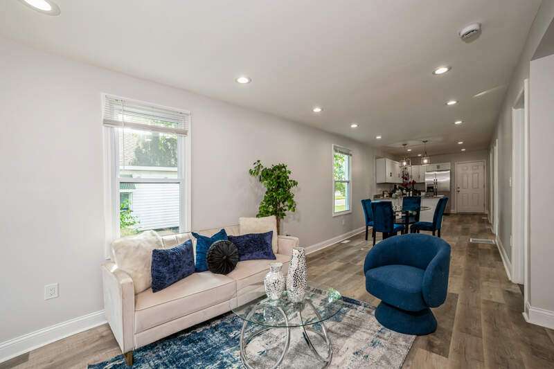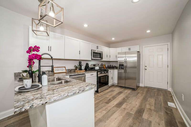 Celebrate the season in a grand, fully renovated 5-bed/3-bath home with three levels of finished living. Host holiday dinners now--move in and own the new year. Step inside this fully renovated 5-bedroom, 3-bath masterpiece and prepare to fall in love. Boasting three levels of beautifully finished living space, this home offers an ideal blend of modern elegance, thoughtful design, and everyday comfort.The private owner's suite is a true retreat, featuring its own spa-inspired bathroom oasis with a soaking tub, luxury porcelain and ceramic tile surrounds, and high-end finishes for the ultimate in relaxation.From the moment you enter, you'll be captivated by the open-concept living and formal dining areas, illuminated by LED and recessed lighting and adorned with elegant chandeliers. The luxury vinyl plank flooring, granite countertops, new cabinetry with custom black pulls, and designer fixtures speak to the meticulous craftsmanship found throughout.