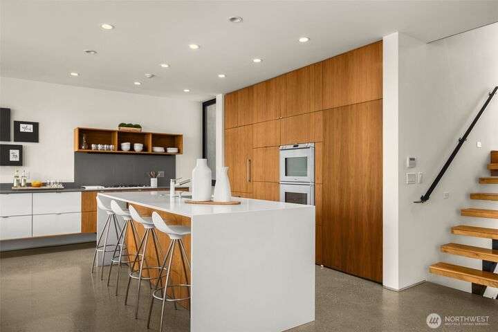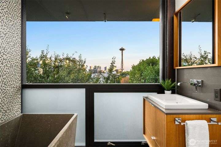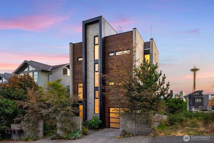 417 Ward Street is a study in visionary craftsmanship. Designed and built by a master woodworker, this Queen Anne showpiece blends artisan materials w/ iconic vistas. Every line, finish, and function was hand-selected with purpose — from grain-matched walnut cabinetry to passive solar orientation. The primary suite, guest bedrooms, living room, and kitchen - Southern-facing rooms on every floor display panoramic views of downtown Seattle and the Space Needle. Features include Gaggenau appliances, rooftop fire pit and wet bar, a fully permitted ADU, and attached garage. Located moments from Climate Pledge, South Lake Union, Kerry Park, & Queen Anne favorites. This home offers beauty beyond comparison — and a lifestyle beyond expectation.