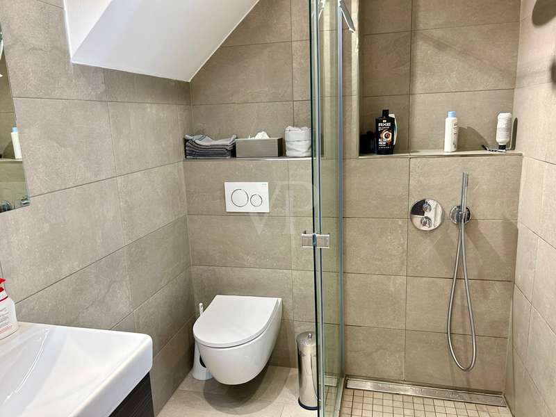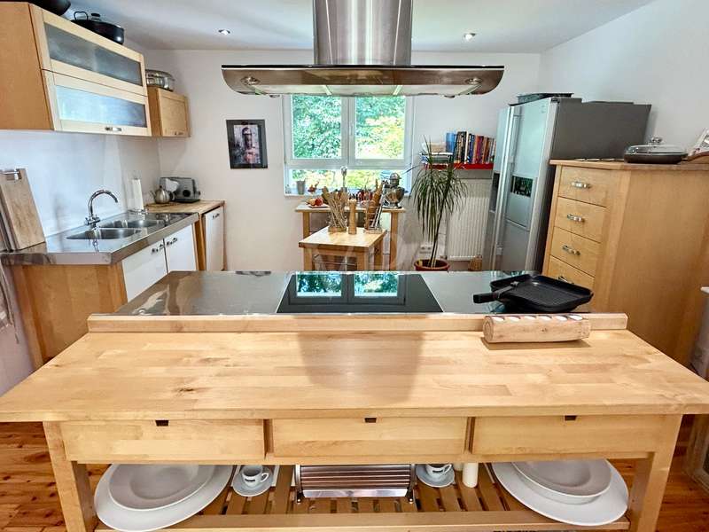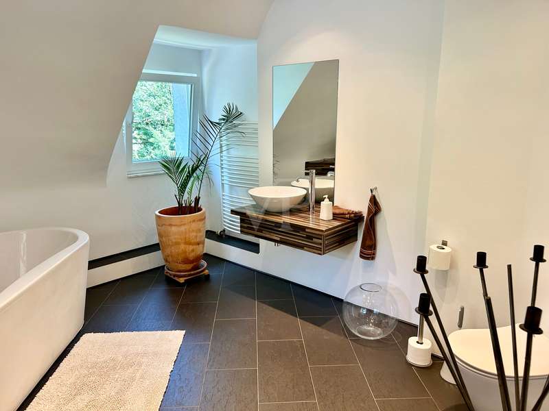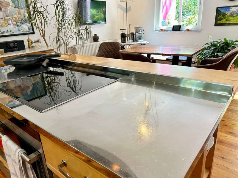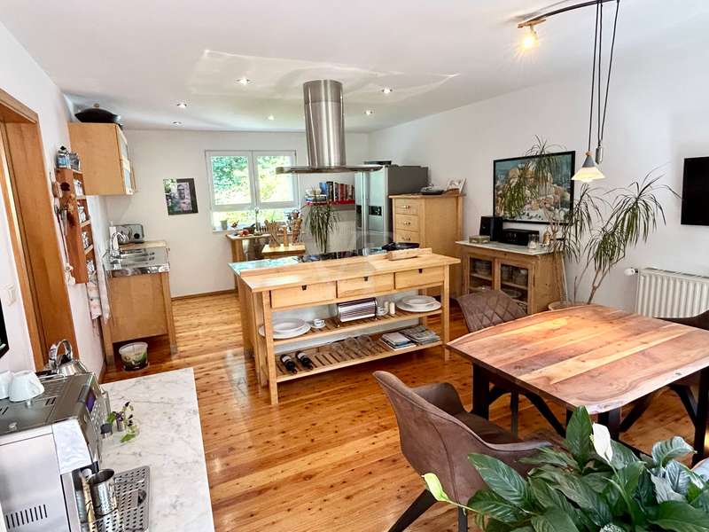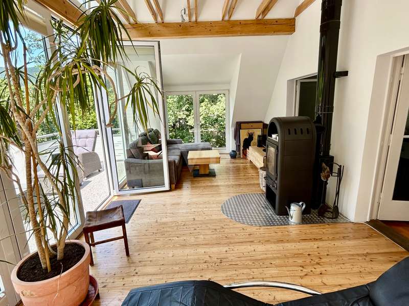 The semi-detached house from 1953 presents itself in good condition on a plot of approx. 987 m² and a living space of approx. 134 m². The house was renovated and converted in 1989, 2008 and 2022, resulting in a modern and contemporary interior. The house is spread over two floors and offers a total of five rooms, including three bedrooms and two bathrooms. Particularly noteworthy is the spacious kitchen-living-dining area, which offers plenty of space for cozy get-togethers. The house also has a large living room with an adjoining balcony, where you can enjoy the beautiful view of Ziegelhausen and Neuburg Abbey. Residents can relax and unwind on the two terraces, which invite them to linger outdoors. The semi-detached house is heated by a modern oil heating system from 2018, which provides pleasant warmth. There is also a wood-burning stove, which creates a cozy atmosphere in the house on cold days. The pitch pine floorboards give the rooms a warm and cozy feel. A carport offers space for two cars and reliably protects them from wind and weather. The electrical and water pipes were renewed in 1989, ensuring a modern infrastructure in the house. A modern bathroom was installed on the first floor in 2022, which meets current standards. The location of the property is quiet yet well connected. Shopping facilities, schools and public transport are nearby and easy to reach. The semi-detached house therefore offers the ideal compromise between rural living and good infrastructure. An ideal home for a family that values comfort and a quiet environment.