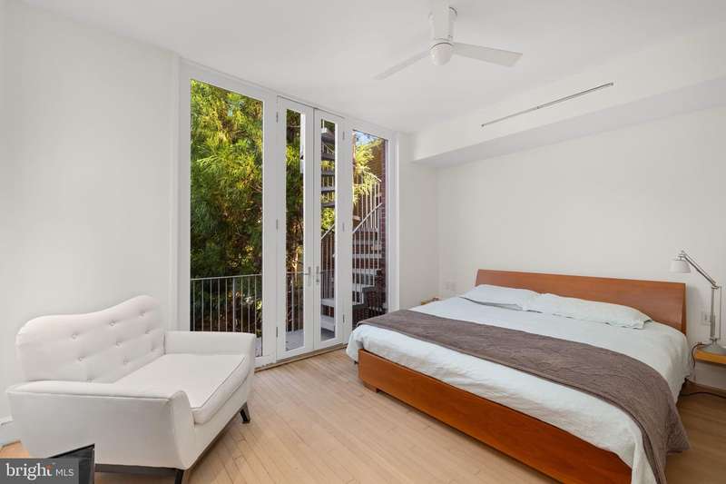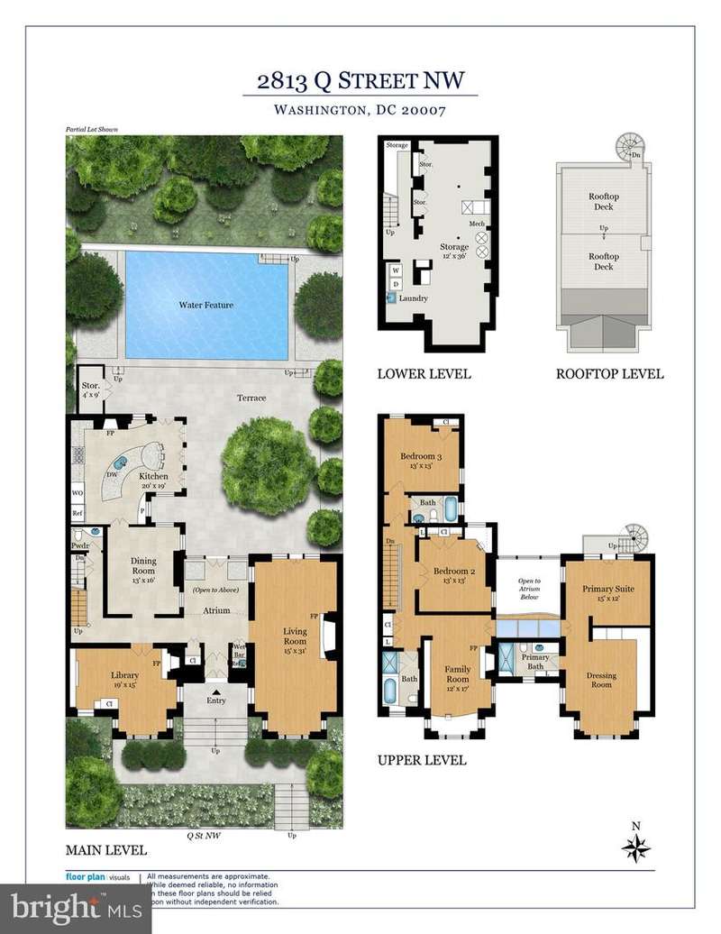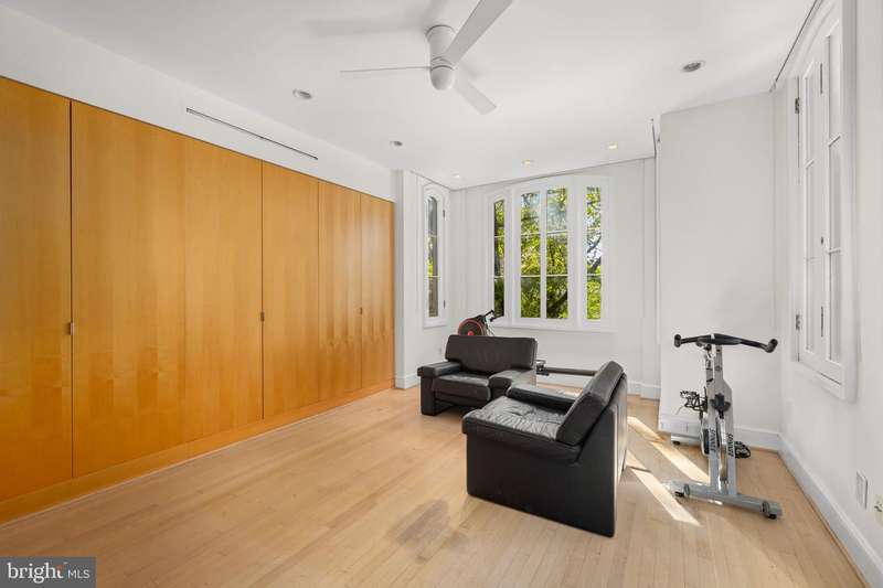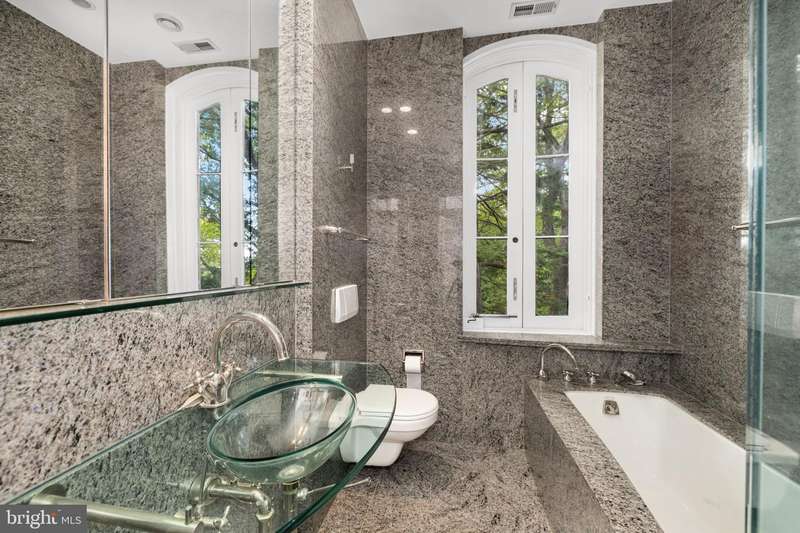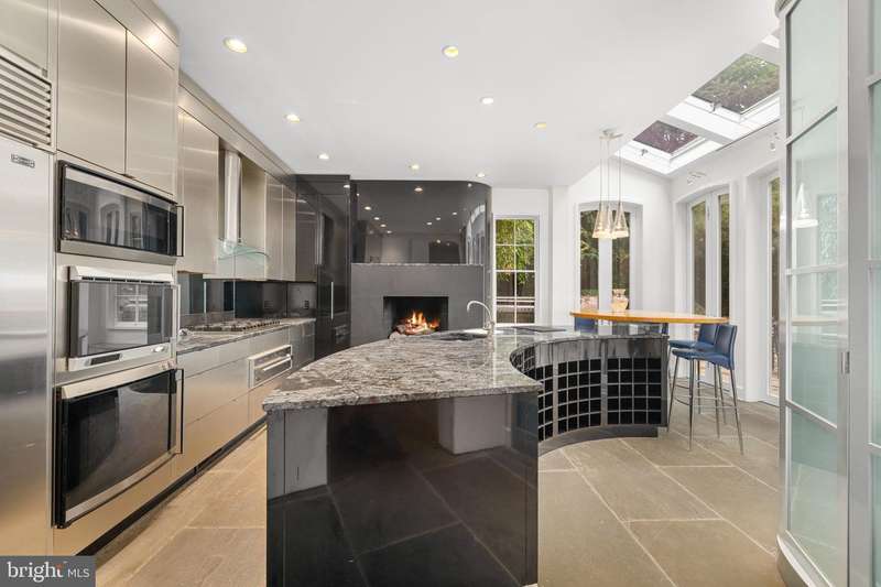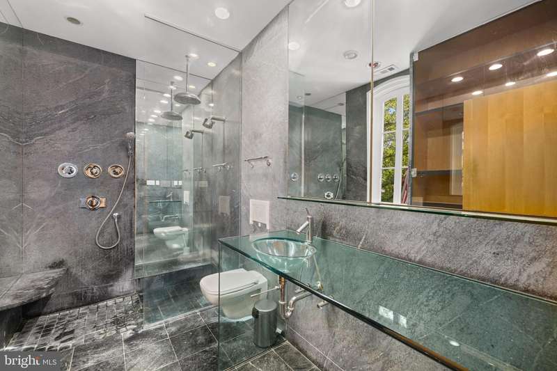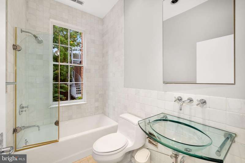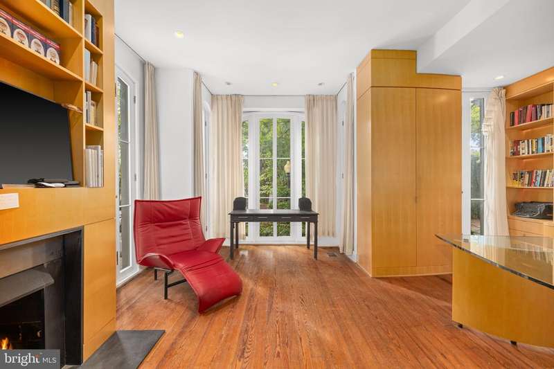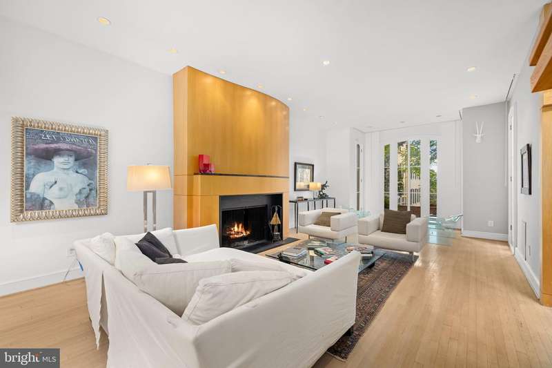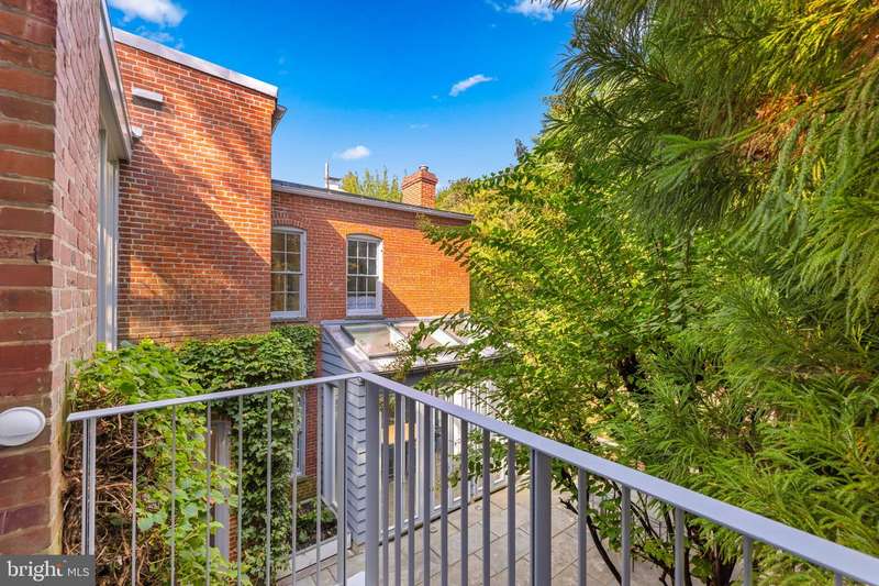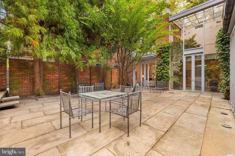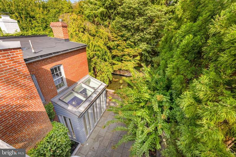 Award-winning and architecturally significant, 2813 Q Street is one of Hugh Newell Jacobsens earliest and defining Georgetown works. Designed in 1962, reconciles the Old Georgetown Acts preservation standards with Jacobsens modernist clarity and precision. Behind its 19th-century faade lies a luminous world of soaring space, geometry, and proportiona timeless expression of Washington modernism.A double set of entry doors opens to a two-story atrium more than twenty feet high, capped by glass ceilings and framed by tall doors to the garden and public rooms. The scale accommodates full trees indoors, while a discreet bar and deep coat closet are built in seamlessly and are hiding in plain sight. To the right, the expansive living room with massive fireplace features a south-facing bay window and glass doors to the garden. On the west side of the atrium, a south-facing library offers large windows, a fireplace, and custom cabinetry. Across the bluestone hallway is a perfectly square dining room with tall connecting doors that creates a singular flow, ideal for entertaining. The immense marble-and-stainless kitchen is filled with light and garden views, it too has a fireplace, and multiple exits to the terrace, and all the practical elements of a true chefs kitchen. Further down the hall lies the original 1880s staircase, with lower-level stairs and a generous powder room tucked behind them. The lower level provides a lot of dry storage and laundry.Upstairs in the original house are two bedrooms, each with a unique marble-and-glass bath and wonderful views. The adjoining family room, lined with Jacobsens signature shelving has treetop vistas, and leads across a glass bridge spanning the atrium to the primary suitean inspired composition of light and privacy. The suite includes a large, garden-facing bedroom, a fitted dressing room ample enough for a sitting area or gym, and a striking black marble bath. French doors open to a private balcony with a spiral staircase ascending to a remarkable roof deck overlooking the garden and Georgetowns rooftops.The garden, designed by landscape architect Lester Collins, extends across a double lot in layered terraces of bluestone and brick centered on a broad lily pool framed by clipped Deodar cedar. It remains one of Georgetowns most extraordinary modern landscapesa perfect counterpart to Jacobsens architecture and a masterclass in the union of modern form and natural grace.
