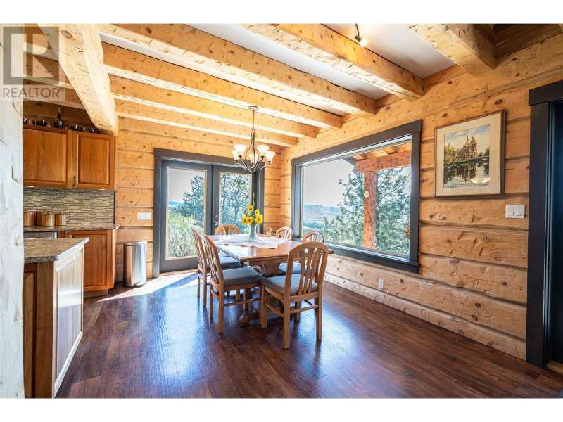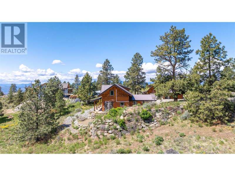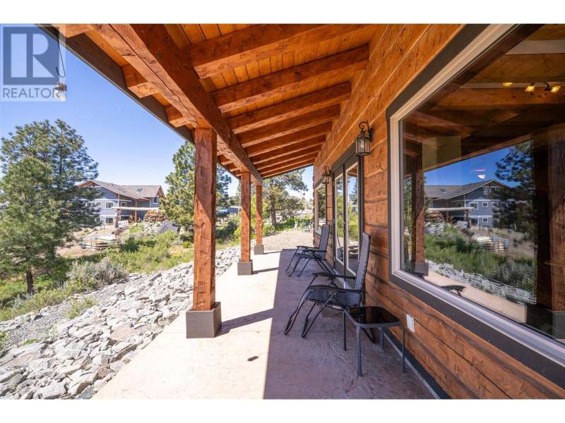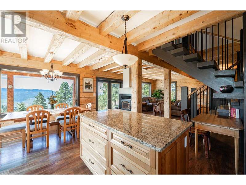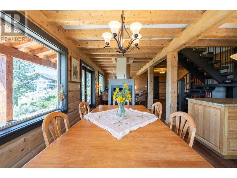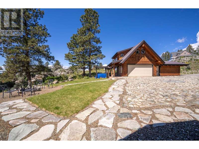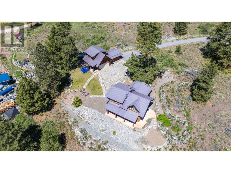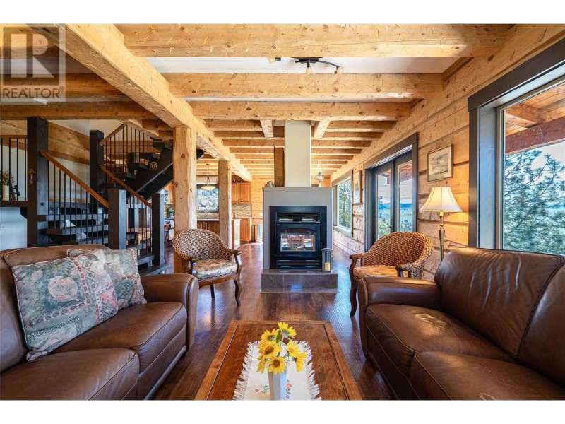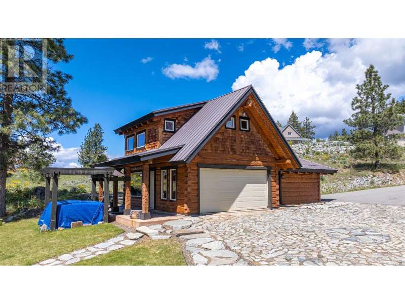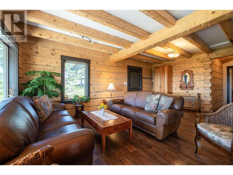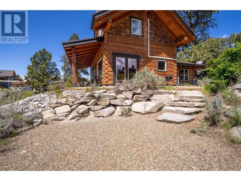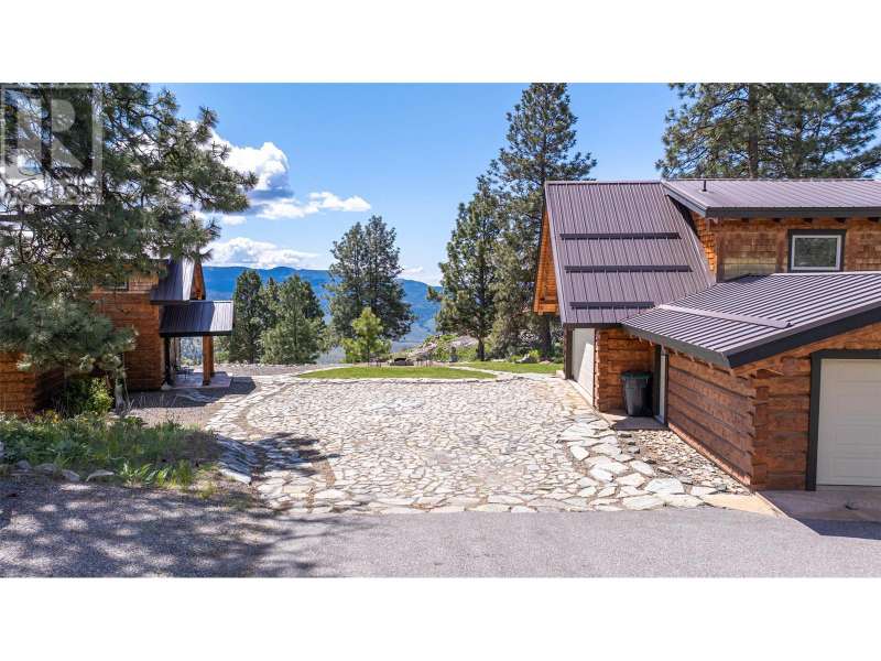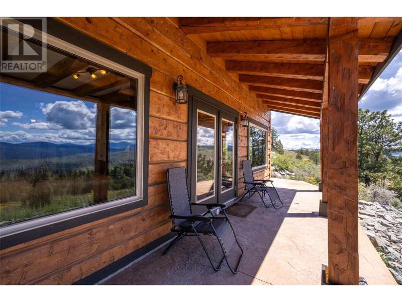 Welcome to Anarchist Mountain where natural beauty and architectural craftsmanship meet in a peaceful and quiet atmosphere. Just 15 km from the charming town of Osoyoos, this rare European-style custom dovetail log home is set on 2.5 South facing private acres with breathtaking meadow and mountain views. Designed with timeless appeal and quality in mind, this unique residence features vaulted ceilings, exposed beams, and large picture windows that flood the interior with natural light and warmth. Front covered porch helps keep cooler in the summer. The open-concept layout is anchored by a stunning double-sided wood-burning fireplace, and radiant in-floor heating ensures year-round comfort. A potential primary bedroom on the main floor adds flexibility to the thoughtful layout. A spacious, heated three-car garage includes a fully self-contained 450 sq ft carriage suite above with kitchenette, ideal for guests, a private office space or rental income. Outside, enjoy a hot tub overlooking a professionally landscaped yard complete with a fire pit, stonework, and native wildflowers. Additional features include a high-producing well, underground power, and proximity to Mt. Baldy, perfect for hiking, cycling, snowshoeing, and cross-country skiing. This one-of-a-kind mountain retreat offers peace, privacy, and endless opportunities for outdoor living. A true must-see. (id:7434)