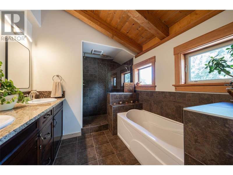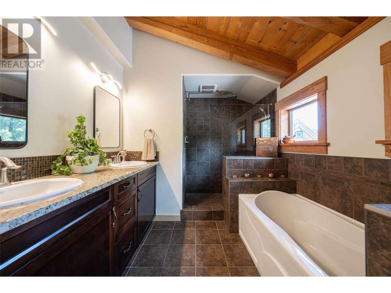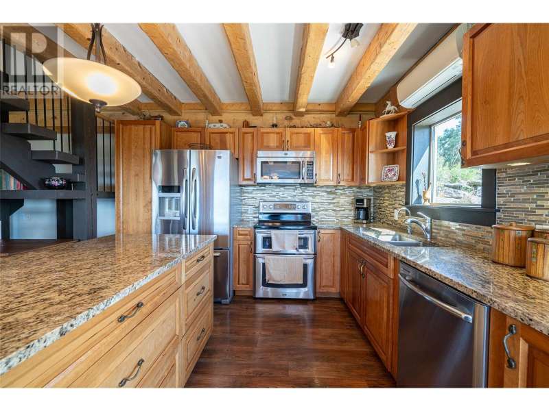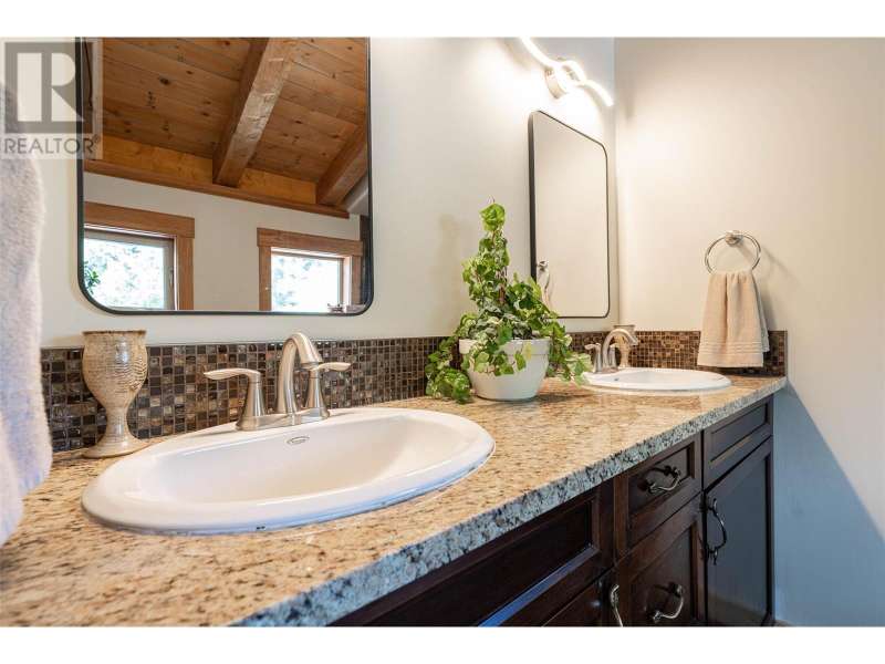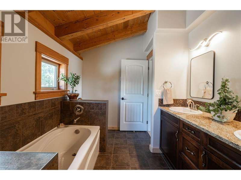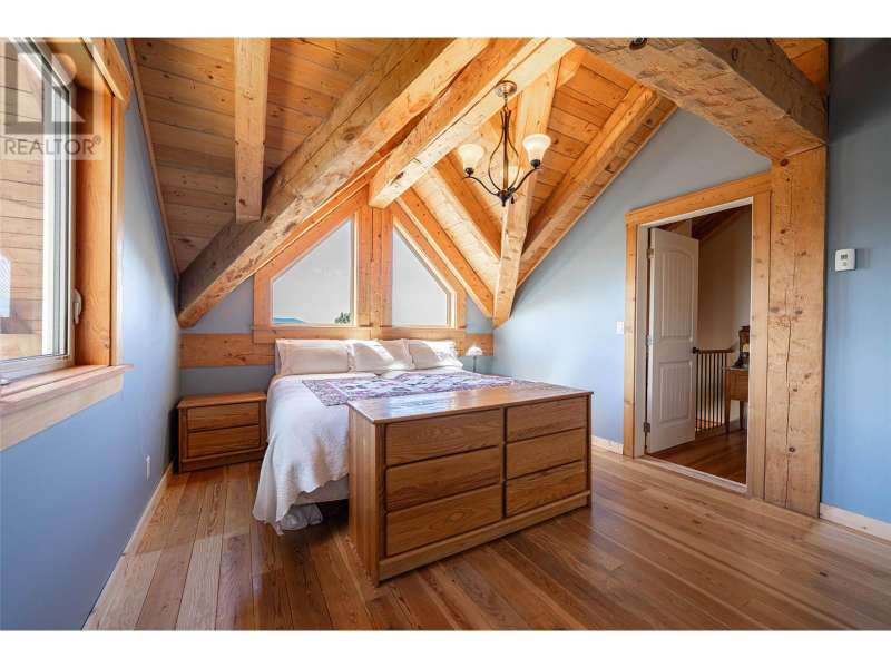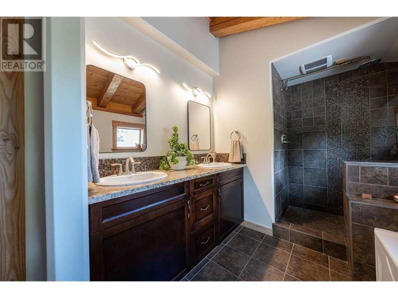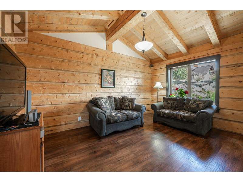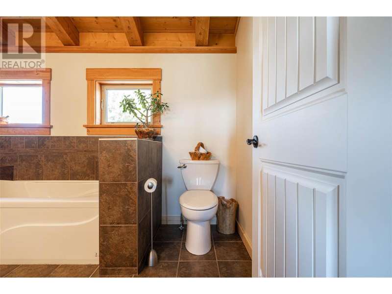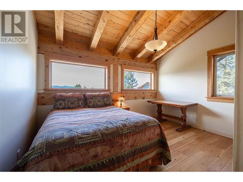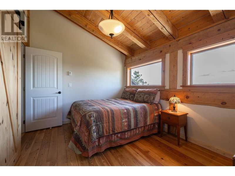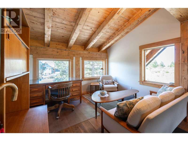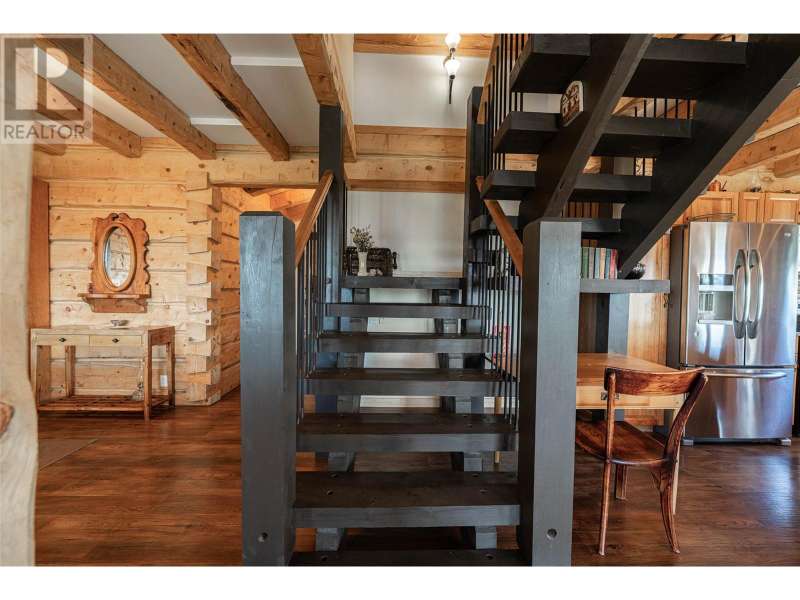 Welcome to Anarchist Mountain where natural beauty and architectural craftsmanship meet in a peaceful and quiet atmosphere. Just 15 km from the charming town of Osoyoos, this rare European-style custom dovetail log home is set on 2.5 South facing private acres with breathtaking meadow and mountain views. Designed with timeless appeal and quality in mind, this unique residence features vaulted ceilings, exposed beams, and large picture windows that flood the interior with natural light and warmth. Front covered porch helps keep cooler in the summer. The open-concept layout is anchored by a stunning double-sided wood-burning fireplace, and radiant in-floor heating ensures year-round comfort. A potential primary bedroom on the main floor adds flexibility to the thoughtful layout. A spacious, heated three-car garage includes a fully self-contained 450 sq ft carriage suite above with kitchenette, ideal for guests, a private office space or rental income. Outside, enjoy a hot tub overlooking a professionally landscaped yard complete with a fire pit, stonework, and native wildflowers. Additional features include a high-producing well, underground power, and proximity to Mt. Baldy, perfect for hiking, cycling, snowshoeing, and cross-country skiing. This one-of-a-kind mountain retreat offers peace, privacy, and endless opportunities for outdoor living. A true must-see. (id:7434)