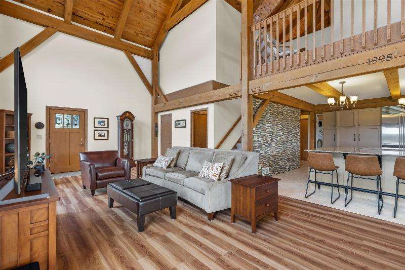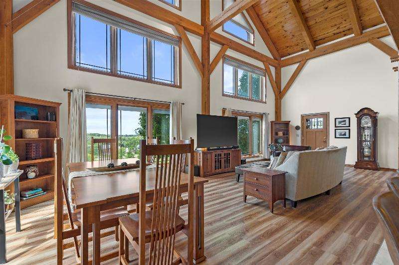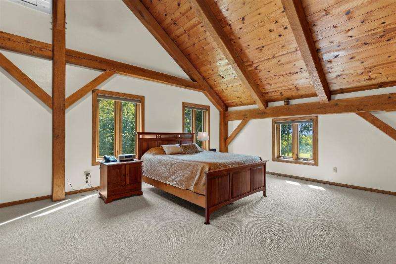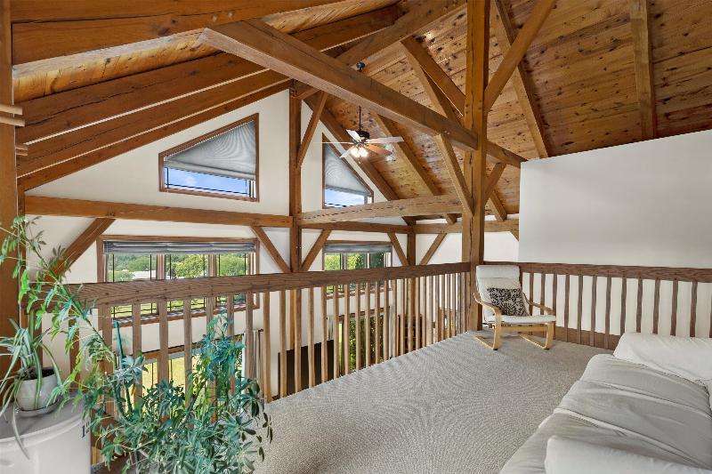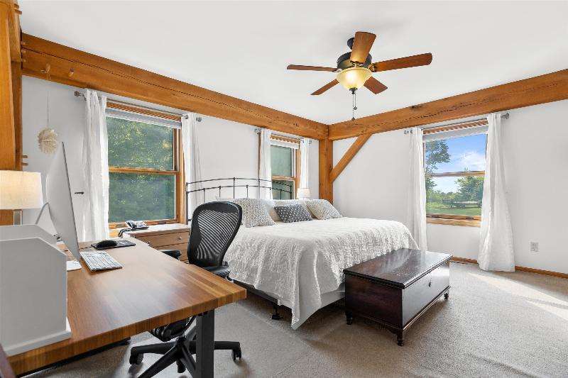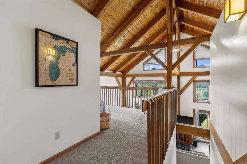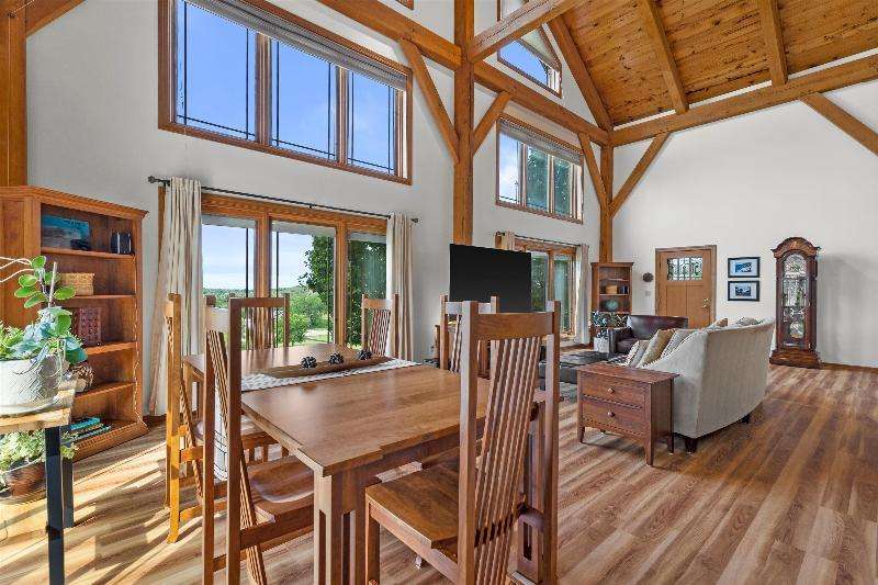 Welcome to this meticulously maintained 3 bed 2 full bath post & beam style home nestled on 4.25 beautiful acres. Showcasing timeless craftsmanship & warm character, this property combines rustic charm with thoughtful updates. Inside, soaring wood beams & abundant natural light create a welcoming atmosphere. 2 bedrooms & a full bath along with an open kitchen & dining space on the main floor with a massive living space. The oversized primary suite featuring a private screened in balcony offers a private sanctuary like feel. A large loft overlooking the living space is a perfect sitting room. Step outside and enjoy the serenity of your private acreage--perfect for gardening, recreation, or simply taking in the natural beauty of Wisconsin's countryside. Schedule your private showing today!