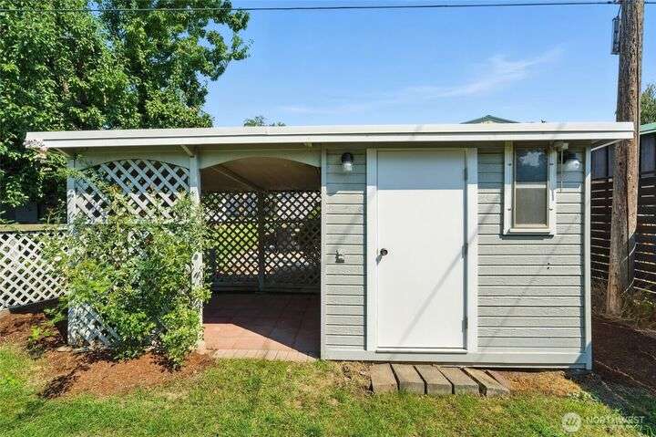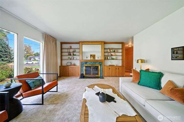 Step into this classic mid-century single-level rancher, with original built-ins throughout and warm gathering spaces to make you feel instantly at home. A welcoming entry leads to a sunlit living room with fireplace and a full wall of floor to ceiling windows. The bright open kitchen flows into space for dining/family area, with large windows and doors to a covered patio—perfect for entertaining. Large laundry room with plenty of storage and space for hobbies. A covered breezeway connects a 2-car garage to the house. Ample space in the garage for workshop/storage. Spacious irrigated yard includes a powered garden shed. Prime location near schools, parks, and shopping for everyday ease. First time on the market since 1965. One of a kind!