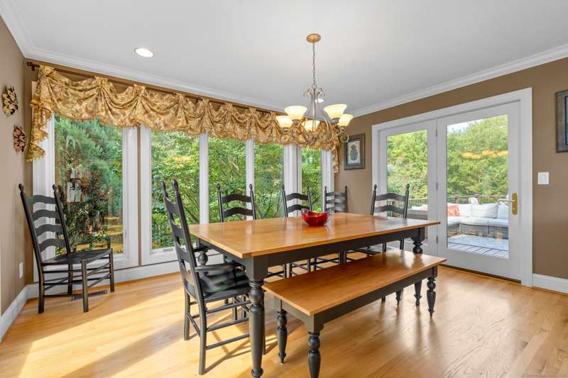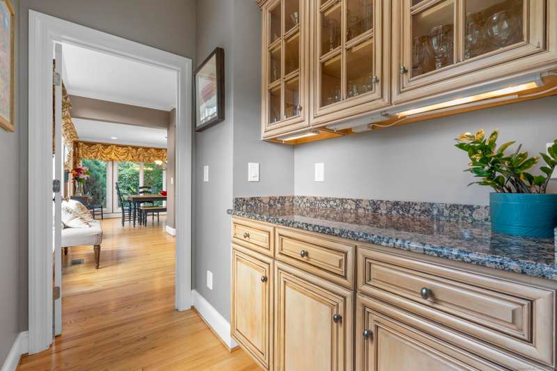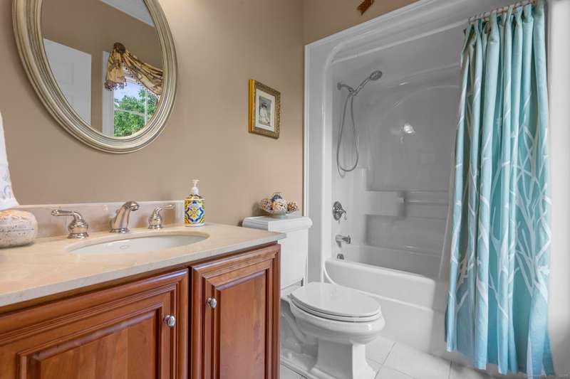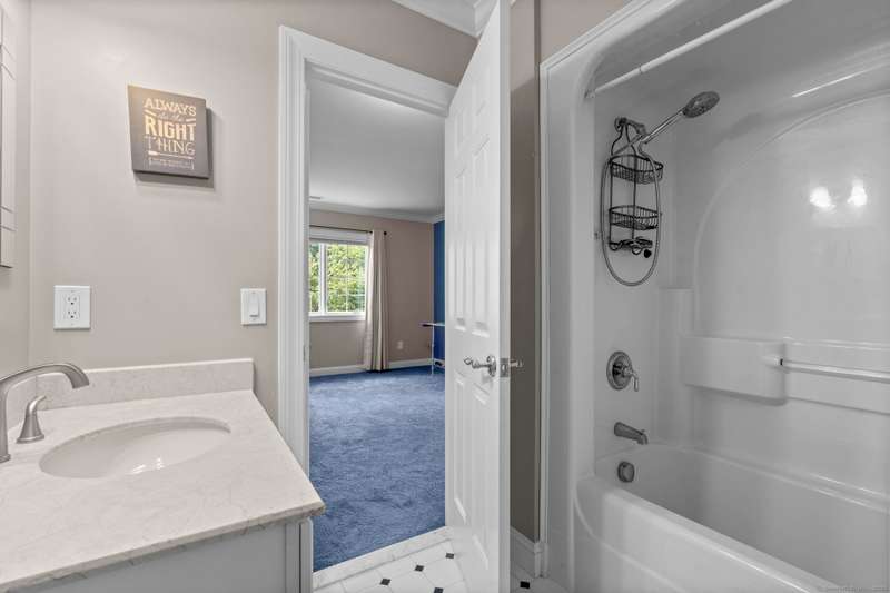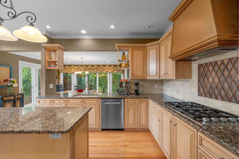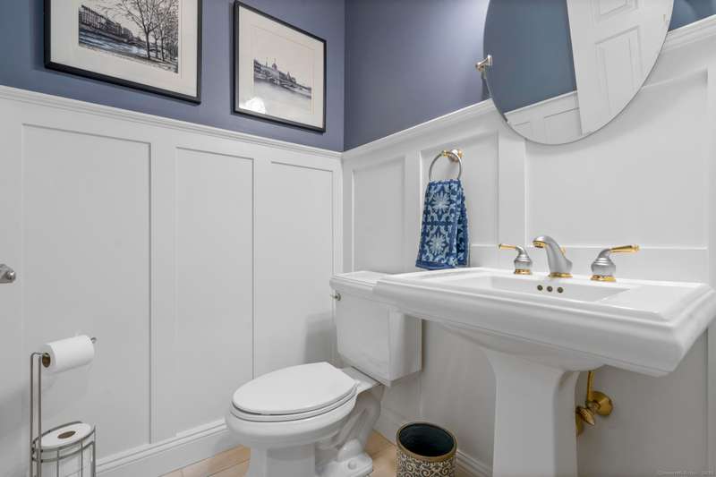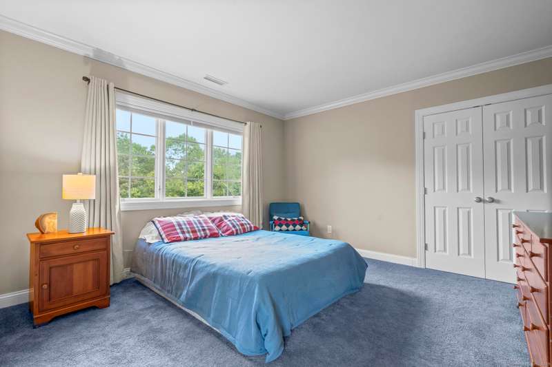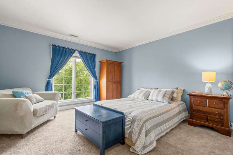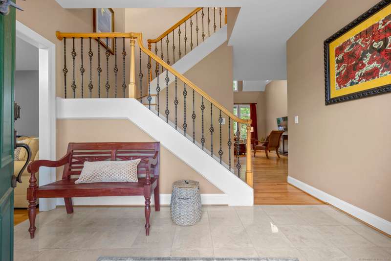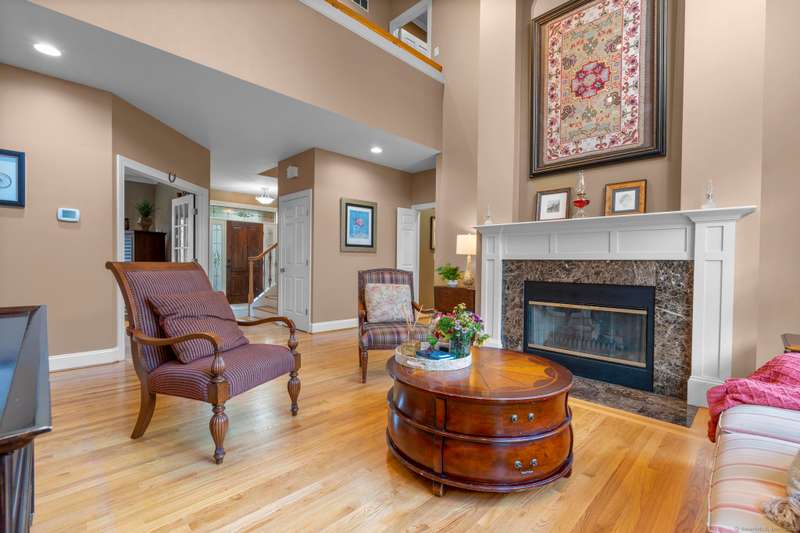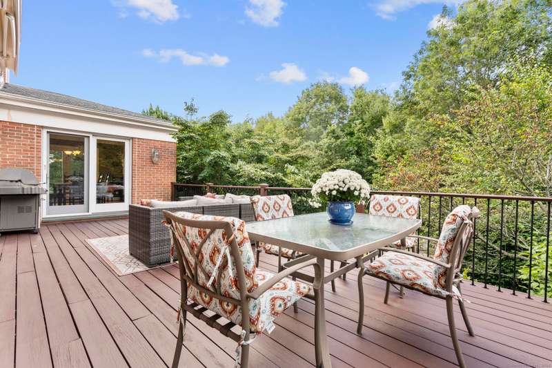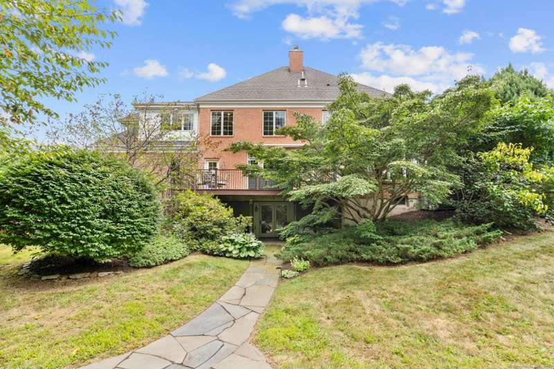 Set on a private cul-de-sac with sweeping views of Talcott Mountain, this iconic Emil Dahlquist-designed brick residence offers architectural pedigree with a versatile 4-bedroom lifestyle. Just minutes from the Farmington Canal Heritage Trail, historic Collinsville, and Unionville/Farmington centers, the home blends tranquility with unbeatable access to recreation, shopping, and dining. With UCONN Health, ESPN, and The Shoppes at Farmington Valley nearby, you're ideally located for both professionals and families. Inside, a grand marble entry opens to soaring ceilings, a two-story living room with dramatic windows, and a gourmet kitchen with professional-grade appliances. The main-level suite with full bath serves as a true 4th bedroom-perfect for guests, multi-generational living, or a private office. Upstairs, the primary suite is joined by two more bedrooms, including an expansive suite over the garage. Outdoors, enjoy a mahogany deck, bluestone firepit, custom two-story shed, and