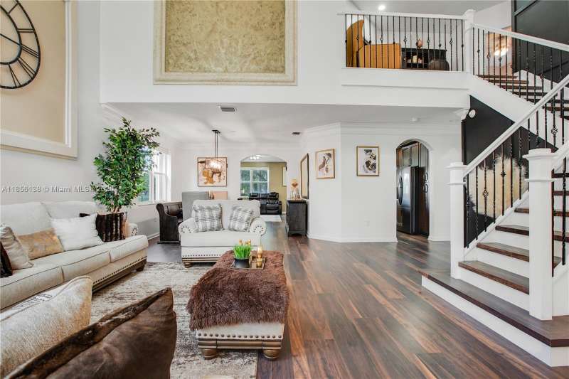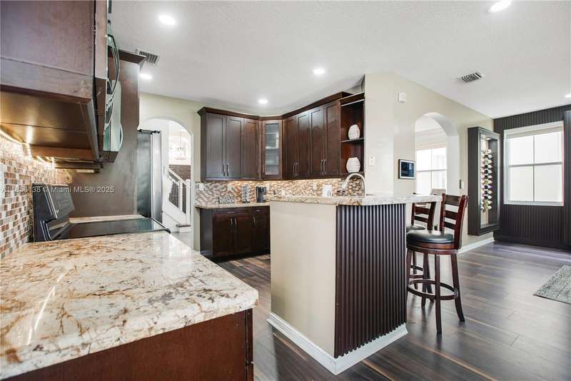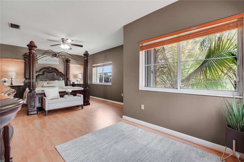 Step into this stunning 5-bedroom, 3-bath home that blends comfort and style. Featuring a newer roof (4 years old), it welcomes you with sleek laminate flooring and an elegant wrought iron stair rail for added sophistication.The kitchen boasts granite countertops, perfect for cooking and entertaining. A brand-new custom wall unit with an electric fireplace, which creates a cozy focal point in the living area. Other upgrades include striking accent walls along the staircase and modern zebra blinds.Enjoy the spacious laundry room with new washer and dryer. Hurricane shutters offer peace of mind, and a partial lake view adds a serene backdrop.Don’t miss your chance to own this well-maintained, move-in ready gem. Schedule your tour today!