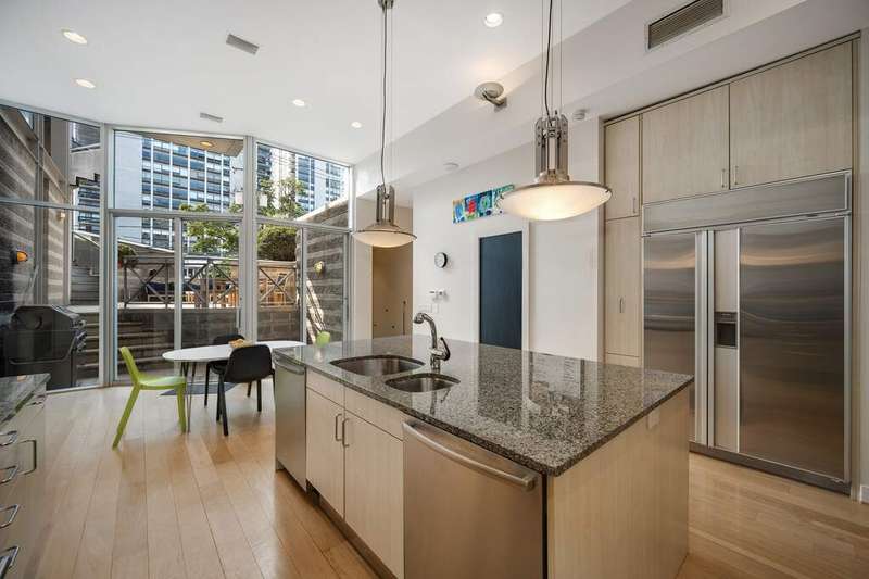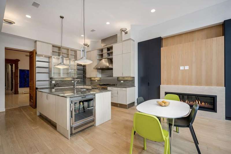 On one of the Gold Coast's most enchanting tree-lined streets, this limestone residence blends historic grace with modern sophistication. Set on an extraordinary 25x149 lot, the home offers soaring ceilings, original millwork, and elegant architectural detail seamlessly paired with contemporary touches. Flooded with natural light throughout, every space has been designed to elevate both daily living and entertaining. The second level features four spacious bedrooms, creating a functional and family-friendly layout. At the heart of the home, the kitchen and family room showcase a modern fireplace with storage and a dramatic wall of glass opening directly to the back terraces, an ideal setting for effortless indoor-outdoor living. Expansive living and dining rooms highlight timeless proportions, while the flexible lower level with guest suite offers comfort and versatility. The top level is a private primary sanctuary, complete with an all-new spa-like bath clad in limestone and accented with gorgeous hemlock wood. A soaking tub positioned beneath a skylight creates a serene focal point, while a sauna and an attached yoga/workout room extend the home's commitment to wellness. Just beyond, a private terrace provides a tranquil retreat in the treetops. Additional highlights include a private elevator, updated baths, a new laundry room conveniently located on the bedroom level, and a rare attached 3.5-car garage. Multiple outdoor terraces enhance the sense of space and connection to the outdoors. Steps from the lakefront, parks, world-class shopping, dining, and the renowned Latin School of Chicago, this Gold Coast residence is more than a home, it's a lifestyle of elegance, wellness, and sophistication in the city's most iconic neighborhood.