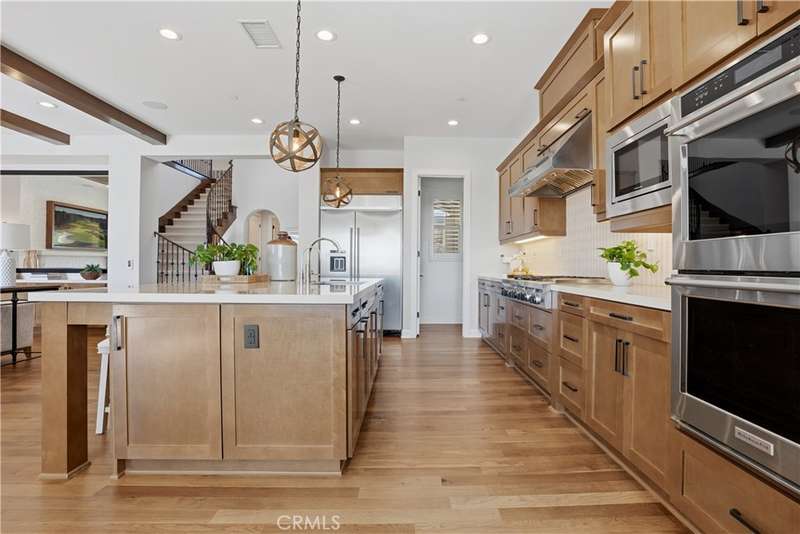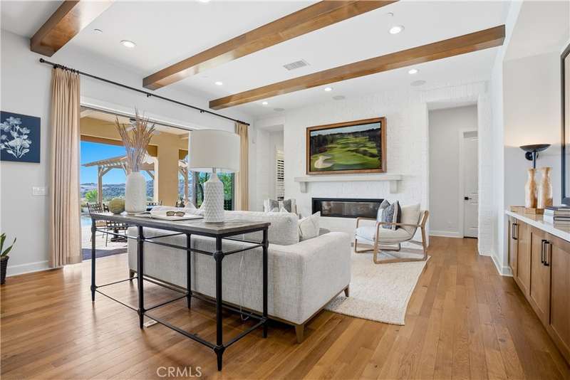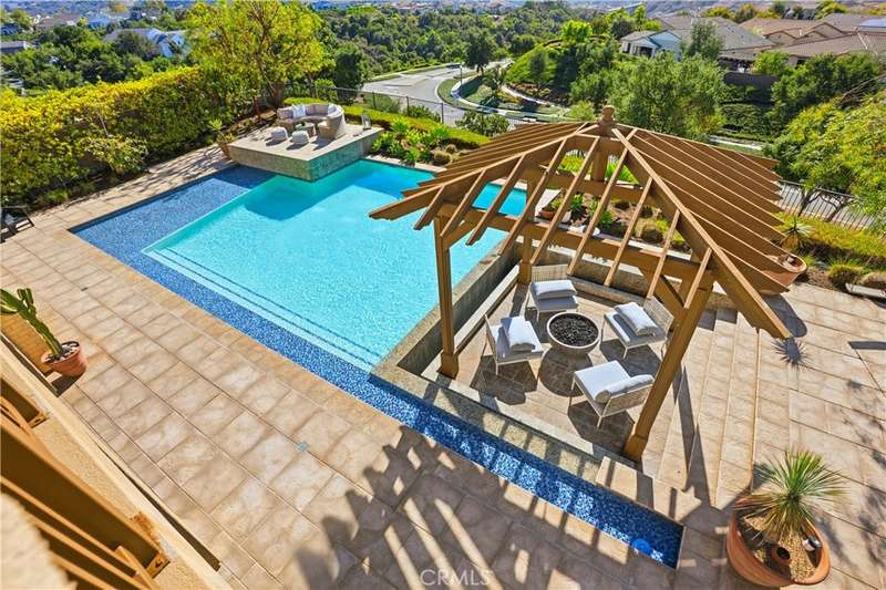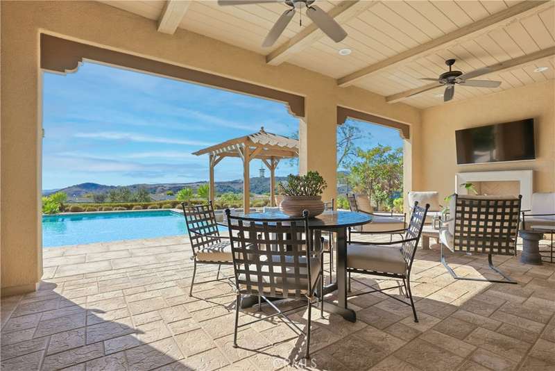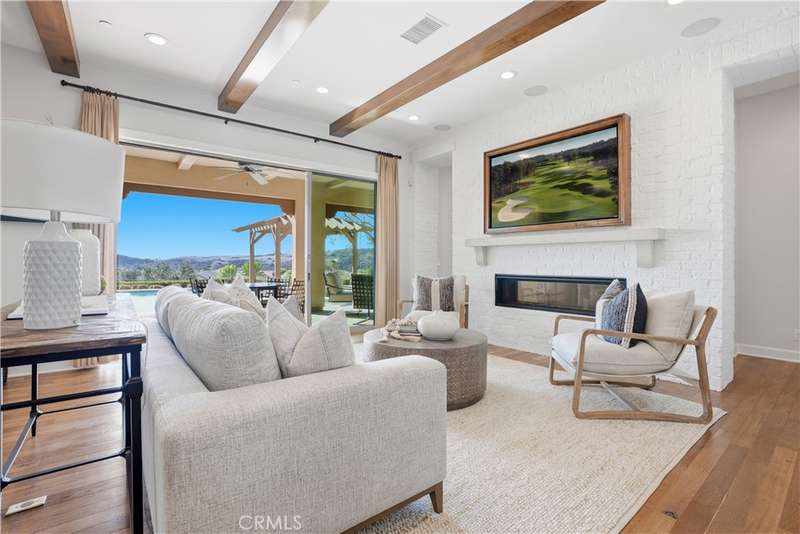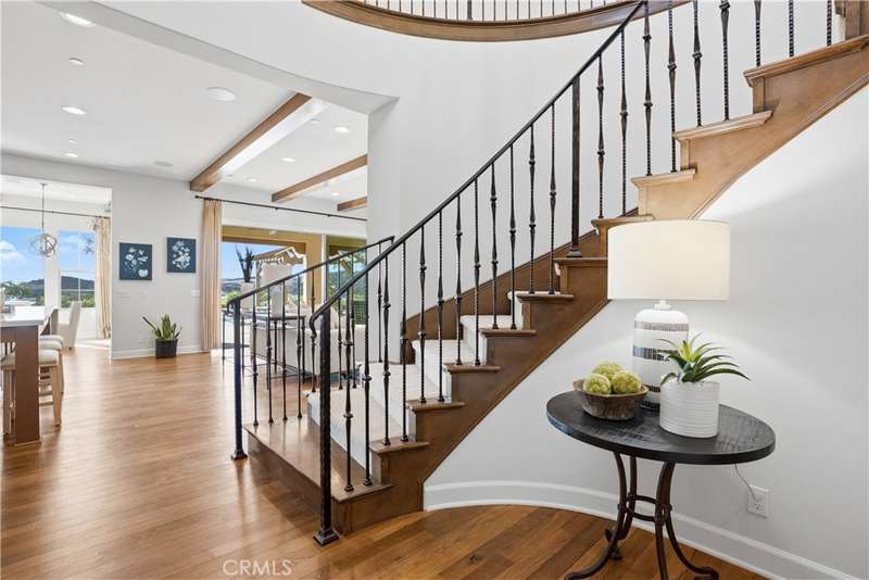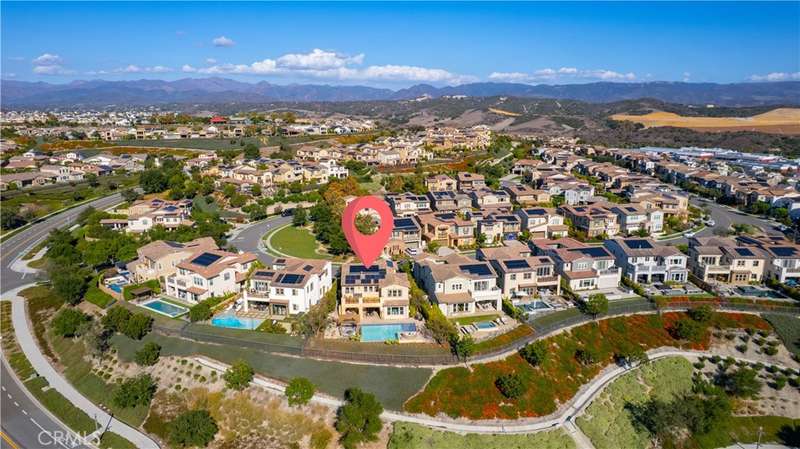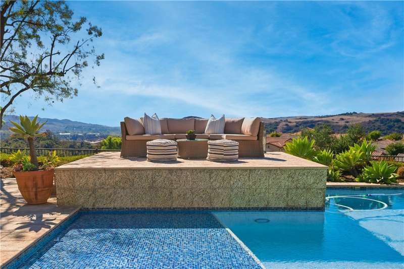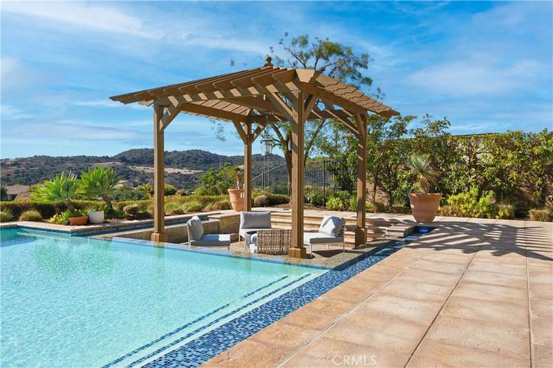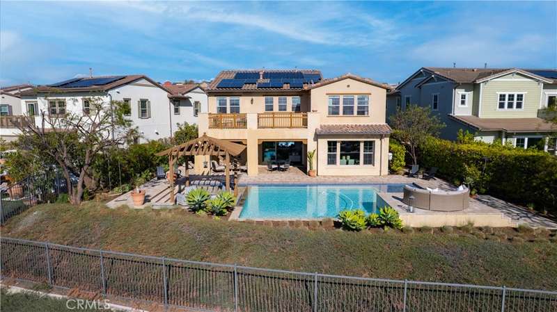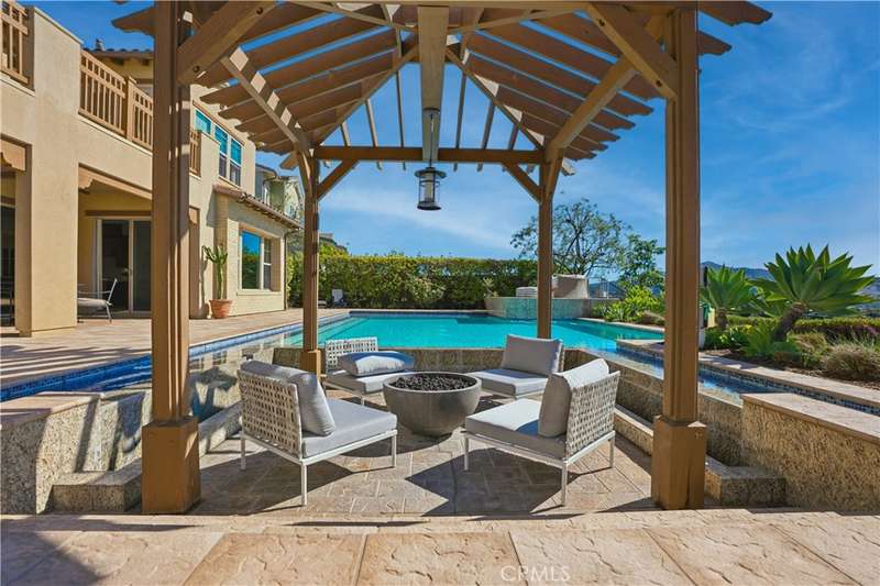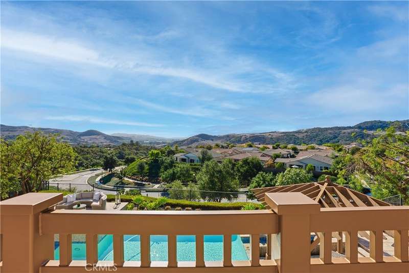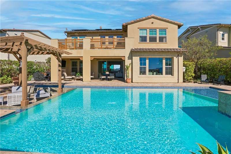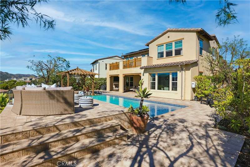 Looking for a pool VIEW home in Aubergine, right here in the award-winning community of Rancho Mission Viejo? This one's a gem, tucked on one of the quietest view streets in RMV, where ocean breezes roll in every afternoon. It's the kind of spot that reminds you why life in RMV feels like a staycation every day. This former MODEL HOME defines resort style living at its finest and is set on an 8,379 sq ft ideal lot. This professionally designed Adobe Ranch style model home showcases high-end craftsmanship and resort-style living in the heart of Rancho Mission Viejo. Featuring 4 bedrooms, 4.5 baths, a private office, and an upstairs loft, this residence blends sophistication with everyday comfort. Step inside to a grand entry with a sweeping iron staircase that sets the tone for elegance throughout. The chef's kitchen impresses with a large kitchen island, walk-in pantry, custom maple shaker cabinetry, stainless steel appliances, upgraded quartz countertops, and a designer tile backsplash. The kitchen flows seamlessly into the spacious great room with fireplace and formal dining area, creating the perfect space for hosting and gathering. Upstairs, each bedroom features its own en-suite bath, while the primary suite offers a true retreat complete with a spa-inspired bath, expansive walk-in closet, and a private balcony overlooking ocean-facing sunsets toward Dana Point. Designed for the ultimate indoor-outdoor lifestyle, stacking glass doors open to an expansive California Room with fireplace and TV, extending to a private backyard oasis featuring a great size pool, sunken fire pit lounge, and panoramic quiet views. Every inch of this Tri Pointe model home is enhanced with designer upgrades, thoughtful details, and curated finishes offering a rare opportunity to own one of Rancho Mission Viejo's most coveted showcase properties. The interior of the home was just painted as well as new carpet upstairs. Exclusive to Rancho Mission Viejo residents are all amenities in the Villages of Sendero, Esencia, Rienda, and future Villages. There are community amenities for all from breath-taking resort-style pools and spas, Esencia school K-8, community farms, fitness centers, guest house, putting green, bocce ball courts, tennis and pickle ball courts, playgrounds, coffee shop, fire pits, an arcade and so much more!