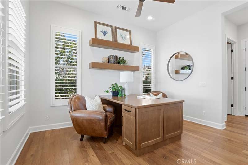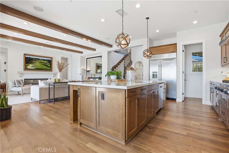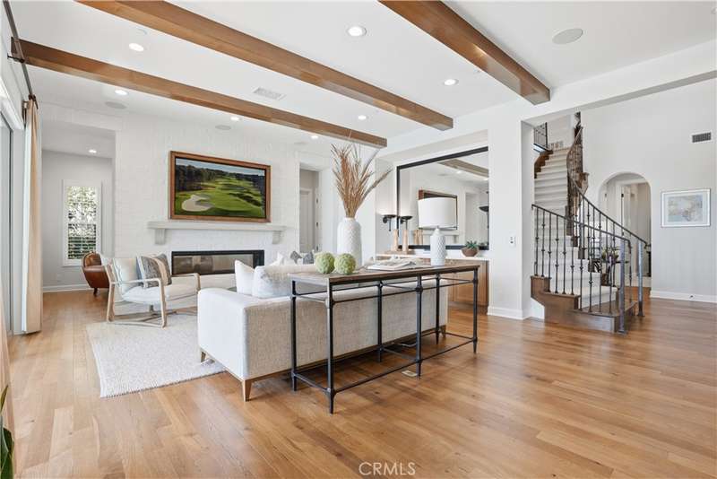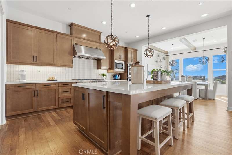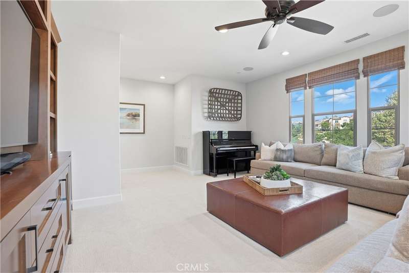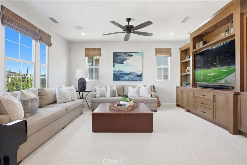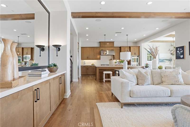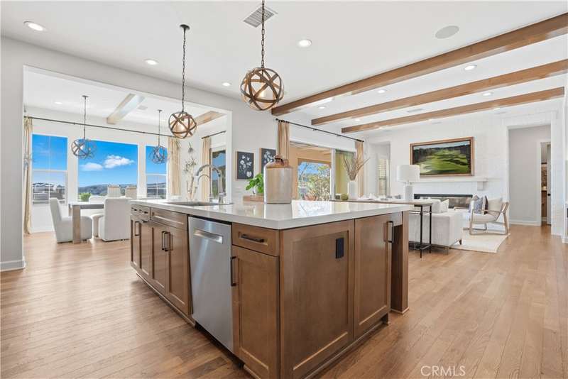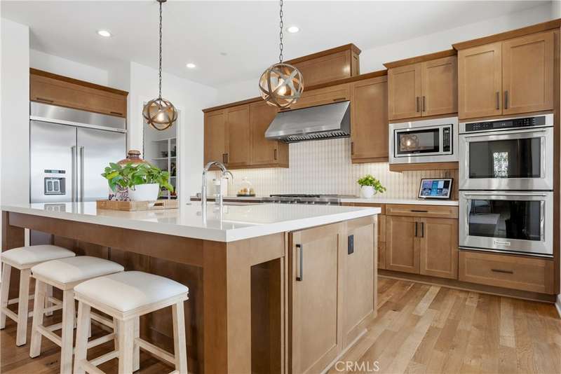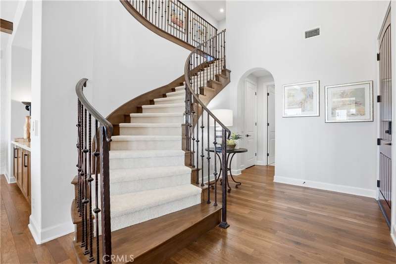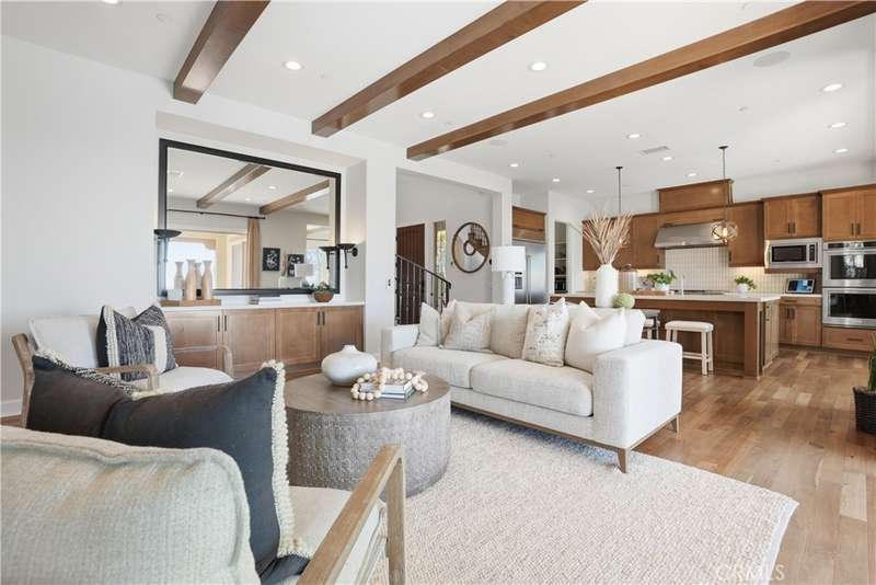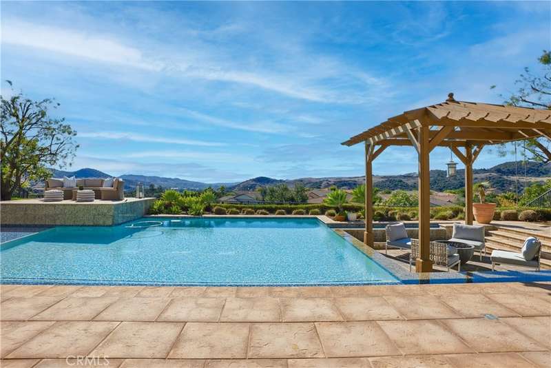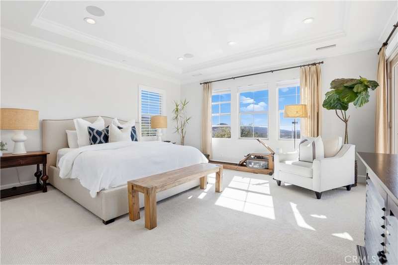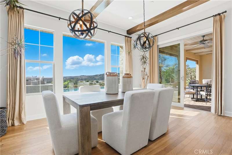 Looking for a pool VIEW home in Aubergine, right here in the award-winning community of Rancho Mission Viejo? This one's a gem, tucked on one of the quietest view streets in RMV, where ocean breezes roll in every afternoon. It's the kind of spot that reminds you why life in RMV feels like a staycation every day. This former MODEL HOME defines resort style living at its finest and is set on an 8,379 sq ft ideal lot. This professionally designed Adobe Ranch style model home showcases high-end craftsmanship and resort-style living in the heart of Rancho Mission Viejo. Featuring 4 bedrooms, 4.5 baths, a private office, and an upstairs loft, this residence blends sophistication with everyday comfort. Step inside to a grand entry with a sweeping iron staircase that sets the tone for elegance throughout. The chef's kitchen impresses with a large kitchen island, walk-in pantry, custom maple shaker cabinetry, stainless steel appliances, upgraded quartz countertops, and a designer tile backsplash. The kitchen flows seamlessly into the spacious great room with fireplace and formal dining area, creating the perfect space for hosting and gathering. Upstairs, each bedroom features its own en-suite bath, while the primary suite offers a true retreat complete with a spa-inspired bath, expansive walk-in closet, and a private balcony overlooking ocean-facing sunsets toward Dana Point. Designed for the ultimate indoor-outdoor lifestyle, stacking glass doors open to an expansive California Room with fireplace and TV, extending to a private backyard oasis featuring a great size pool, sunken fire pit lounge, and panoramic quiet views. Every inch of this Tri Pointe model home is enhanced with designer upgrades, thoughtful details, and curated finishes offering a rare opportunity to own one of Rancho Mission Viejo's most coveted showcase properties. The interior of the home was just painted as well as new carpet upstairs. Exclusive to Rancho Mission Viejo residents are all amenities in the Villages of Sendero, Esencia, Rienda, and future Villages. There are community amenities for all from breath-taking resort-style pools and spas, Esencia school K-8, community farms, fitness centers, guest house, putting green, bocce ball courts, tennis and pickle ball courts, playgrounds, coffee shop, fire pits, an arcade and so much more!