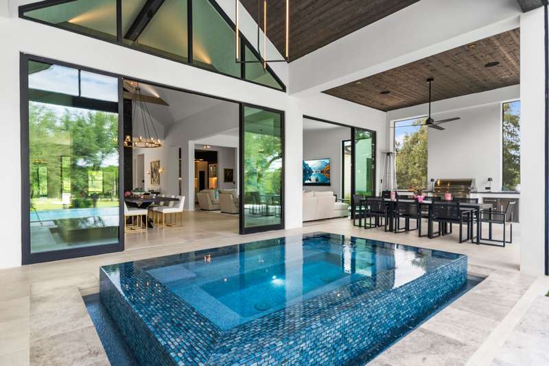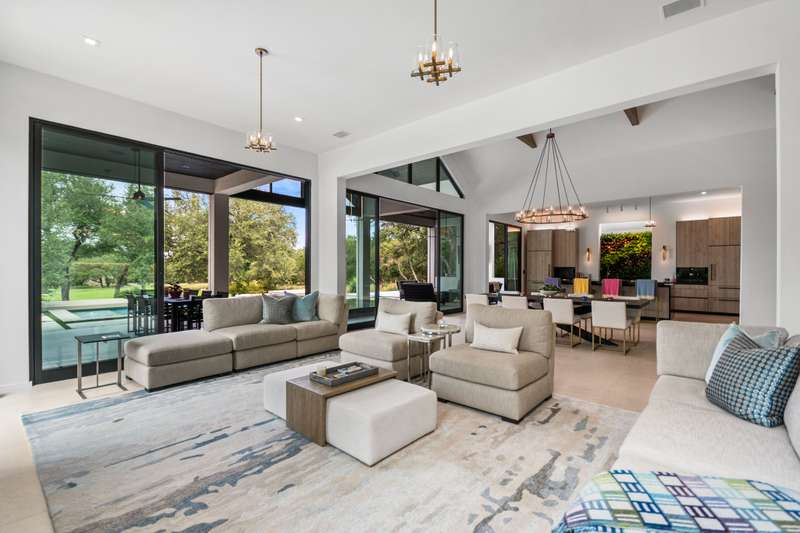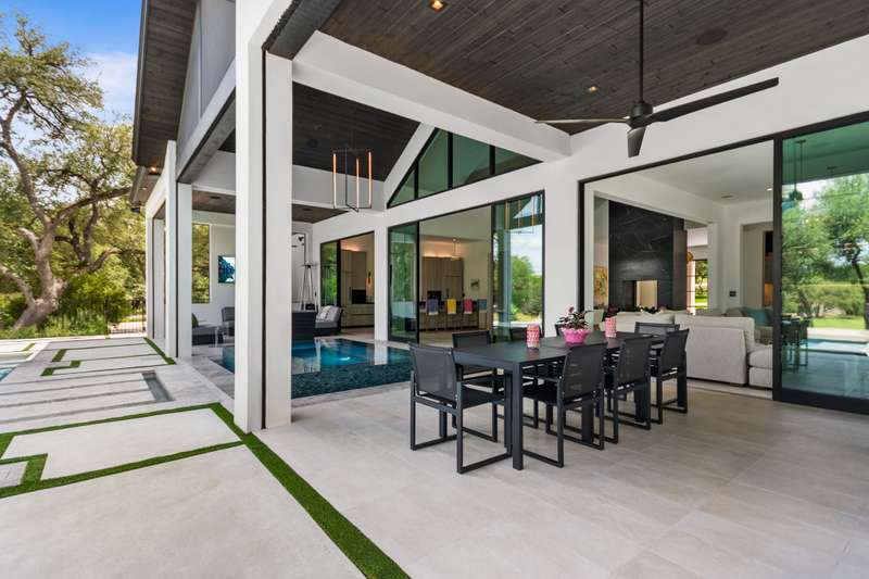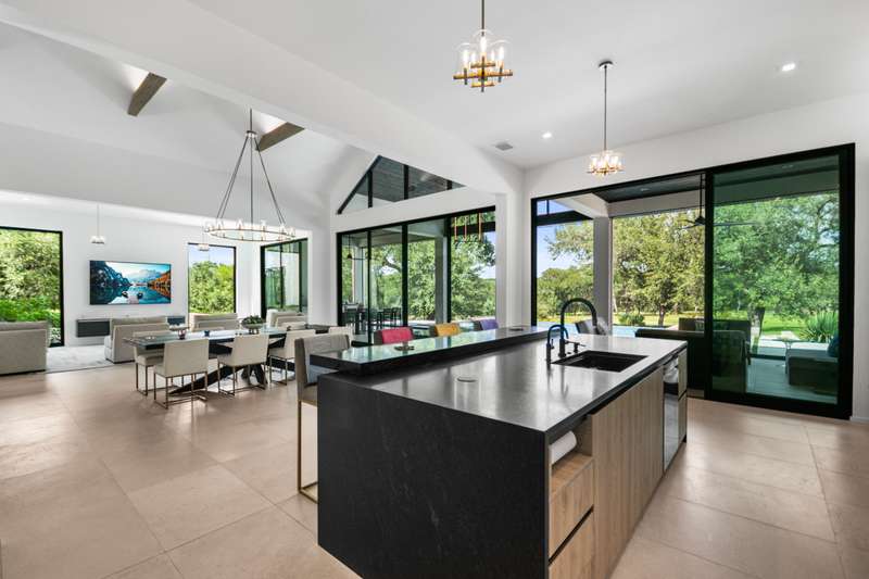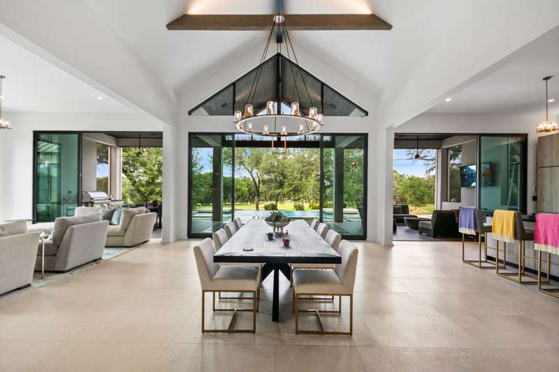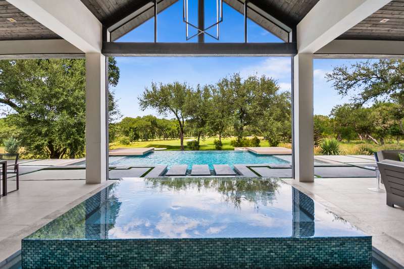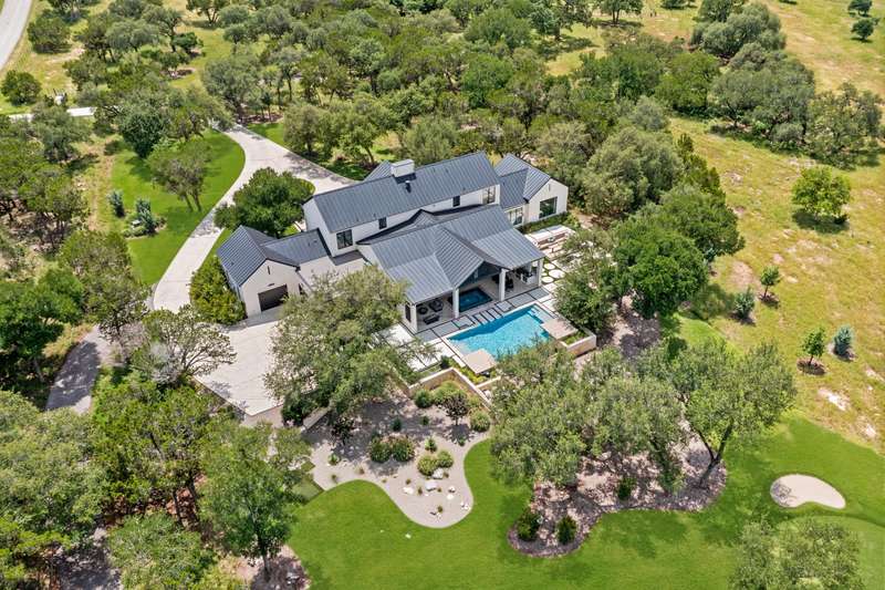 Welcome to this luxury estate featuring a transitional style home with an additional guest home and an executive par 3 golf course! With no neighboring houses in sight, this 9.6 acre gated property within Cordillera Ranch borders a river on one side and a nature park on the other side making this a unique offering in the Texas Hill Country. Both homes blend traditional architecture with striking designer finishes, smart home automation and modern comforts. Completed in 2023, both residences feature new biophilic design elements, open living areas with spacious rooms for gatherings of family & friends, vaulted ceilings with hand-hewn oak beams and expansive windows for long views of nature. 10-foot sliding glass doors that stack create an even more open and seamless indoor/outdoor living experience. Quality craftsmanship is evident throughout including Italian cabinetry by Snaidero, custom millwork, Porcelanosa marble tiled bathrooms, unique glass stair railing, floating cabinets, custom steel, wood & glass doors, floor-to-ceiling marble slab fireplace, large format limestone floors & stairs and a unique interior Living Wall featuring a variety of 170 plants with integrated irrigation for maintenance free care. Enjoy resort-style amenities in your own back yard including golf, kayaking, fishing & tubing in the river and swimming in a heated negative edge pool & spa with floating decks & sun ledges. There's even an indoor Hemlock wood sauna room! This expansive outdoor oasis provides hours of entertainment and relaxation for adults and children of all ages. The outdoor living room, cooking/dining room and negative edge spa are roof covered with outdoor heaters for year round enjoyment and protection from rain. With the touch of a button, all the electronic screens lower to enclose this outdoor patio. What fun it is to hang out in the oversized spa that seats so many friends while watching your favorite sporting event on the nearby TV! The side patio with a custom circle walkway features a unique sunken lounge with tiered built-in seating thats perfect for parties. State-of-the-art audio/visual systems, surround sound and monitored security components are strategically placed throughout both homes and patios which include indoor and outdoor TVs, hidden speakers and security cameras. Both houses offer chef's kitchens with top-of-the line appliances, stone counters, classic inset cabinetry with ample storage. Additional highlights include a coffee bar and a wine bar with quartzite counters and sink, lacquered cabinetry, 2 wine tower refrigerators, large walk-in pantry and a puppy shower in the mudroom. Artfully placed light fixtures adorn the walls and ceilings along with LeGrand designer electric components with unique shapes and metallic finishes. Combined the homes offer 6 spacious bedrooms with ensuite bathrooms, large curbless walk-in showers, 2 luxurious tubs, ceiling fans and automated curtains. The game room features a wet bar and under cabinet fridge/freezer. Enhanced by tree lighting, the professional landscaping is composed of all drought-tolerant native trees, plantings, grasses and realistic looking artificial turf for ease of maintenance. To ensure ample space for vehicles and storage, there are 7+ garage spaces. The full house generator ensures uninterrupted comfort. Such a gently used property as the homeowners have spent little time there so you receive the benefit of a nearly new estate. Master Full Golf Membership is available for purchase. - 11/9/2025 8:16:40 PM
