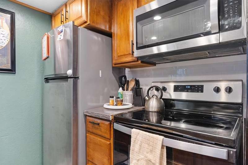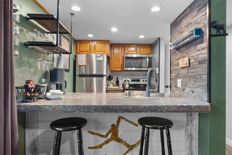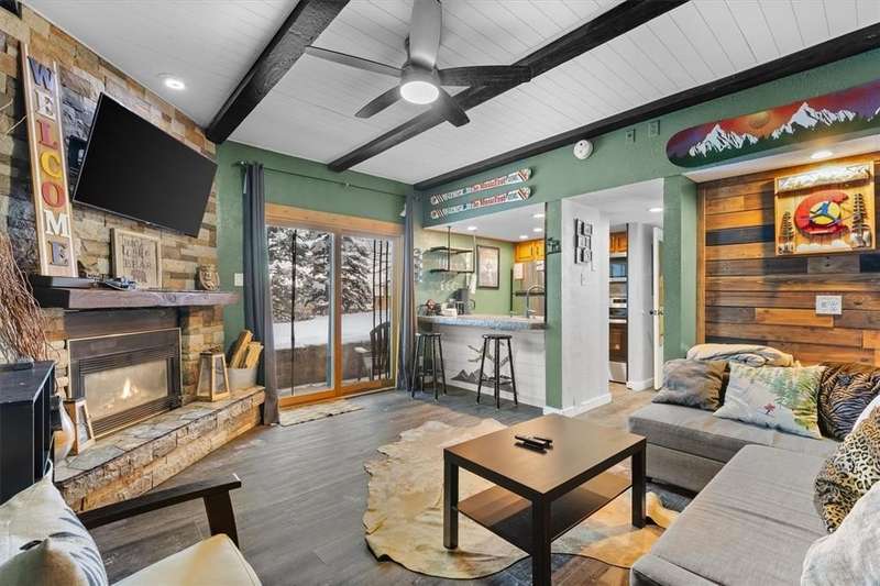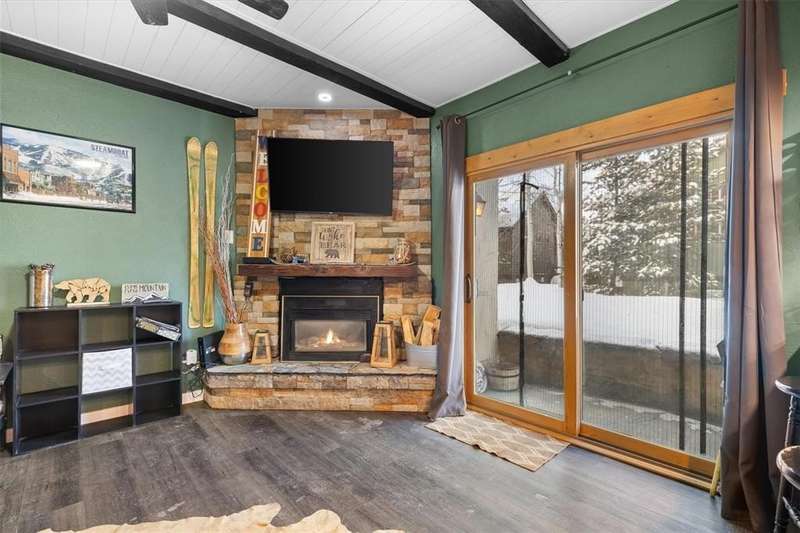 This delightful one-bedroom condominium offers a surprisingly spacious feeling from its thoughtfully designed layout, making it far more functional than the average home. The living area features a cozy gas fireplace, a versatile nook perfect for an entertainment center or desk workspace, hide-a-bed sofa for max 4 sleeping capacity, and access to a private ground-floor patio—ideal for summer entertaining and handy outdoor access for pets. The full-service kitchen provides ample cabinet space and boasts a new epoxy countertop that doubles as a dining table, adding both style and practicality. The bedroom comfortably accommodates a king-size bed and includes a private owner’s closet for added convenience. Newer finishes throughout the home include durable vinyl flooring in the living area and elegant marble flooring in the renovated full bathroom. Step outside to enjoy the condominium’s exceptional amenities, including a year-round heated pool, two hot tubs, a sand volleyball court, and an owners’ lounge complete with a game room, fitness center, and laundry facilities. Conveniently located just blocks from Steamboat’s world-renowned slopes, this property offers multiple transportation options, including a short walk or the free SST shuttle, which also provides easy access to downtown. With its blend of charm, practicality, and premier location, this property is perfectly suited as a primary residence, vacation retreat, or income-generating rental. Seller is a licensed Colorado real estate broker.