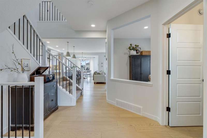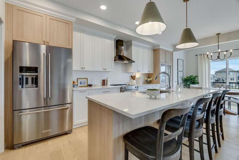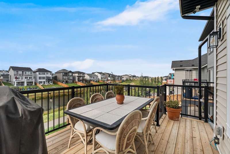 Welcome to a home where calm meets comfort in the heart of Crossfield. Built by McKee Homes, this thoughtfully designed walkout backs directly onto green space, offering both a private retreat and a connection to nature. With just over 2,300 square feet, every detail of this residence has been crafted for modern family living. The main floor opens with warmth—an inviting office for those work-from-home days, and a kitchen that blends timeless style with everyday function. Two-tone cabinetry, high-end stone countertops, premium appliances, and a built-in walkthrough pantry with space for a wine fridge make this the true centerpiece of the home. Upstairs, you’ll find three generously sized bedrooms plus a bonus living area, perfect for movie nights, playtime, or simply unwinding. The primary suite feels like a private retreat, complete with spa-inspired finishes and peaceful views that remind you why small-town living is so extraordinary. This home is as practical as it is beautiful, featuring triple-pane windows, central air conditioning, fresh paint throughout, durable hardwood flooring, and so much more. Every corner reflects thoughtful upgrades designed for lasting comfort and style. Step outside and enjoy the walkout level, opening directly to green space—a rare feature that makes your yard feel even more expansive. Whether you’re hosting friends, watching kids play, or simply savoring quiet evenings, this home was built to elevate every moment. Crossfield offers the serenity of small-town charm, paired with the convenience of quick access to the city. Here, life moves just a little slower, and home feels a whole lot warmer. Crossfield Living, quietly Extraordinary.