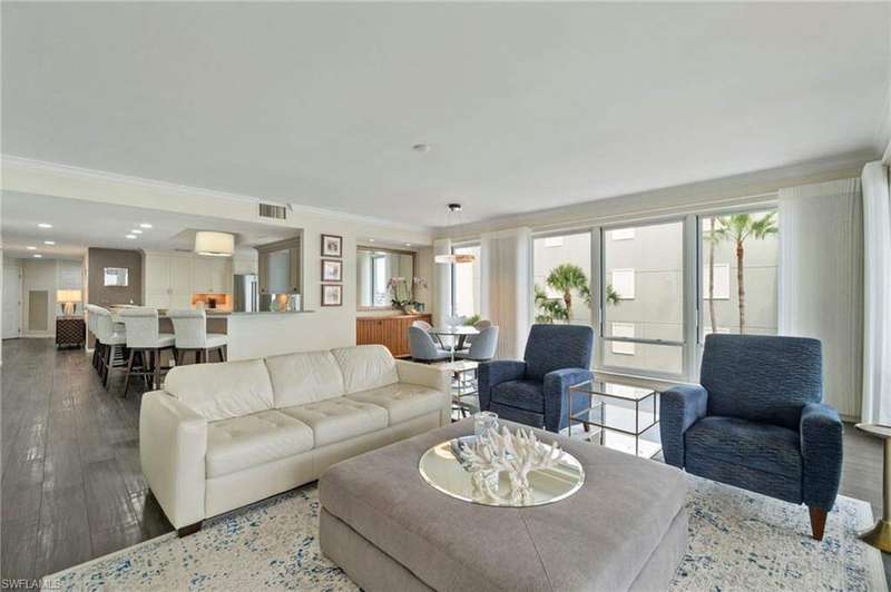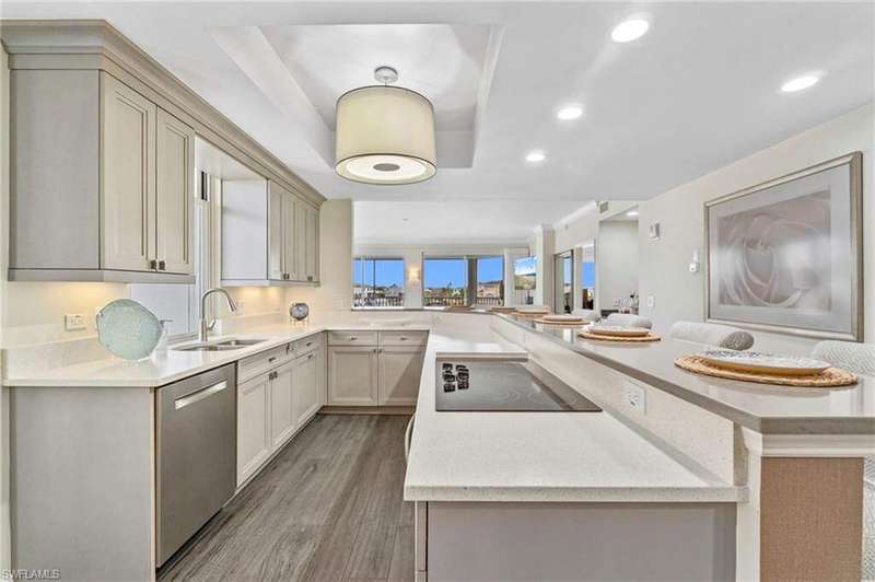 Experience luxury coastal living in this rarely available Le Dauphin end unit condo, offering sweeping panoramic views of Vanderbilt Bay with deeded beach access. The unit also has access to a private beach club. Beautifully renovated and meticulously maintained, this spacious 3-bedroom, 2.5-bathroom residence spans 2,245 square feet and is filled with natural light, thanks to floor-to-ceiling windows and an open-concept layout designed to capture the beauty of the surrounding landscape. This residence features three private outdoor terraces, each offering distinctly different views - from breathtaking sunrises over the bay to peaceful evenings by the Gulf. The gourmet kitchen is a showpiece, equipped with stainless steel appliances, quartz countertops, designer finishes, and bar-top seating for six, perfect for both casual dining and entertaining. Elegant ceramic tile runs throughout the main living areas, while the primary bedroom is a tranquil retreat with plush carpeting, a large walk-in closet, and a spacious ensuite bathroom featuring a frameless glass shower and dual vanities. Le Dauphin is a boutique waterfront community offering exceptional amenities, including a private heated pool overlooking the bay, tennis courts, boat slips, an outdoor kitchen and dining area, and a fully renovated lobby. Residents also enjoy secure indoor garage parking and additional air-conditioned storage space. For peace of mind, the building has received a satisfactory structural milestone inspection, certified through the year 2034. Located adjacent to the prestigious LaPlaya Beach and Golf Resort, this home is within walking distance to upscale waterfront dining at Baleen and The Turtle Club, and just minutes from the shops, restaurants, and nightlife of Mercato. This is a rare opportunity to own a luxurious coastal residence in one of North Naples' most desirable and prestigious neighborhoods - ideal as a full-time home or a refined seasonal getaway.