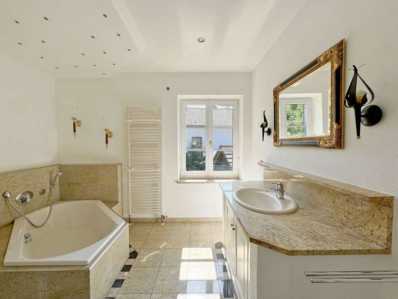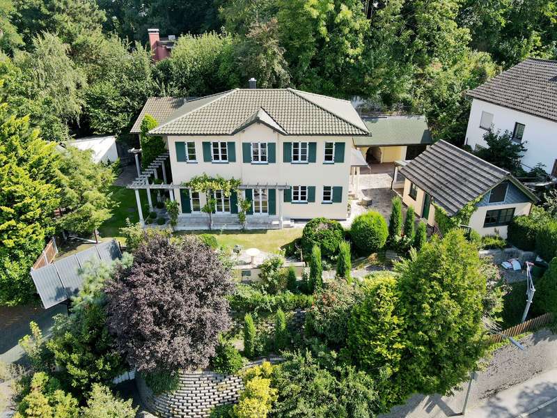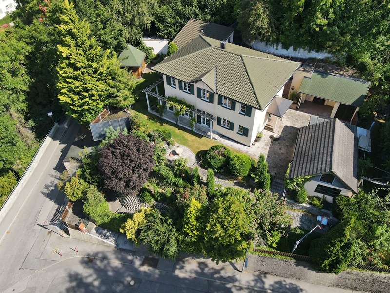 This charming and imposing small villa, situated in one of the most sought-after locations in Landshut, impresses with its unique character and special charisma. With a living space of 177 m² on a generous plot of 1,046 m², this exceptional property offers an exquisite living ambience characterized by numerous loving details and first-class construction quality. The house was built in 2002 and elegantly combines tradition and timelessness, which are expressed both in the architecture and in the high-quality materials. Thanks to its central location, the picturesque town center of Landshut is within easy walking distance, which makes living here particularly attractive. At the same time, you can enjoy impressive views of the city's landmarks from the villa, which further emphasizes the exclusive location. The lovingly landscaped and well-planned garden invites you to relax and linger. It offers a harmonious environment with an idyllic garden house and a small chapel, which give the property a special touch. Here, modern quality of life meets a touch of tradition and contemplation. Inside the villa, modern gas heating and a solar system for hot water ensure maximum living comfort. The stylish fireplace lends the living area a cozy atmosphere and invites you to spend cozy evenings. A wine cellar offers ample space for fine wines, while an additional room can be used as a fitness room or office. The offer is rounded off by a loading crane, which provides additional flexibility. This property is a special gem that meets the highest living standards and impresses with its sophisticated design and harmonious combination of tradition and modernity. Anyone looking for a unique retreat with exclusive flair will find a home here that leaves nothing to be desired