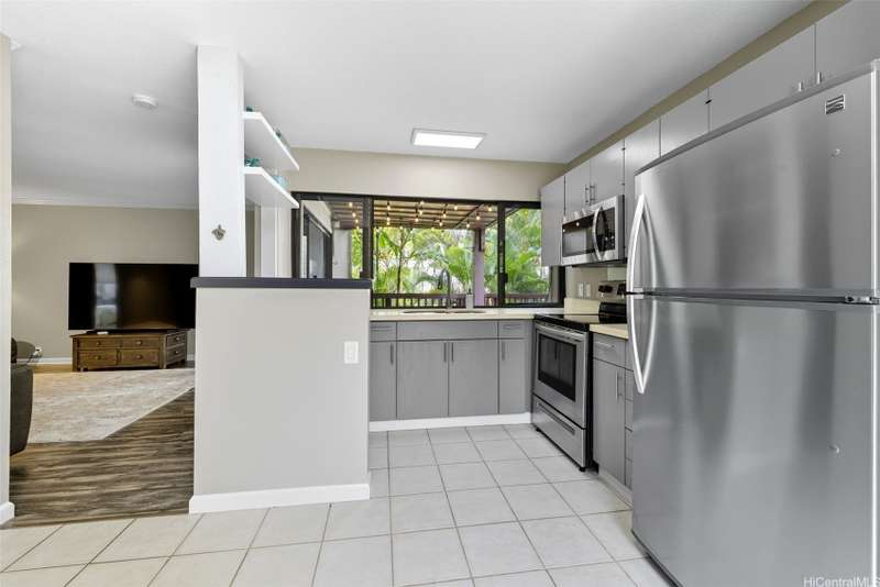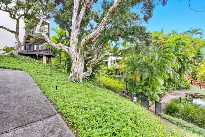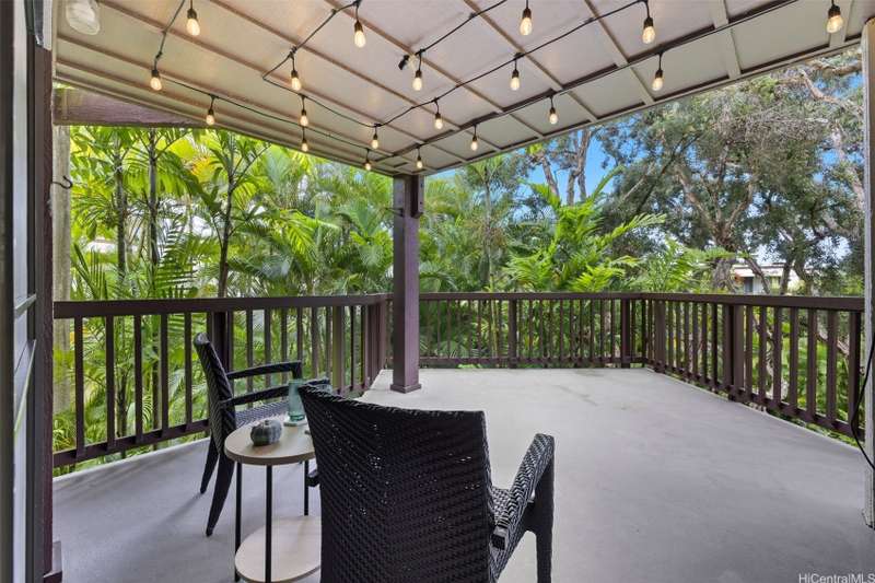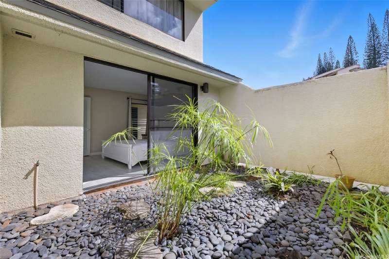 Experience tranquil island living in this 1-bedroom townhome with a full-sized den, perfect as a second bedroom or office. Enjoy a spacious covered lanai overlooking lush tropical landscaping, where the sound of a koi pond creates a peaceful retreat. A second private lanai offers extra storage or the perfect space for a garden. Inside, the open floor plan is bright and functional, with additional square footage in the kitchen that provides room for more storage, prep space, or even a cozy breakfast nook. As part of the Poha Kea Point community, residents enjoy 3 swimming pools, 3 hot tubs, tennis & pickleball courts, a red-light sauna, BBQ areas, guest parking, 24-hour security, and beautifully landscaped grounds. There's even talk of a landscape architect enhancing the already lush entry gardens. Conveniently located near H-3, Likelike, and Pali Highways, as well as Windward Mall, Kailua Town, and He'eia Boat Harbor, this home offers the perfect balance of flexibility, serenity, and resort-style living in the heart of Windward Oahu.