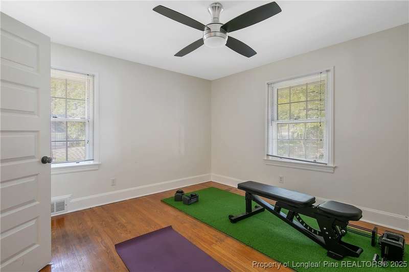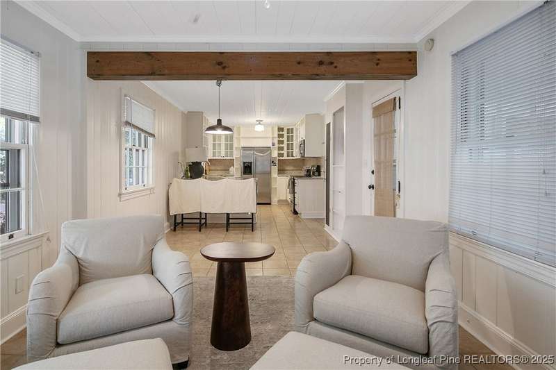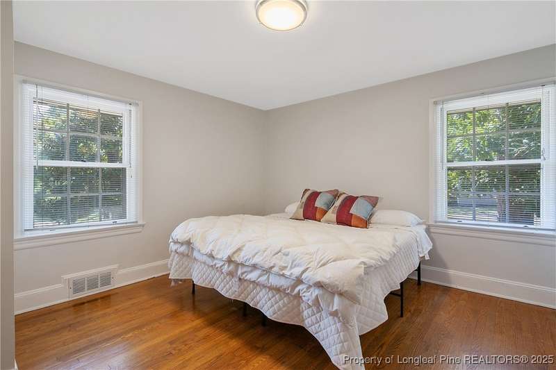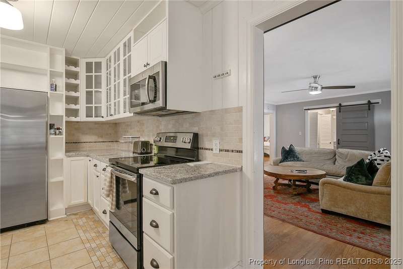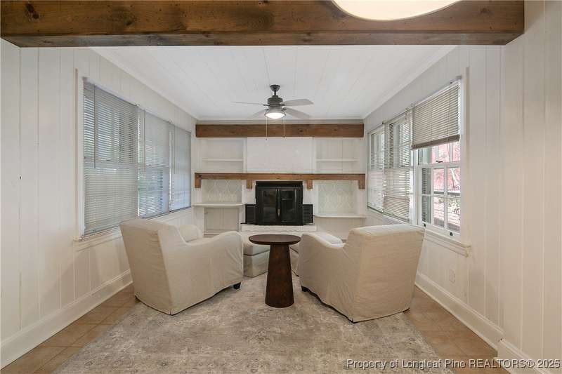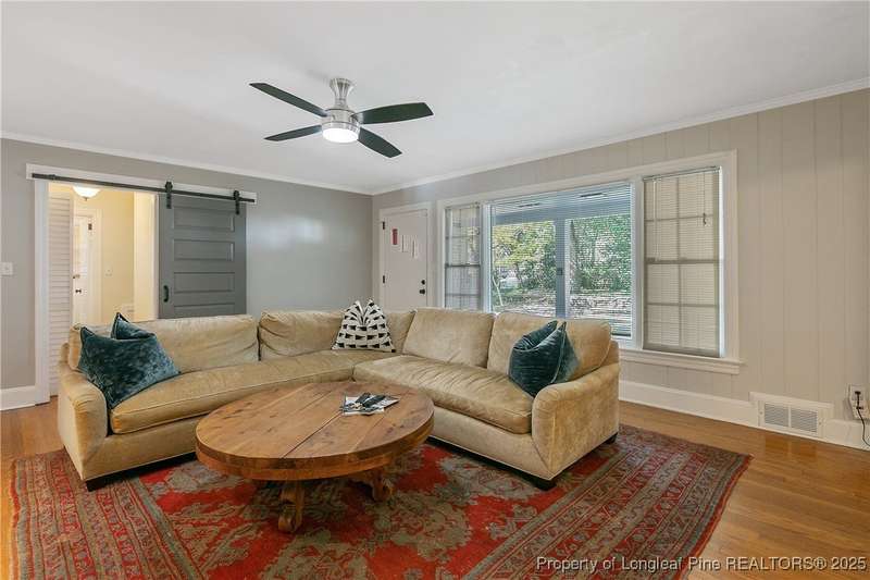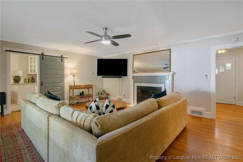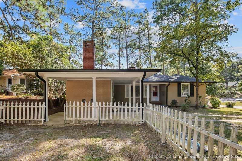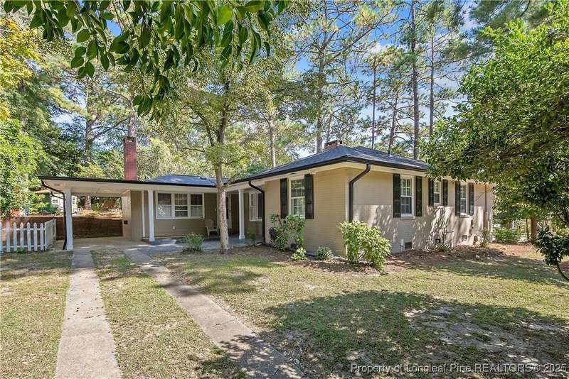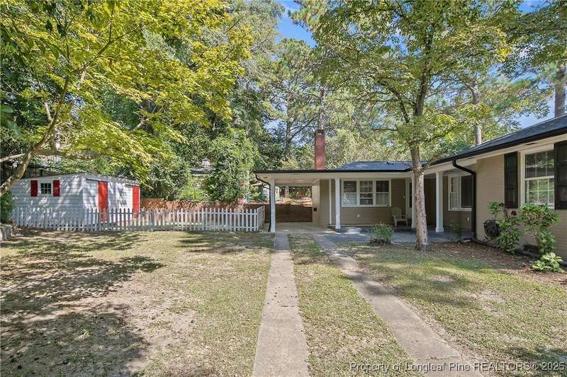 Charming Updated Haymount Home! Beautifully updated 3BR/2BA located within walking distance to shopping, dining, and entertainment. BRAND NEW ROOF AND GUTTERS! Features include hardwood floors, wood-burning fireplace, large picture windows, and a spacious kitchen with granite countertops and stainless steel appliances (including fridge). Flex room/den with wood-burning insert, built-ins, and wood beam accents. Primary suite with built-in bench, two spacious guest rooms, and full guest bath. Laundry area with washer/dryer. Situated on a .32-acre corner lot with mature landscaping, fenced yard, storage shed, carport, and wraparound back porch. A must-see!