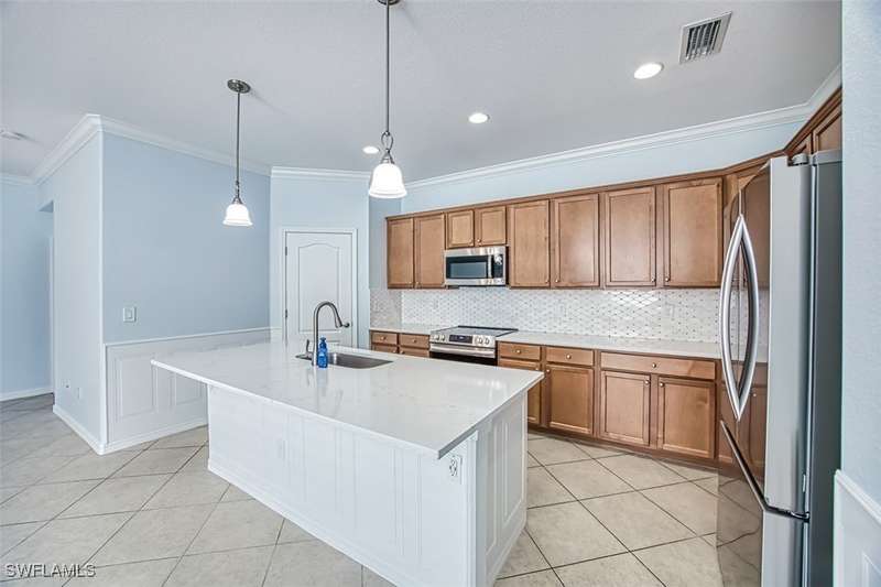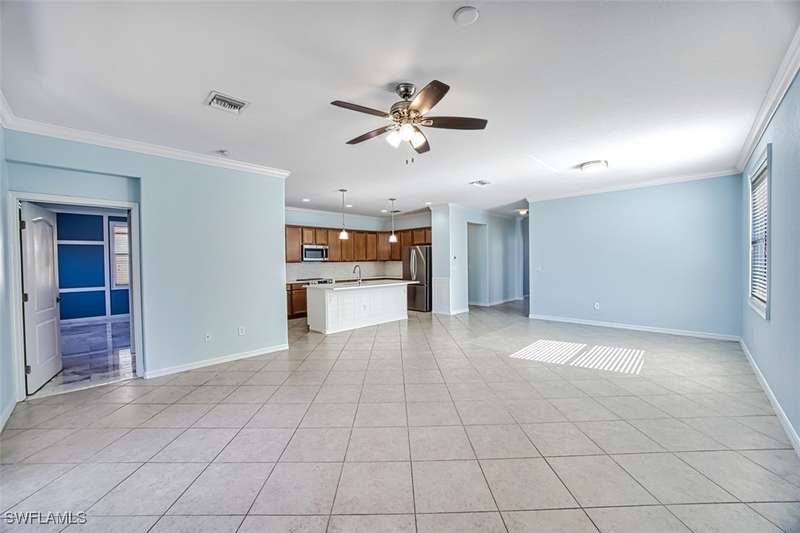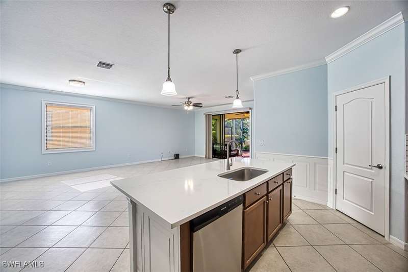 Experience the best of Florida living in this beautiful 3-bedroom + den, 3-bathroom (featuring a master suite and one en-suite) home with a 2-car garage and 1,972 sq. ft. of air-conditioned space. The floor plan offers the ultimate in privacy for both owner's suite and guests. Nestled in the highly sought-after Daniels Preserve community within Gateway, this home, built in 2015, offers breathtaking water views and stunning sunsets from the extended shaded lanai. The master bathroom has been thoughtfully reconfigured for wheelchair accessibility, blending functionality with modern style to ensure comfort and ease. Gateway is a high and dry area, with no flood insurance required and a history of never being in a voluntary evacuation zone. Plus, enjoy the advantage of county-only taxes! Daniels Preserve residents benefit from low HOA fees and access to a range of fantastic amenities, including a pool, spa, dog park, and soccer fields. Golf enthusiasts can take advantage of the optional Gateway Golf and Country Club, offering a world-class experience. Conveniently located, this home is just a short drive to RSW Airport, Fenway South, CenturyLink Field, Gulf Coast Town Center, and the new Publix. Don't miss the opportunity to own this stunning home that combines modern style, exceptional value, and a prime location. Schedule your showing today!