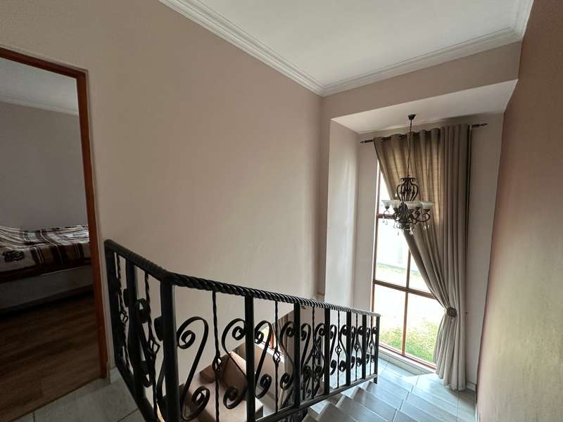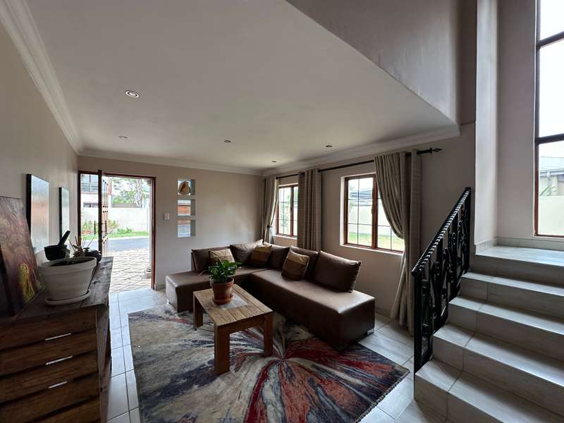 This free standing home is situated within the secure Summer Creek Estate - featuring an open-plan living and dining area connected to a modern kitchen with a gas hob. A guest toilet is conveniently situated under the stairs making it private for guests or family. Upstairs is where you will find 3 bedrooms, including a main bedroom with an en-suite shower, plus a second full bathroom. Downstairs, there’s a versatile 4th bedroom with its own en-suite bathroom and a cozy lounge or study space — ideal for use as a private flatlet or guest suite. The property also includes a spacious patio with a built-in braai, a generously sized garden, a water tank, and solar power for added efficiency. Parking is ample, with a double garage and an additional carport. Close to amenities and easy access to Alberton CBD and the Netcare hospital.