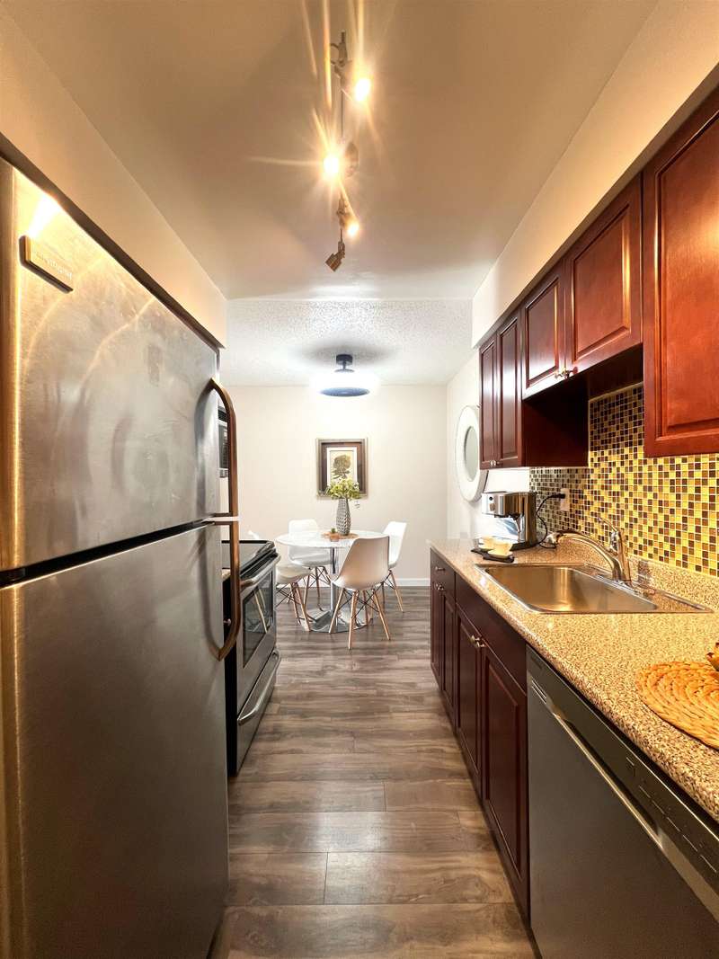 Welcome to Cartier House, a well-maintained complex situated on quite,tree-lined street in Vancouver west side Marpole neighborhood. This SOUTH-FACING one bedroom unit features spacious and functional layout, generous sized bedroom, laminate flooring, S/S appliances and entire fresh paint. HUGE fenced sunny back yard offers perfect private space for kids, pets, or entertaining. One secured parking stall and storage locker included. Central location close to Park,Transit, Restaurants, Stores, Banks and all other amenities on Granville street. Easy access to YVR, Richmond, Downtown and UBC. Excellent school catchments: David Lloyd George Elementary, Sir Winston Churchill Secondary (IB/French Immersion). St Anthony of Padua Catholic Elementary private school just steps away.MUST SEE!