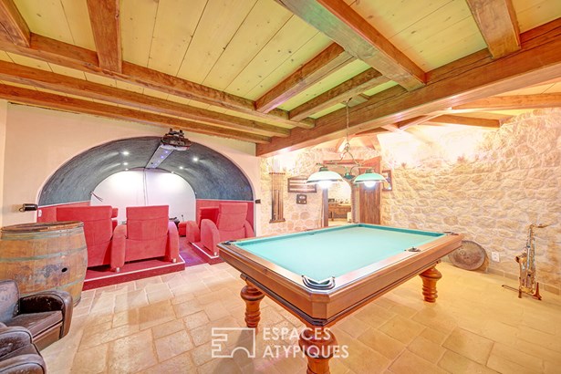 Far from prying eyes and immersed in absolute serenity, this property flourishes in harmony with its enchanting park, its vast terraces and its wellness area: an indoor swimming pool, a jacuzzi and a solarium offering direct access to the generous nature which surrounds it. Depending on the season, discover the two stables with horses, the twelve beehives buzzing with life, the vegetable garden and the two greenhouses that adorn this area with an unsuspected richness.
