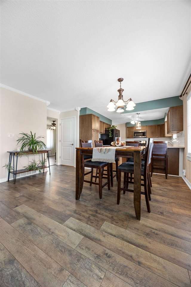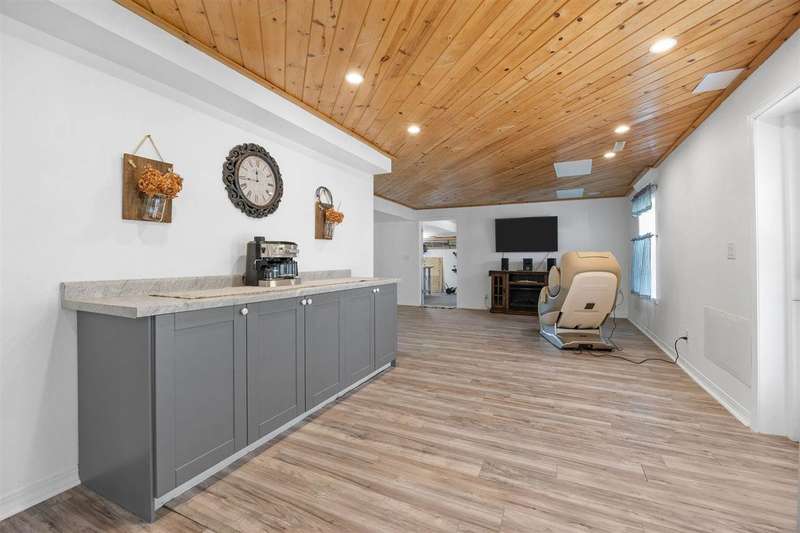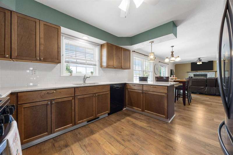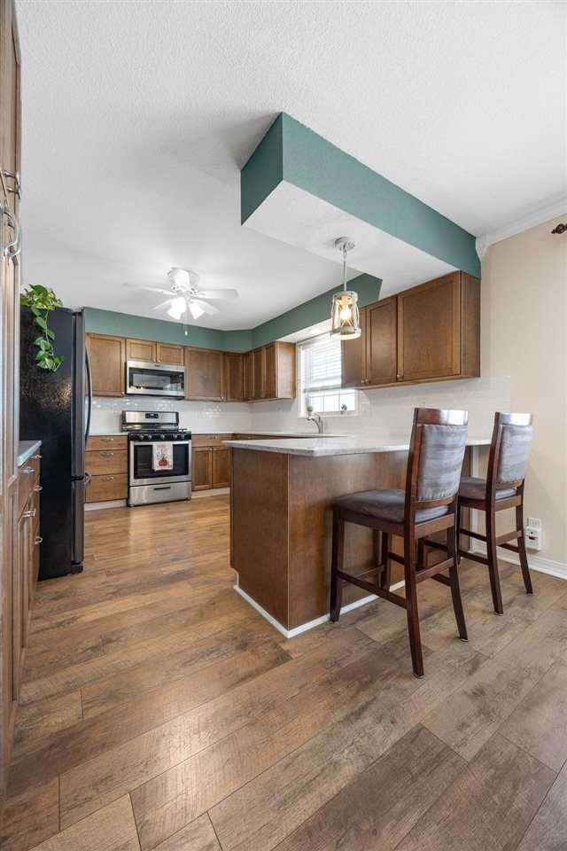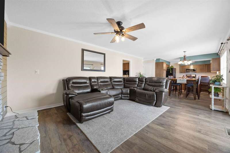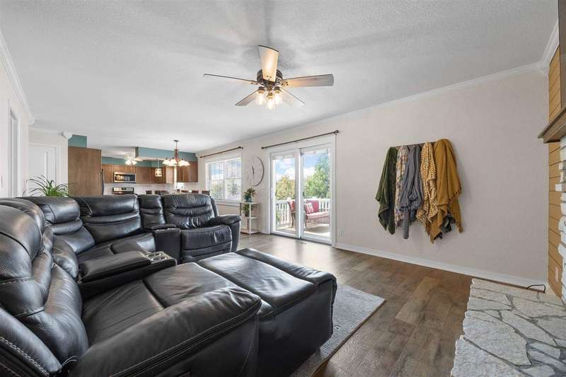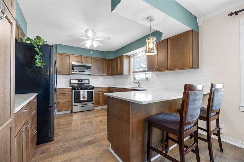 Welcome to this inviting 3-bedroom home where comfort meets style. The main level flows seamlessly into the beautifully remodeled kitchen, showcasing sleek quartz countertops and modern finishes. Step outside to the spacious backyard deck, perfect for relaxing evenings or entertaining with friends. Downstairs, the walk-out basement expands your living space with a large rec room, a full bathroom featuring a relaxing soaker tub, and a dedicated workshop area for projects or hobbies. The home is wrapped in durable engineered wood lap siding, combining timeless appeal with easy maintenance. A home designed with both everyday living and special moments in mind—move in and enjoy!