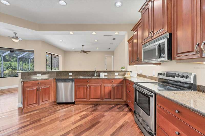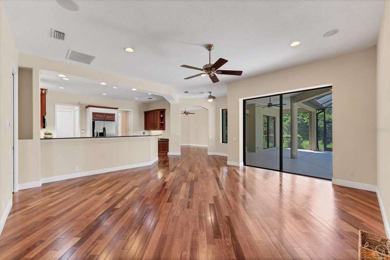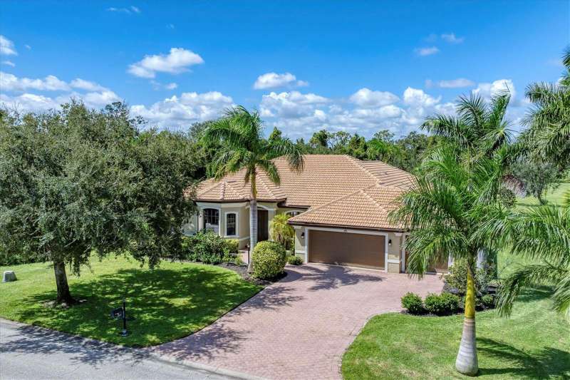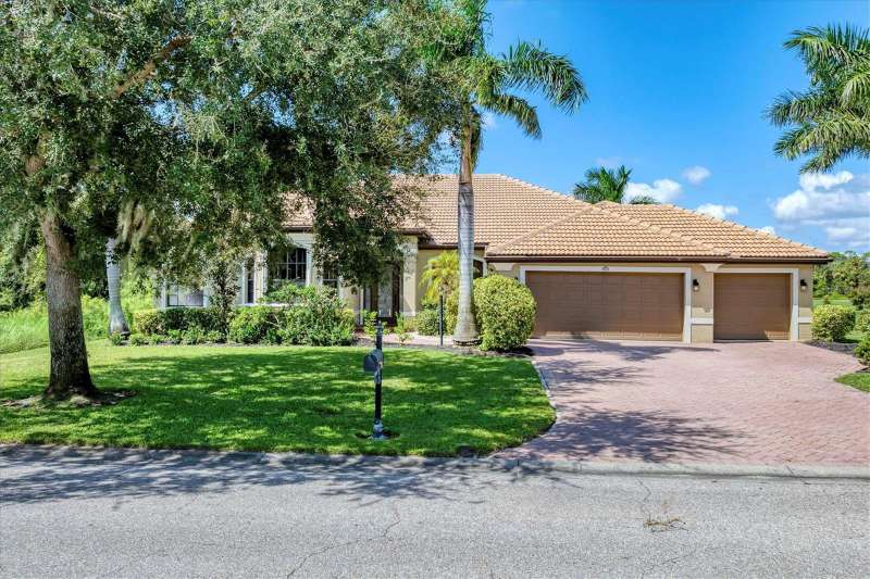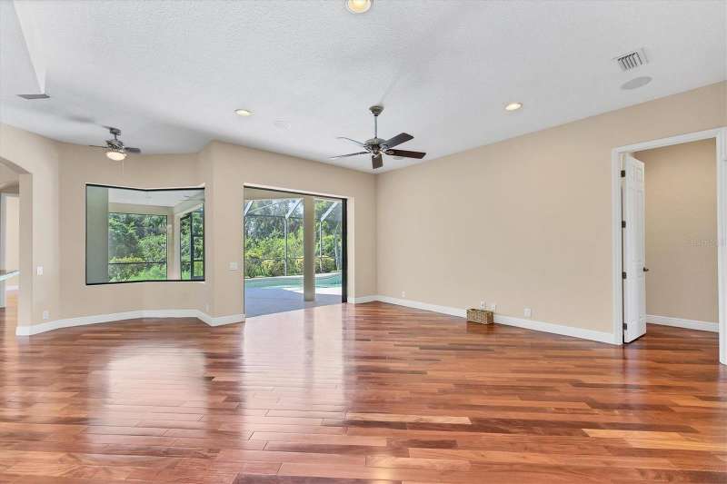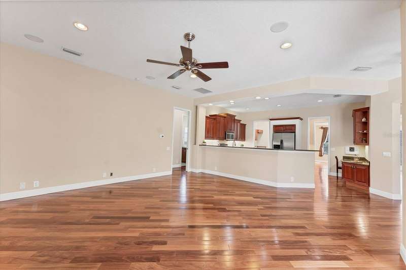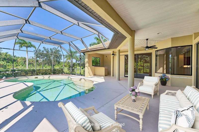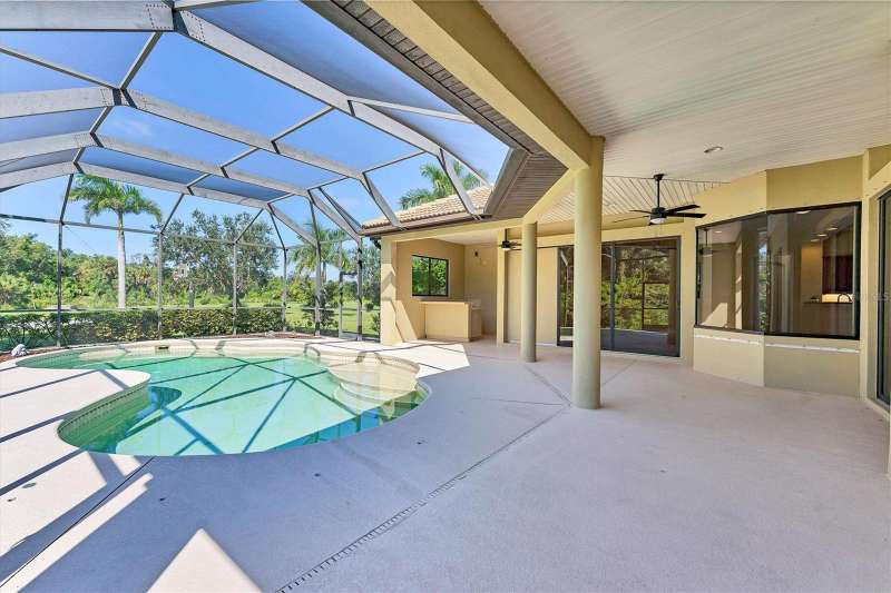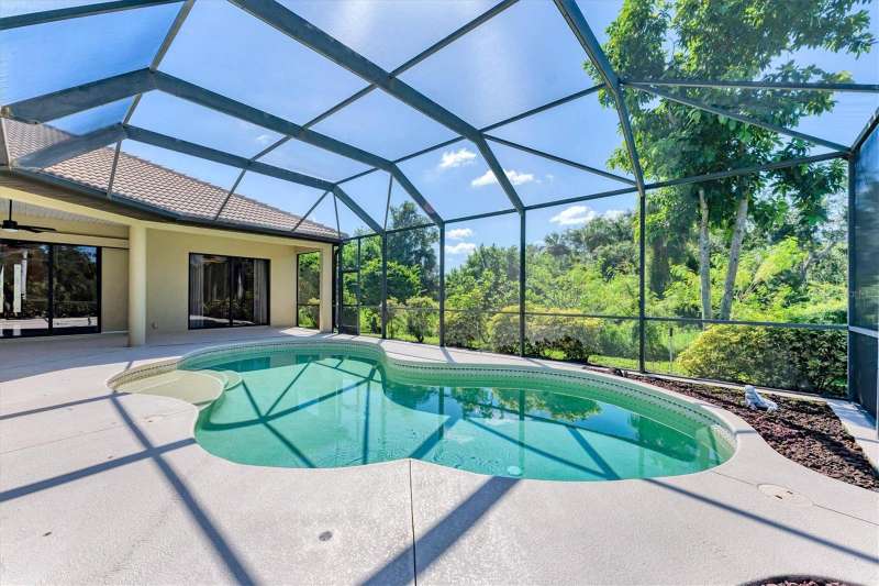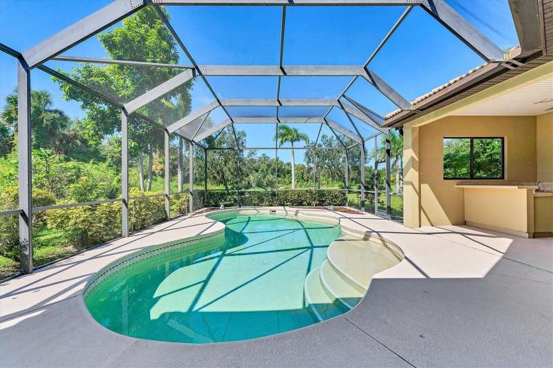 Under contract-accepting backup offers. One or more photo(s) has been virtually staged. Looking for space, style and location for a great price? The search is over; this property checks all the boxes! Fantastic value for this 4 bed/3 bath/+den/3 car garage, pool home in desirable Country Meadows. Located on a .67 ace lot next to a preserve, you’ll love the privacy and curb appeal this tile roof, paver drive, executive home offers. Pre-inspected and move-in ready, this home is perfect for a quick close. Gorgeous Santos mahogany wood floors welcome you into the impressive interior with tray ceiling details. The split floor plan offers great flexibility, including a private guest suite ideal for visitors or multi-generational living. Start your day in the breakfast nook with aquarium window framing serene views of the preserve. The stylish and functional kitchen features cherry wood cabinetry, stone counters and a breakfast bar. A butler’s pantry and closet pantry lead seamlessly from the kitchen to the dining room. The spacious primary suite has sliders that open to the pool area, plus dual walk-in closets, double sinks, a Roman shower and jetted tub. Pocketing sliders open to the screen enclosed patio, inviting you to your private, backyard oasis with solar heated, salt-water pool and summer kitchen with bar seating. There is even a backyard basketball/sports court for your enjoyment! Recent (2025) improvements include new HVAC, water heater and salt cell for pool. Additional interior features are central vac, laundry with utility sink and storage. Country Meadows has NO CDD FEES and residents enjoy a community park with playground, sidewalks and underground utility lines, fences are permitted. Not in a flood zone and hurricane shutters provided for additional peace of mind. This home offers incredible value in a prime location--a little bit country but minutes to I-75, convenient to shopping, dining, and everything this fast-growing area offers. *Multiple offers situation, Seller calling for highest and best offers due by 10/15 at 12:00pm*