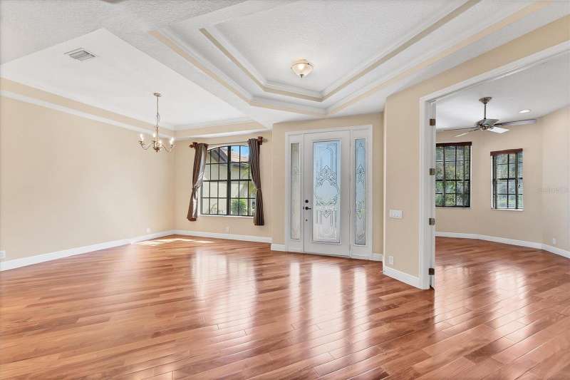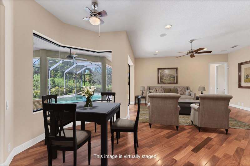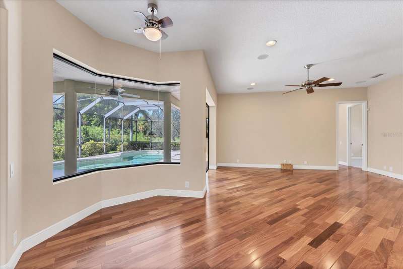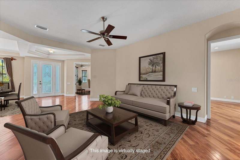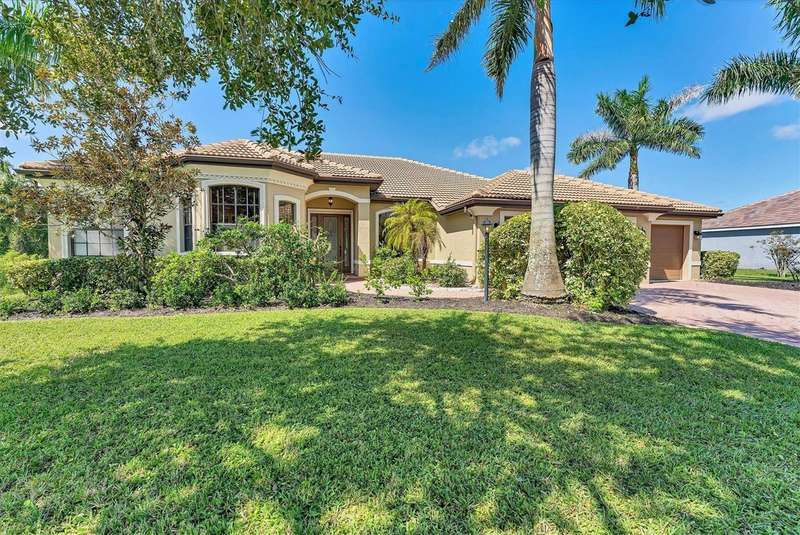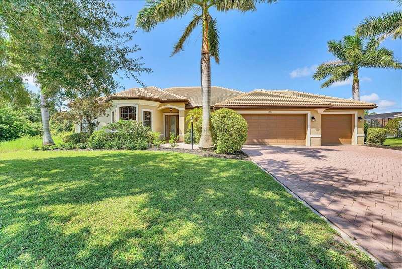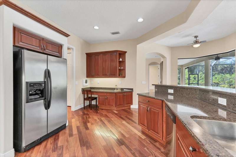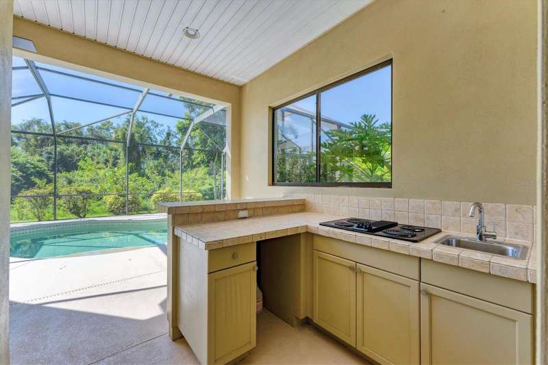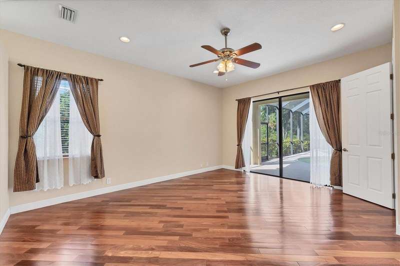 Under contract-accepting backup offers. One or more photo(s) has been virtually staged. Looking for space, style and location for a great price? The search is over; this property checks all the boxes! Fantastic value for this 4 bed/3 bath/+den/3 car garage, pool home in desirable Country Meadows. Located on a .67 ace lot next to a preserve, you’ll love the privacy and curb appeal this tile roof, paver drive, executive home offers. Pre-inspected and move-in ready, this home is perfect for a quick close. Gorgeous Santos mahogany wood floors welcome you into the impressive interior with tray ceiling details. The split floor plan offers great flexibility, including a private guest suite ideal for visitors or multi-generational living. Start your day in the breakfast nook with aquarium window framing serene views of the preserve. The stylish and functional kitchen features cherry wood cabinetry, stone counters and a breakfast bar. A butler’s pantry and closet pantry lead seamlessly from the kitchen to the dining room. The spacious primary suite has sliders that open to the pool area, plus dual walk-in closets, double sinks, a Roman shower and jetted tub. Pocketing sliders open to the screen enclosed patio, inviting you to your private, backyard oasis with solar heated, salt-water pool and summer kitchen with bar seating. There is even a backyard basketball/sports court for your enjoyment! Recent (2025) improvements include new HVAC, water heater and salt cell for pool. Additional interior features are central vac, laundry with utility sink and storage. Country Meadows has NO CDD FEES and residents enjoy a community park with playground, sidewalks and underground utility lines, fences are permitted. Not in a flood zone and hurricane shutters provided for additional peace of mind. This home offers incredible value in a prime location--a little bit country but minutes to I-75, convenient to shopping, dining, and everything this fast-growing area offers. *Multiple offers situation, Seller calling for highest and best offers due by 10/15 at 12:00pm*