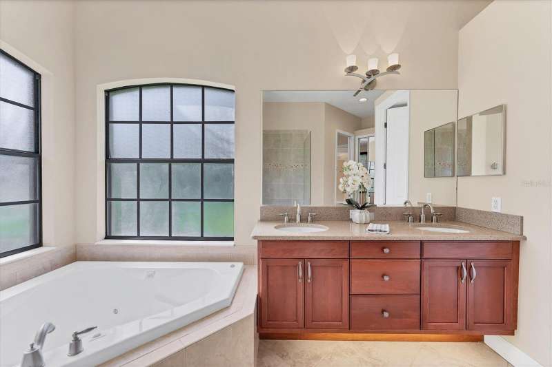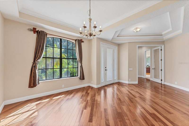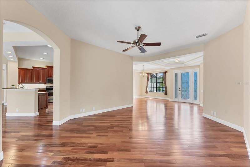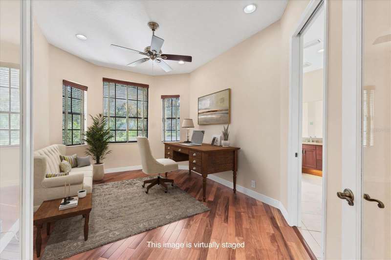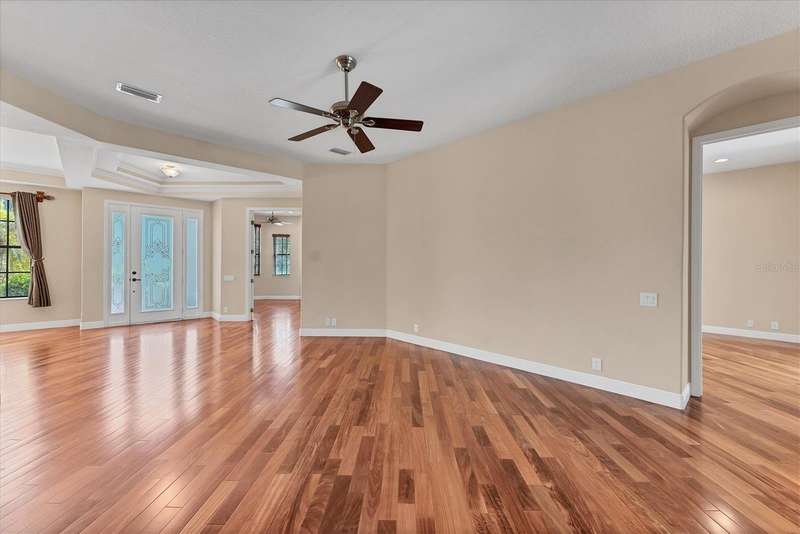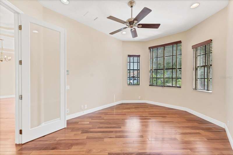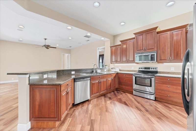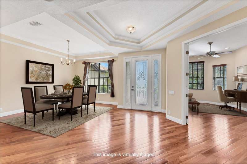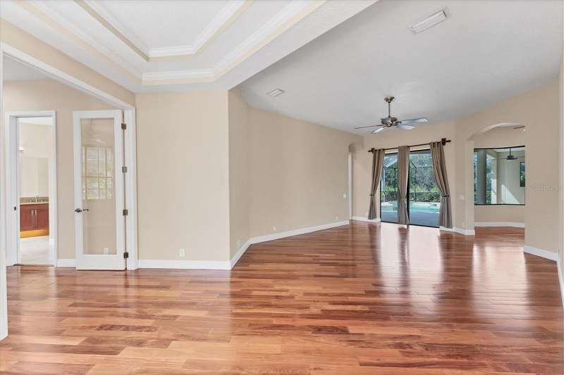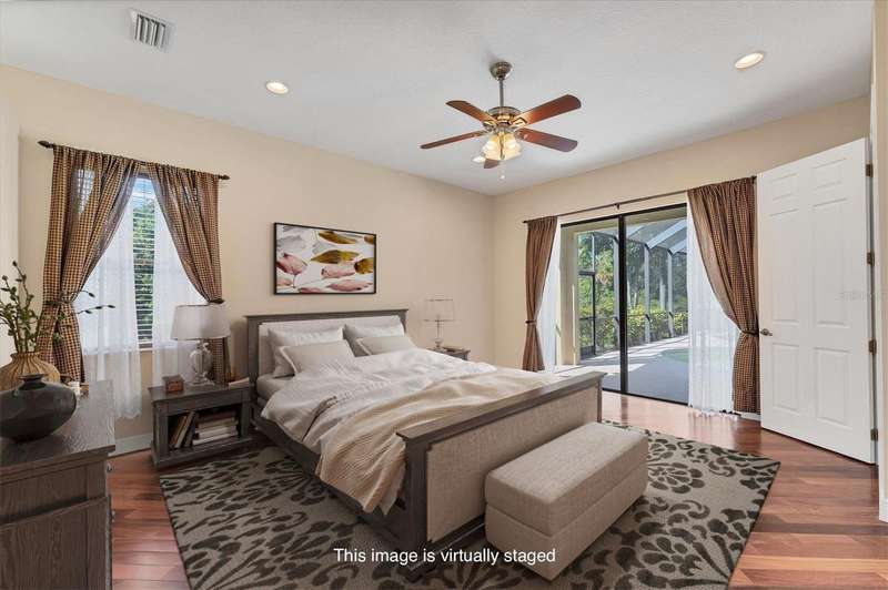 Under contract-accepting backup offers. One or more photo(s) has been virtually staged. Looking for space, style and location for a great price? The search is over; this property checks all the boxes! Fantastic value for this 4 bed/3 bath/+den/3 car garage, pool home in desirable Country Meadows. Located on a .67 ace lot next to a preserve, you’ll love the privacy and curb appeal this tile roof, paver drive, executive home offers. Pre-inspected and move-in ready, this home is perfect for a quick close. Gorgeous Santos mahogany wood floors welcome you into the impressive interior with tray ceiling details. The split floor plan offers great flexibility, including a private guest suite ideal for visitors or multi-generational living. Start your day in the breakfast nook with aquarium window framing serene views of the preserve. The stylish and functional kitchen features cherry wood cabinetry, stone counters and a breakfast bar. A butler’s pantry and closet pantry lead seamlessly from the kitchen to the dining room. The spacious primary suite has sliders that open to the pool area, plus dual walk-in closets, double sinks, a Roman shower and jetted tub. Pocketing sliders open to the screen enclosed patio, inviting you to your private, backyard oasis with solar heated, salt-water pool and summer kitchen with bar seating. There is even a backyard basketball/sports court for your enjoyment! Recent (2025) improvements include new HVAC, water heater and salt cell for pool. Additional interior features are central vac, laundry with utility sink and storage. Country Meadows has NO CDD FEES and residents enjoy a community park with playground, sidewalks and underground utility lines, fences are permitted. Not in a flood zone and hurricane shutters provided for additional peace of mind. This home offers incredible value in a prime location--a little bit country but minutes to I-75, convenient to shopping, dining, and everything this fast-growing area offers. *Multiple offers situation, Seller calling for highest and best offers due by 10/15 at 12:00pm*