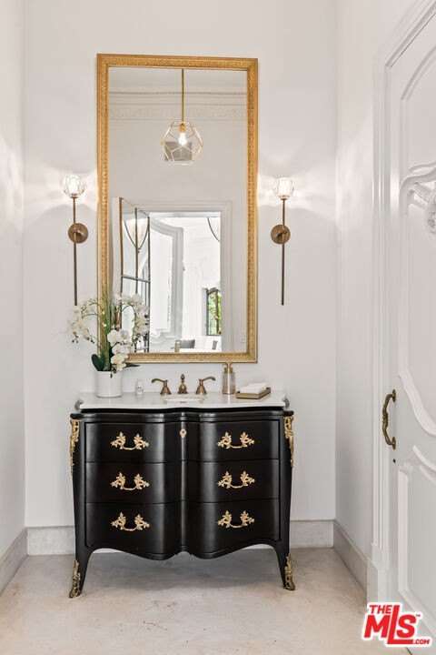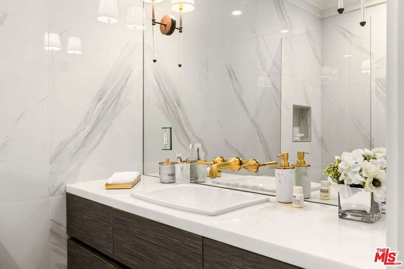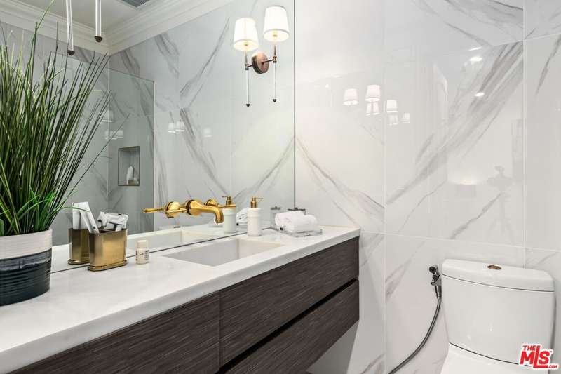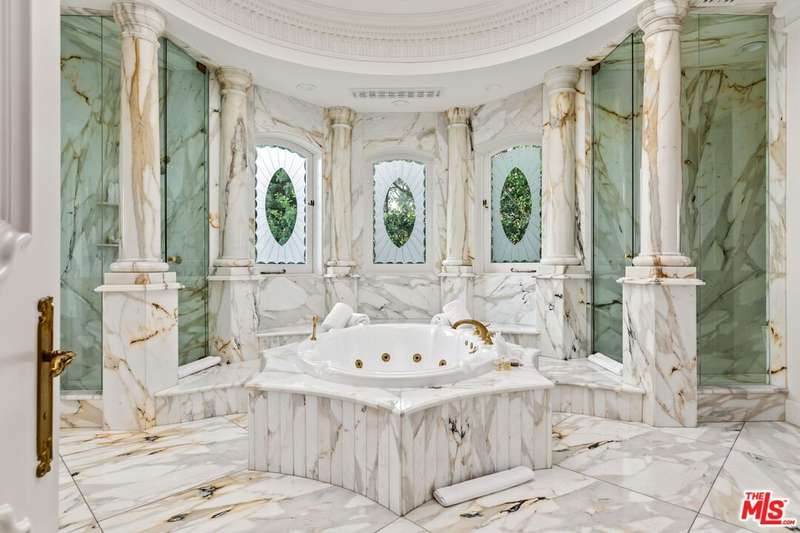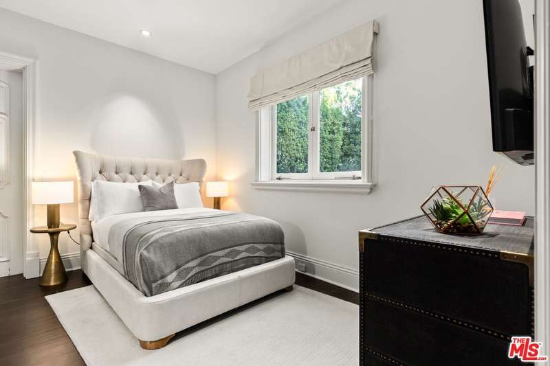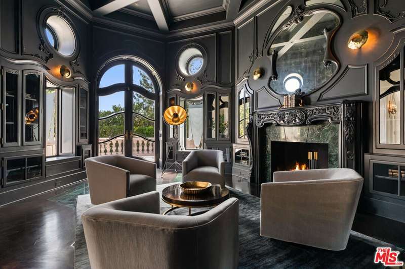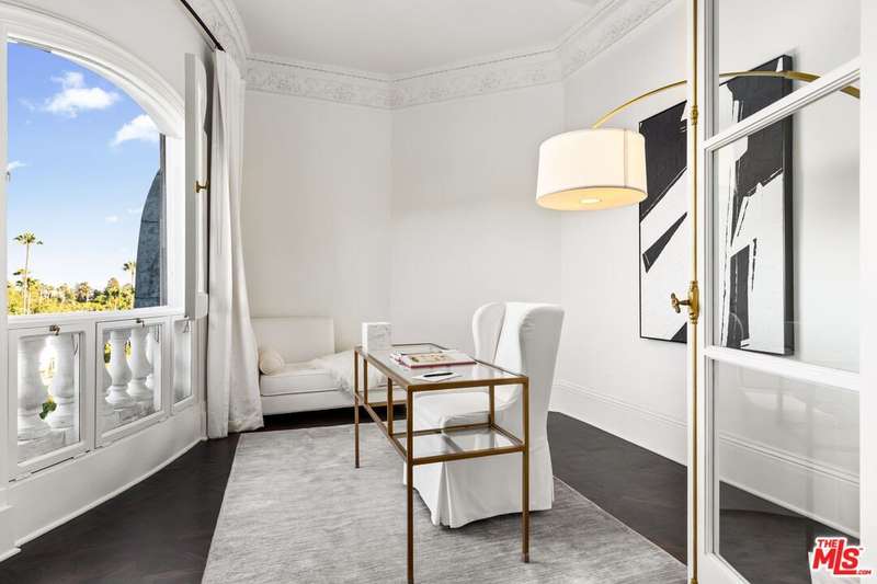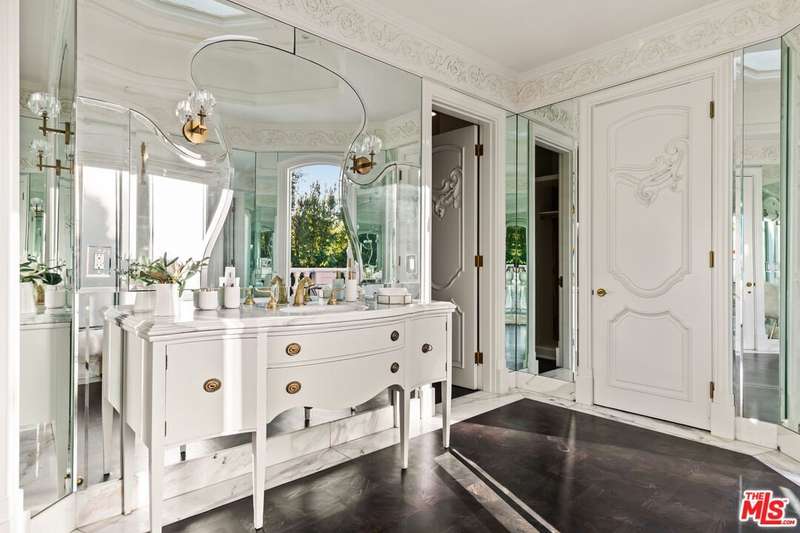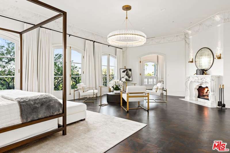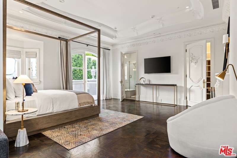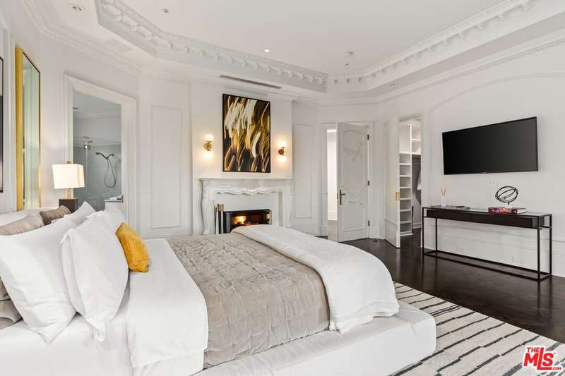 This stunning private estate, located in the prestigious city of Beverly Hills, combines timeless classical architecture with sleek contemporary interior design. Enter through grand double doors into an impressive foyer featuring soaring 30-foot ceilings and a striking bronze dual staircase, leading to a seamless indoor-outdoor layout. The formal rotunda entrance sets a tone of elegance, inspired by the refined style of the Peninsula Hotel in Paris. Blending European architectural elements, this home is a masterpiece of craftsmanship and detail.With 8 bedrooms, 12 bathrooms, and an array of formal spaces including family, living, and dining rooms with fireplaces, along with a library, bar, and media room, the estate is designed for both luxury and comfort. The custom-designed kitchen, created by Martin Pierce, includes a butler's pantry and top-of-the-line appliances. The master suite features dual bathrooms, spacious walk-in closets, and an attached private office.The impeccably landscaped grounds are an oasis, featuring a cascading pool, spa, shaded seating areas, and vibrant gardens. Ideal for hosting large gatherings, the property also offers a warm and welcoming atmosphere for intimate family living.