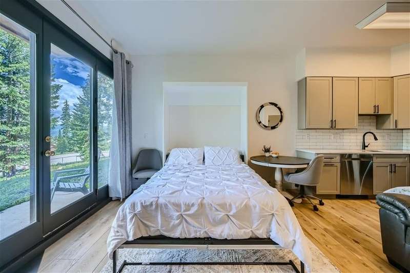 Seller has recently finished a gorgeous and complete re-model of this awesome studio at the top of Wildernest with hiking, biking and cross country skiing right out your back door. Absolutely ideal for dog lovers with a walk-out patio on the ground level leading directly to a big grassy area and super convenient access to your vehicles. The property “Lives Large” with 10 foot ceilings and attention to storage everywhere, including thoughtful touches like the built-in trash and recycling pullout cabinet, custom dressing area with huge drawers, quartz countertops and 2 great closets providing a place for everything! The beautiful new queen murphy bed easily tucks away during the day to offer wide open enjoyment of your living area. Unit feels incredibly private since there’s virtually no noise transfer through walls or ceiling. With the exterior remodel just finished and other amenity re-builds underway (pools, hot tubs, sauna, game room, racquet ball court, workout room etc), this is the time to own the mountain lifestyle. Tenant occupied, some notice to show is required. Tenant occupied, some notice to show is required......