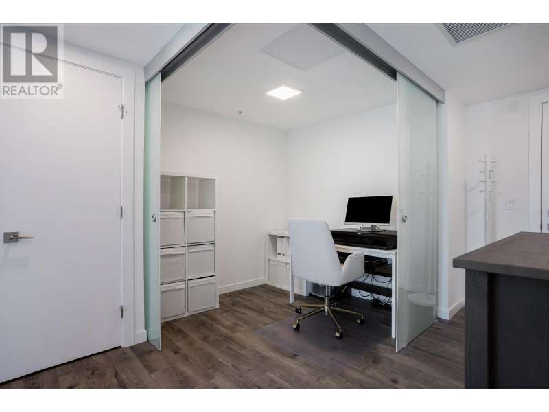 Welcome to Bordeaux by award-winning developer Solterra. This North West facing 2 bedroom + den & 2 bath is bright and spacious with over height ceilings, floor-to-ceiling windows, AC and stunning Italian imported kitchen cabinetry with full-sized appliances including Liebherr and Fulgor Milano. The open concept floor plan makes excellent use of the space with separate dining and living areas and access out onto the extensive 224 square ft wrap-around patio. 2 parking stalls (1 EV) & 2 Lockers. (id:58403)