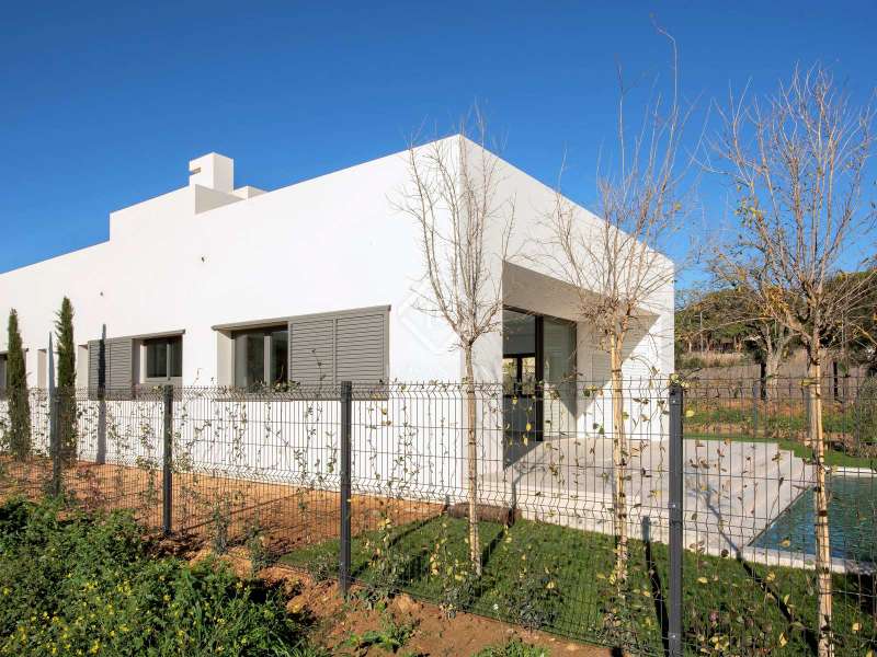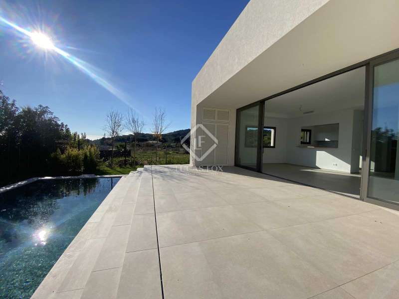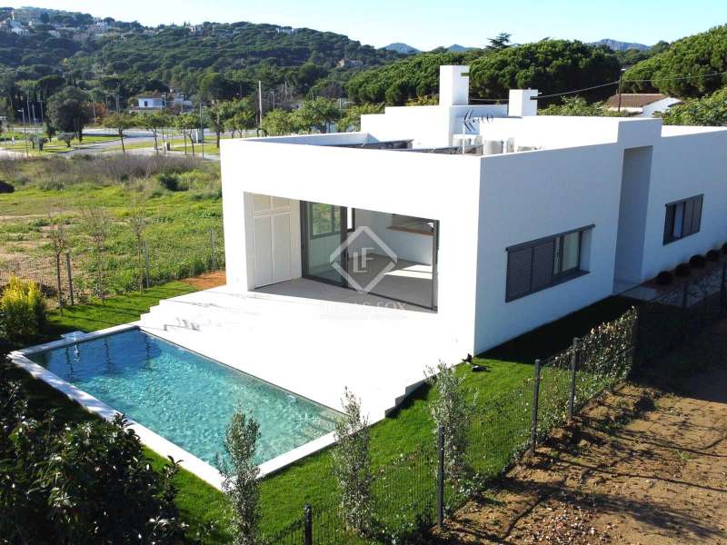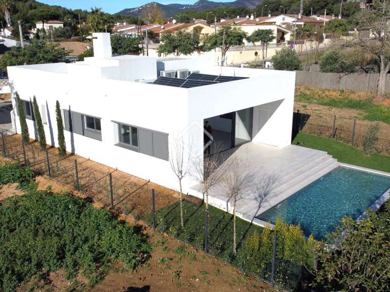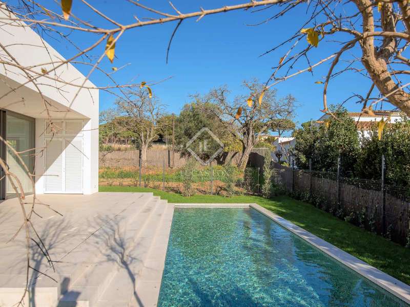 This impressive new build house is brand new and is located in a new residential complex in S'Agaró, a short distance from the sea and all amenities. It is a property that is located on a completely flat plot , perfect for enjoying the garden with a pool. This house is one of the only ones in the area that have ENERGY CERTIFICATION A. It is a house that, following the European directives regarding respect for the environment, has a minimum CO2 production, which results in lower annual electricity consumption and therefore a great monetary saving for the user of this property. The property is distributed on one floor, offering a spectacular entrance with a semi-interior patio, a spacious, very bright living-dining room , thanks to its large windows that give access to the outside and fill the room with natural light. In addition, it has a modern kitchen fully equipped with high-quality appliances , minimalist-style Italian cabinets and marble-like porcelain countertops. All this creates a very elegant style game. It has three double bedrooms, one of them with a private bathroom, as well as another complete bathroom . The exterior offers a fantastic garden that has native trees and shrubs that, although they require little maintenance, decorate the space and add warmth and style to the house. It also benefits from a swimming pool, perfect for cooling off during the hot months, and parking. Finally, it has a large 60 m² terrace with a barbecue area, which can be closed in case a guest area or a fourth bedroom is required. The property has marble floors and is equipped with air conditioning, double-glazed windows and heating to guarantee your comfort at any time of the year. It also has an alarm system. This villa is the first to be built in this new residential area where the construction of more high-class villas of a similar design is planned, in order to create a new luxury residential area close to one of the most beautiful beaches in Costa brava. There are plots available and there is the possibility of commissioning the construction of a new villa according to the needs and tastes of the client, a truly unique opportunity. Contact us to visit this impressive new build house with pool on the Costa Brava.