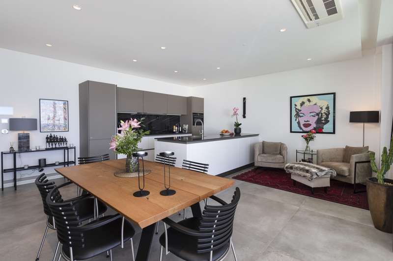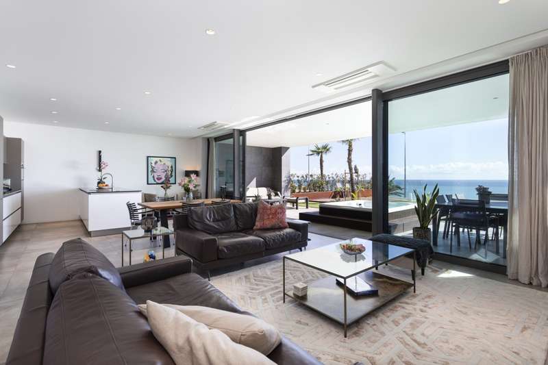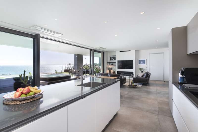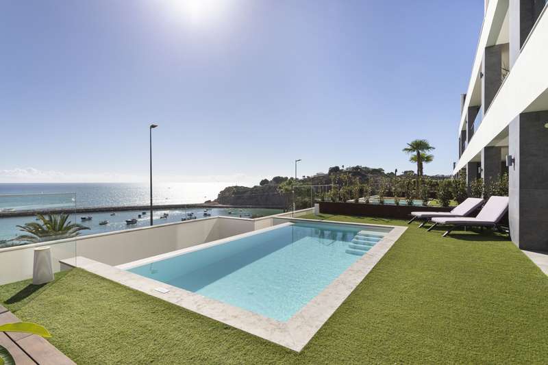 Luxurious three-bedroomapartment for sale, right on Albufeira's seafront. With its modern architecture and design, this apartment comprises an open-plan living room with a fully equipped kitchen with ceramic and marble details, three bedrooms, one of which is en suite and all with built-in closets. It has an elevator that leads directly to the underground floor where there is a garage with two parkings spaces and a large storage. It also has a generously sized terrace with a garden, swimming pool, jacuzzi and outdoor dining area with barbecue, all with magnificent views of the sea. In an excellent location, part of the Finisterra Residence private condominium, which also provides communal areas with a garden and swimming pool, it is close to all kinds of amenities and services and just 35 minutes from Faro International Airport. CHARACTERISTICS:Area: 257 m2 | 2 766 sq ft Useful area: 143 m2 | 1 539 sq ft Bedrooms: 3 Bathrooms: 2 Garage: 1 Energy efficiency: B FEATURES: Three bedrooms One suite Terrace and balcony Parking space Built-in closets Elevator Swimming pool Garden Jacuzzi Barbecue