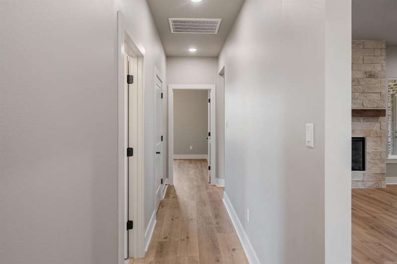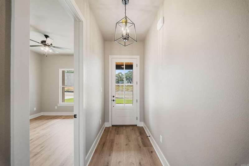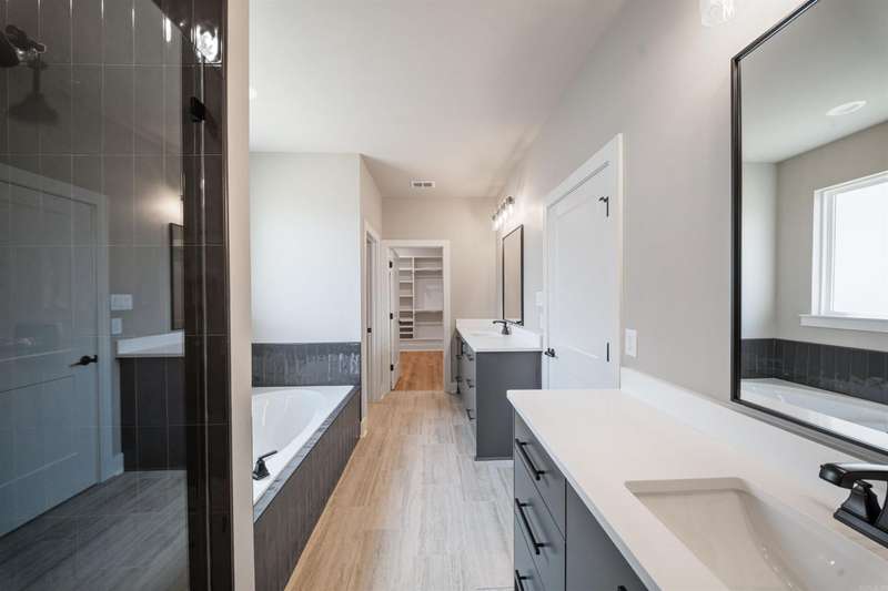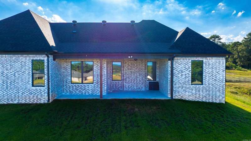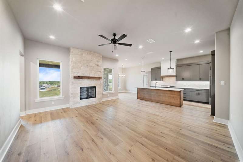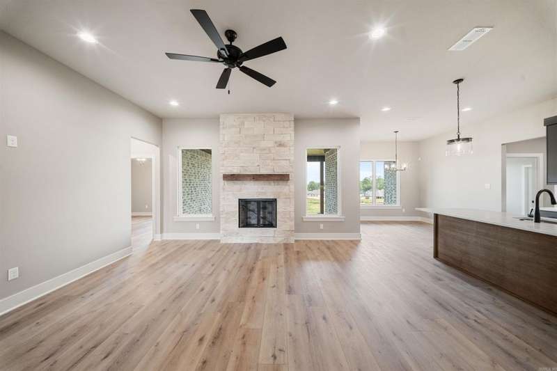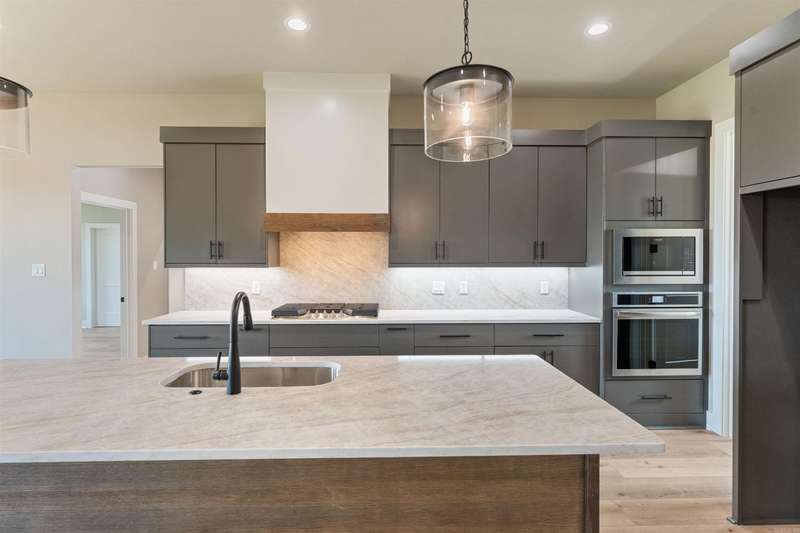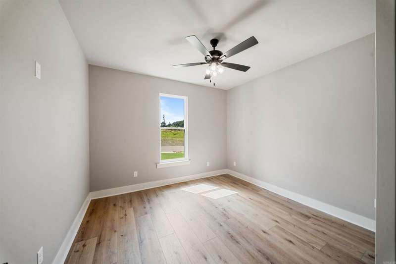 This home has a great view, covered back porch, extra landscaping! Two car garage, Home has LVP flooring, office, great room over looks kitchen with large island, wall oven, gas cooktop, extra large walk in pantry. Primary bedroom has custom ceiling . Primary bath has custom tile shower with free standing tub. Two other bedrooms have bathroom with double sinks. Bedroom upstairs with full bath.