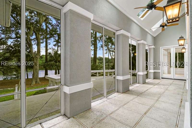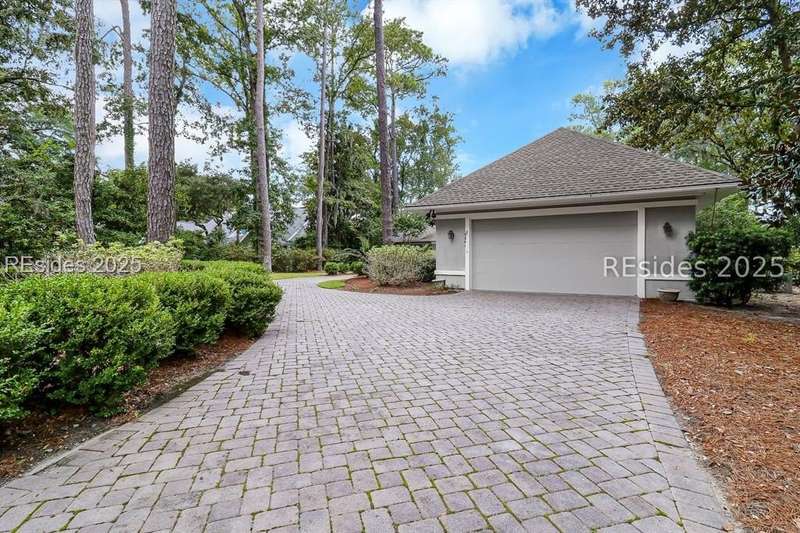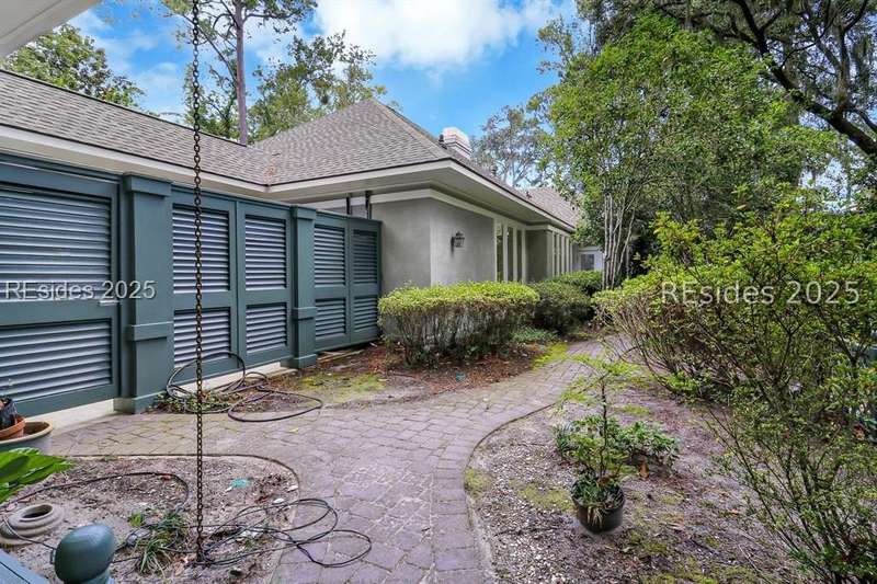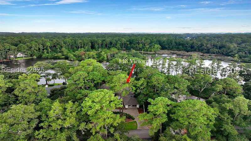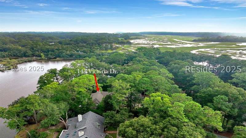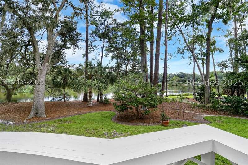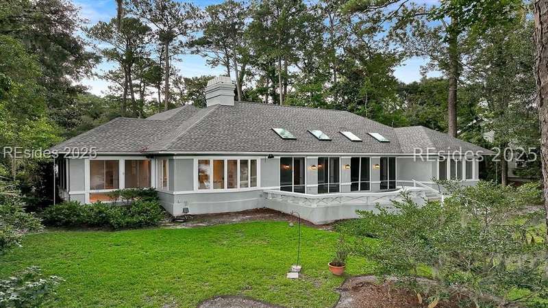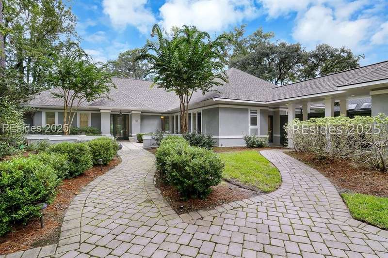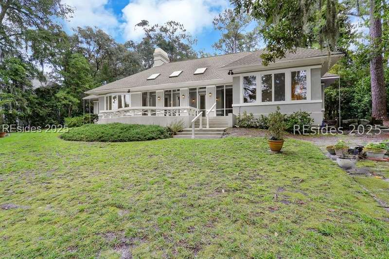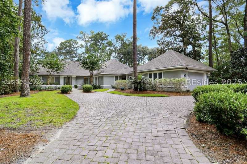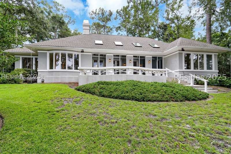 Custom designed residence by award winning architects offering sweeping views of Blue Heron Sanctuary in amenity rich Moss Creek. Features of this architecturally stunning interior include volume 9-15 smooth ceilings, natural stone flooring, walls of windows to view, custom millwork & built-ins by master craftsmen, 2 fireplaces (1 gas, 1 wood burning), plantation shutters, max cabinet/closet/storage space, kitchen w/granite counters & Sub Zero/Dacor appliances, etc. Exterior features include delightful curb appeal with brick paver circular drive, attractive/durable hard coat stucco exterior, charming courtyard entry, covered breezeway to oversize garage & impressive, elevated concrete rear deck w/built-in bench seating, much desired, fenced garden/dog run area, specimen trees, mature lawn & plantings. Thoughtfully designed floor plan offers expansive great room, excellent BR separation featuring private primary suite w/2 full baths & to die for closet space, 2 well-appointed guest BR suites, kitchen with causal dining area, dining room, cozy den/study, 4 season Carolina room + screened porch. All with new roof, newer mechanicals, huge fenced service area & prime, quiet, high elevation locale just steps from the boardwalk and nature trails of one of private Moss Creeks two nature preserves!