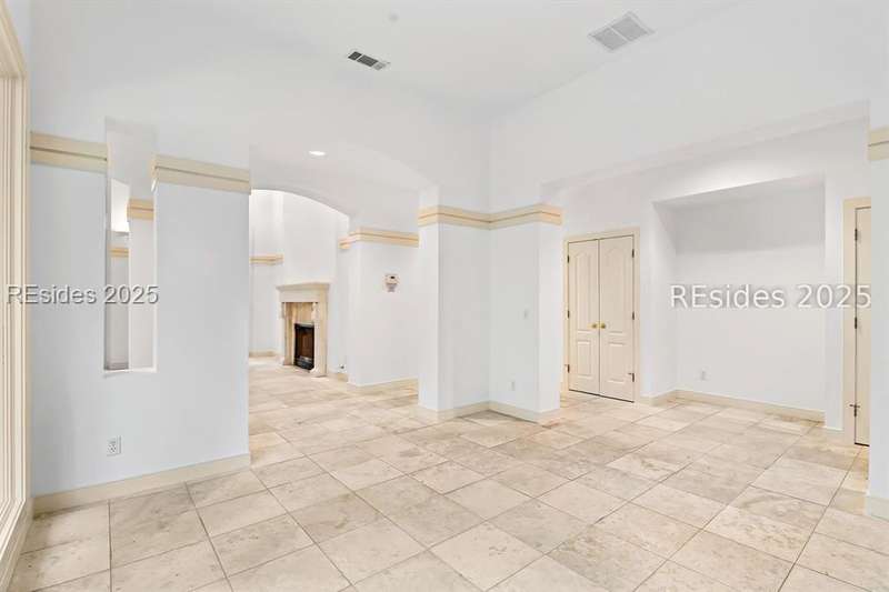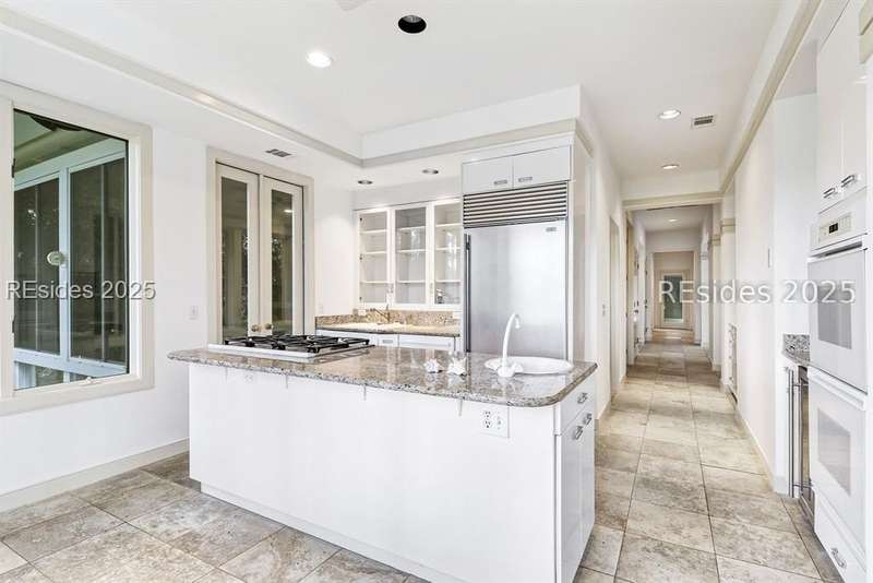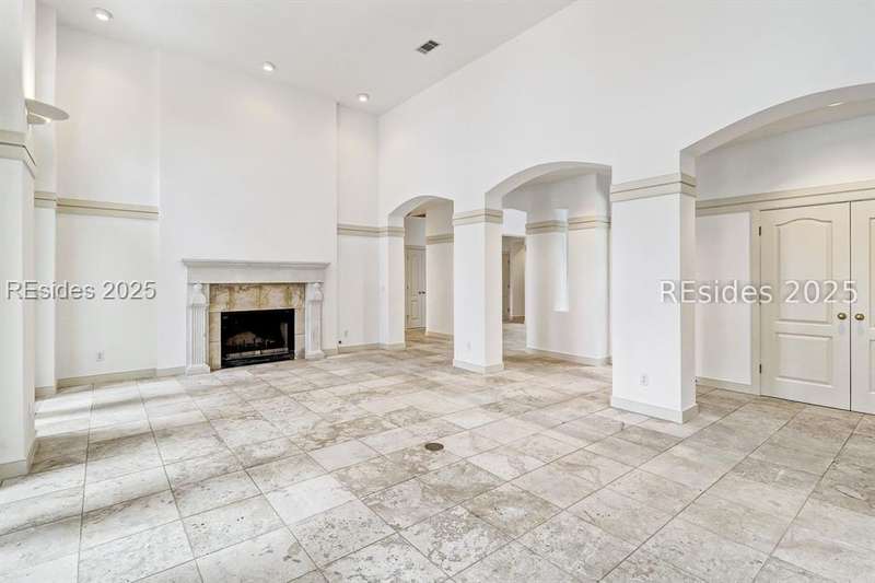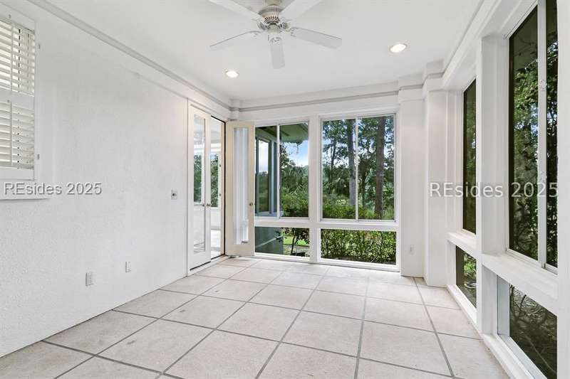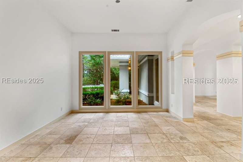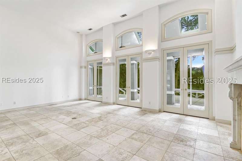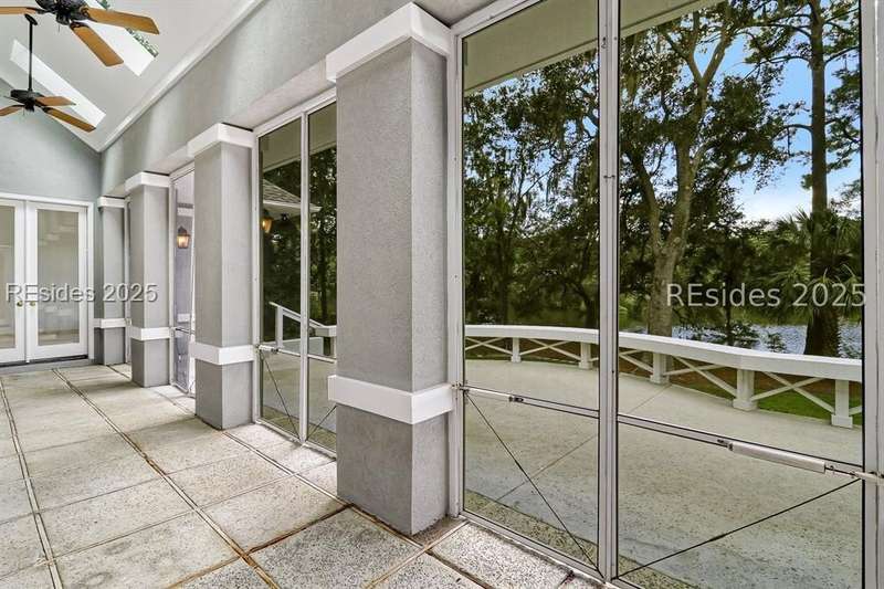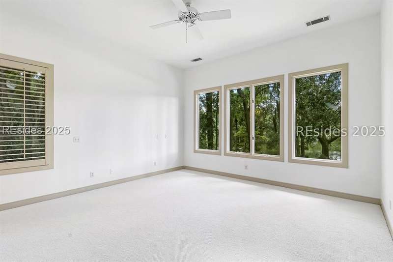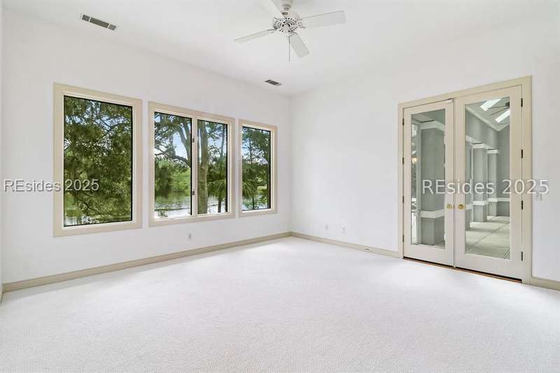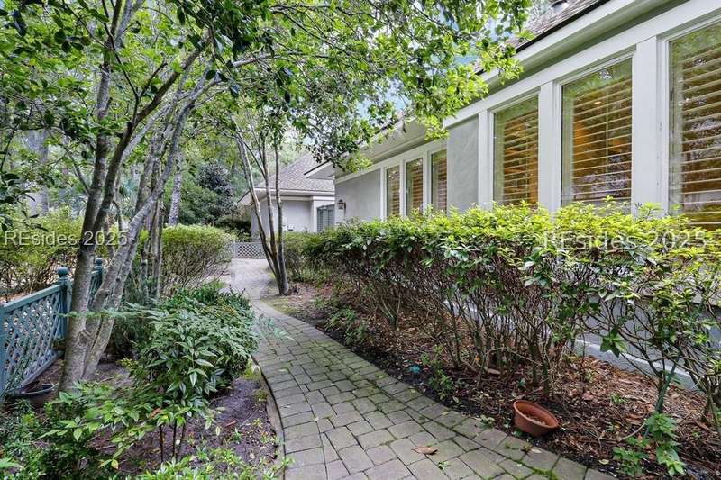 Custom designed residence by award winning architects offering sweeping views of Blue Heron Sanctuary in amenity rich Moss Creek. Features of this architecturally stunning interior include volume 9-15 smooth ceilings, natural stone flooring, walls of windows to view, custom millwork & built-ins by master craftsmen, 2 fireplaces (1 gas, 1 wood burning), plantation shutters, max cabinet/closet/storage space, kitchen w/granite counters & Sub Zero/Dacor appliances, etc. Exterior features include delightful curb appeal with brick paver circular drive, attractive/durable hard coat stucco exterior, charming courtyard entry, covered breezeway to oversize garage & impressive, elevated concrete rear deck w/built-in bench seating, much desired, fenced garden/dog run area, specimen trees, mature lawn & plantings. Thoughtfully designed floor plan offers expansive great room, excellent BR separation featuring private primary suite w/2 full baths & to die for closet space, 2 well-appointed guest BR suites, kitchen with causal dining area, dining room, cozy den/study, 4 season Carolina room + screened porch. All with new roof, newer mechanicals, huge fenced service area & prime, quiet, high elevation locale just steps from the boardwalk and nature trails of one of private Moss Creeks two nature preserves!
