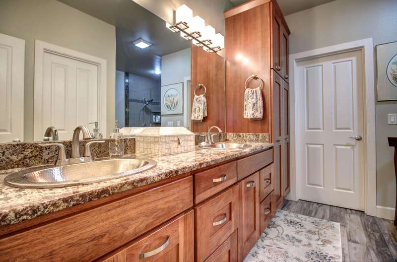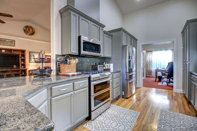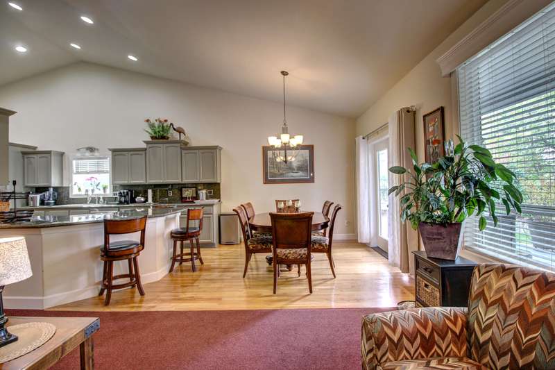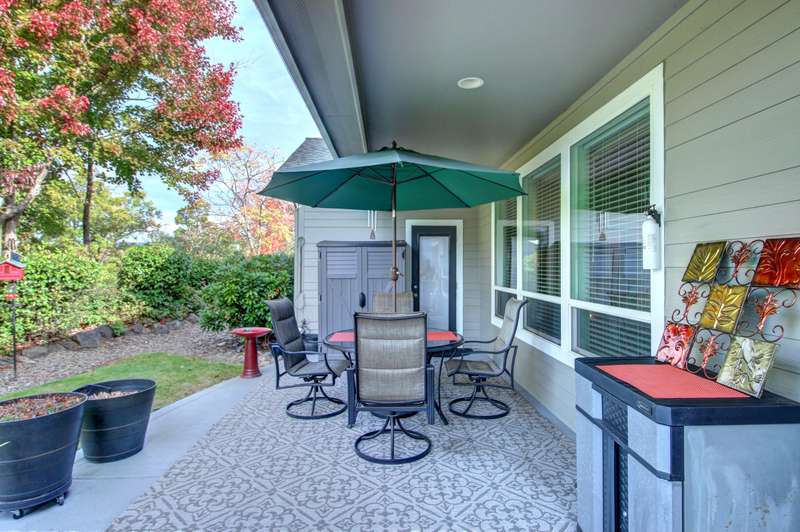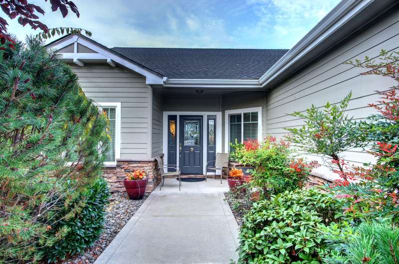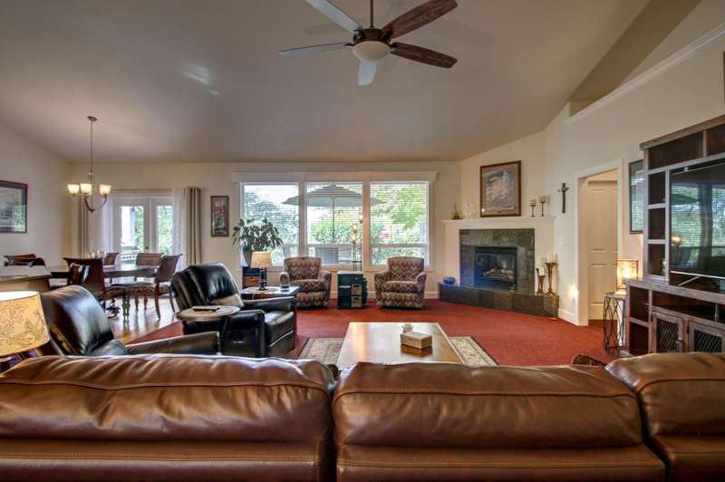 One-of-a-kind spectacular location & home. Over $50k worth of recent upgrades & extras. MUST TOUR! Located in highly desirable gated Poppy Village in the Eagle Point Golf Course community. Very private, 2000+ sqft, vaulted ceilings, spacious split bedroom floor plan, tile surround gas fireplace in living room +more. Spacious kitchen with granite countertops, beautifully refinished cabinets, newer upgraded ''high-end'' Samsung SS appliances. Large primary suite, recently remodeled bath with 2 SS sinks, granite countertops, new cabinets, tile surround walk-in shower & oversized tub - 2nd bath has newer granite & custom cabinet. New granite in laundry room. 2-car finished garage with custom shelving. Newer roof, newer exterior paint, newer carpet, upgraded hardwood flooring, newer forced A/C, newer light fixtures, ceiling fans, +much more. Both back & front yards are beautifully landscaped. Back patio recently refinished with gray epoxy. Spectacular views of the Table Rocks from patio.